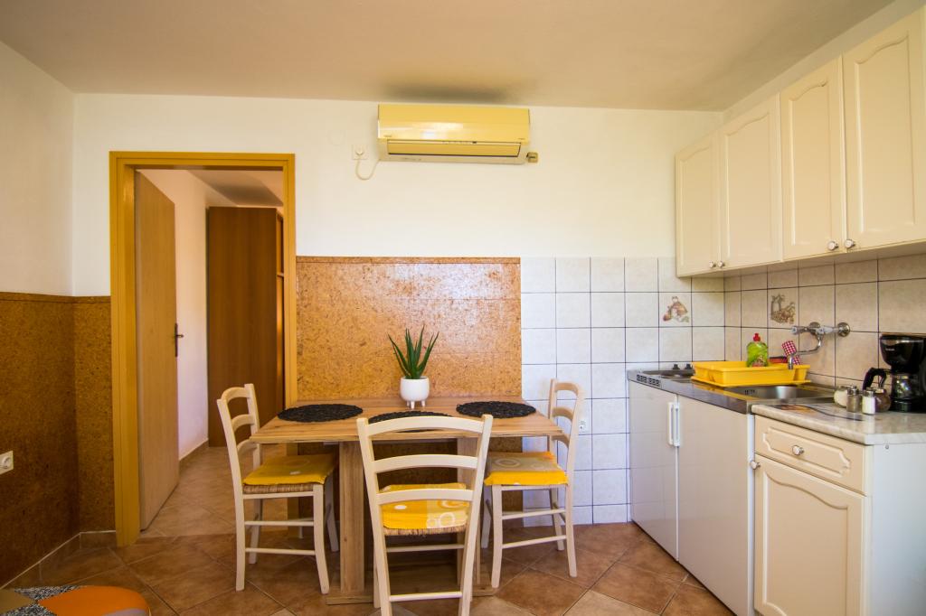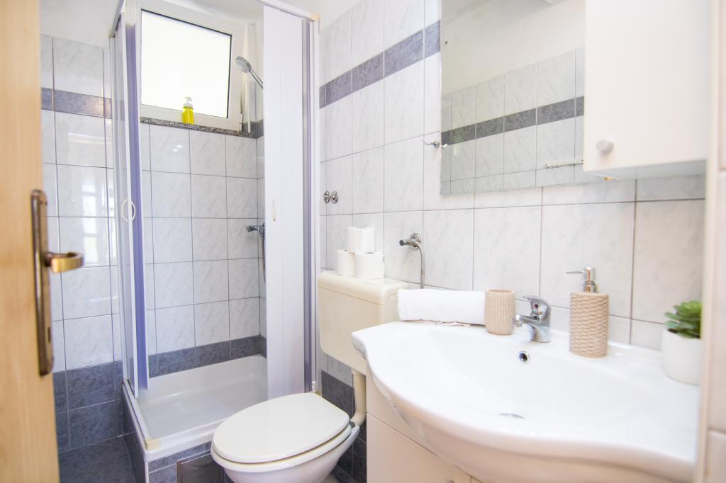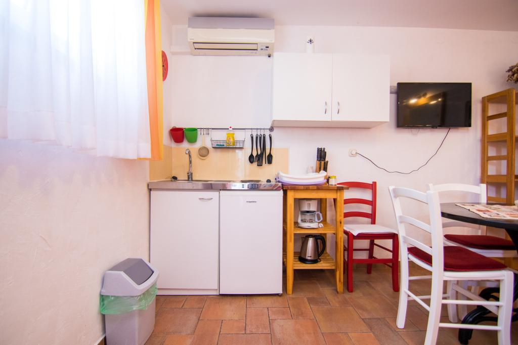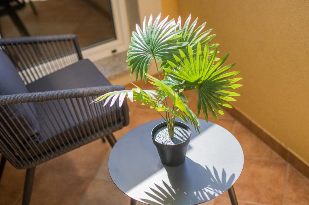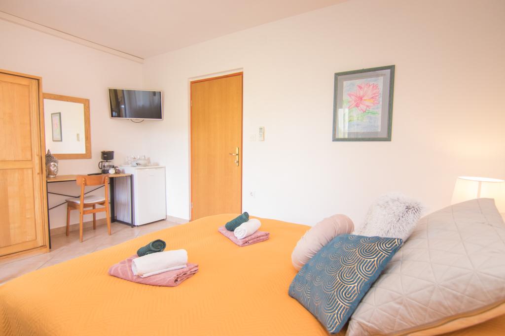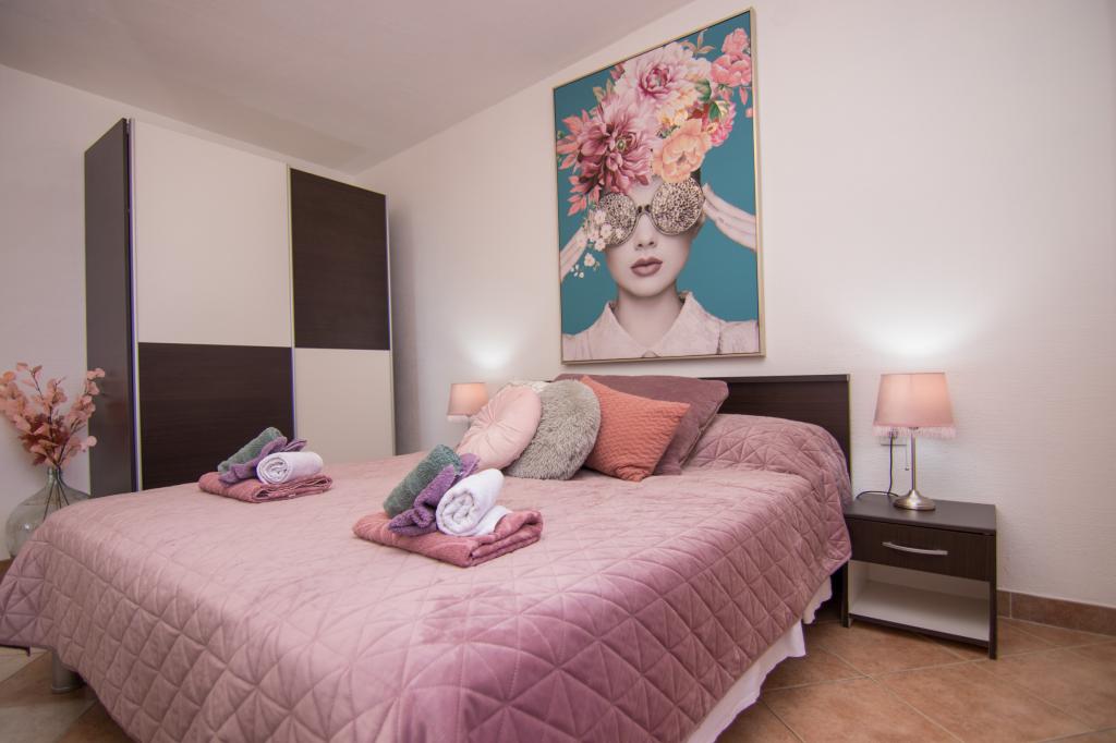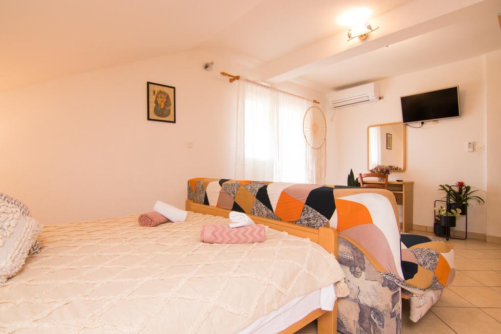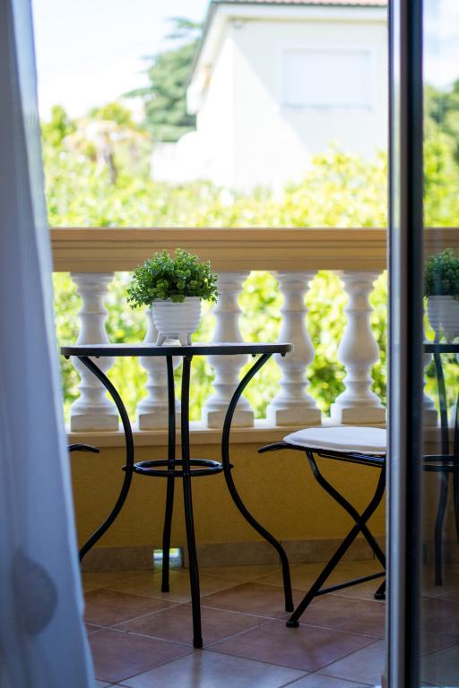 Huset ligger i centrum af byen, kun 90 m fra havet og en smuk promenade med talrige restauranter, caféer og andre faciliteter. Gæsterne kan finde butikker, en bank, et posthus, et apotek og lignende i nærheden af huset. Husets gård er rummelig, hvor der er plads nok til at parkere gæsternes biler. Det er omgivet af middelhavsplanter og blomster. Gæsterne kan også benytte den fælles grill, der ligger bag huset. Alle lejligheder har terrasse eller altan, og nogle lejligheder har endda to terrasser eller to altaner. Kvarteret er roligt og sikkert. Fra nogle lejligheder kan du se havet. Hver enhed har aircondition, satellit-tv, internet og en filterkaffemaskine.