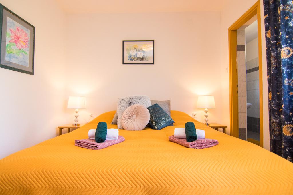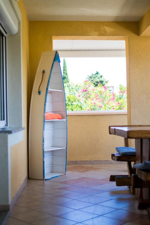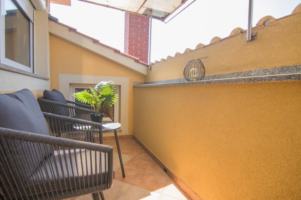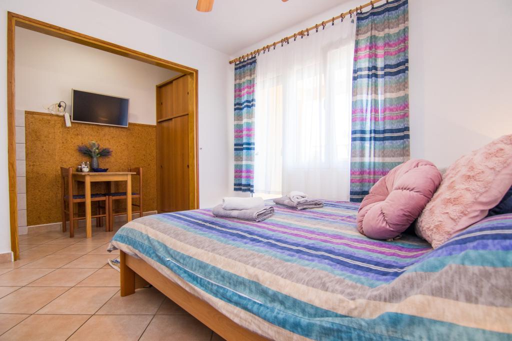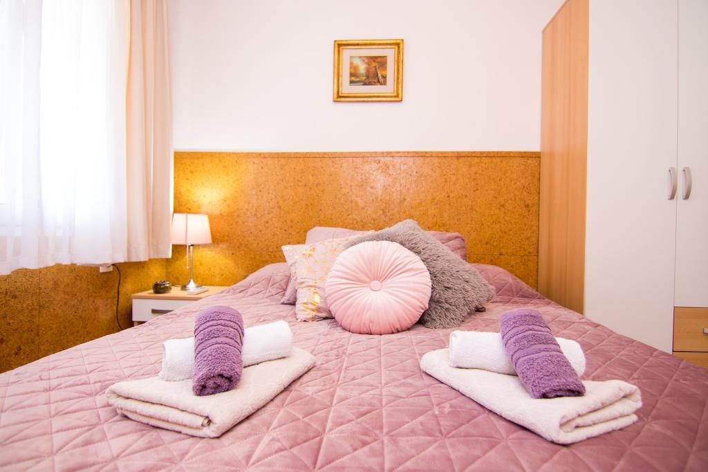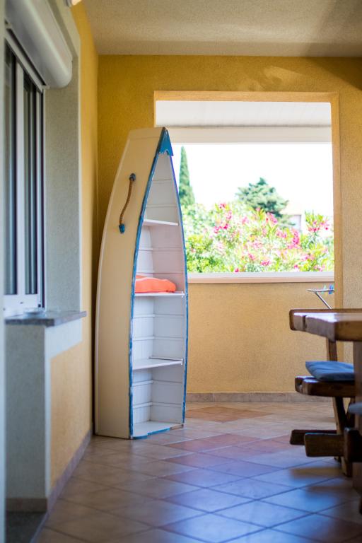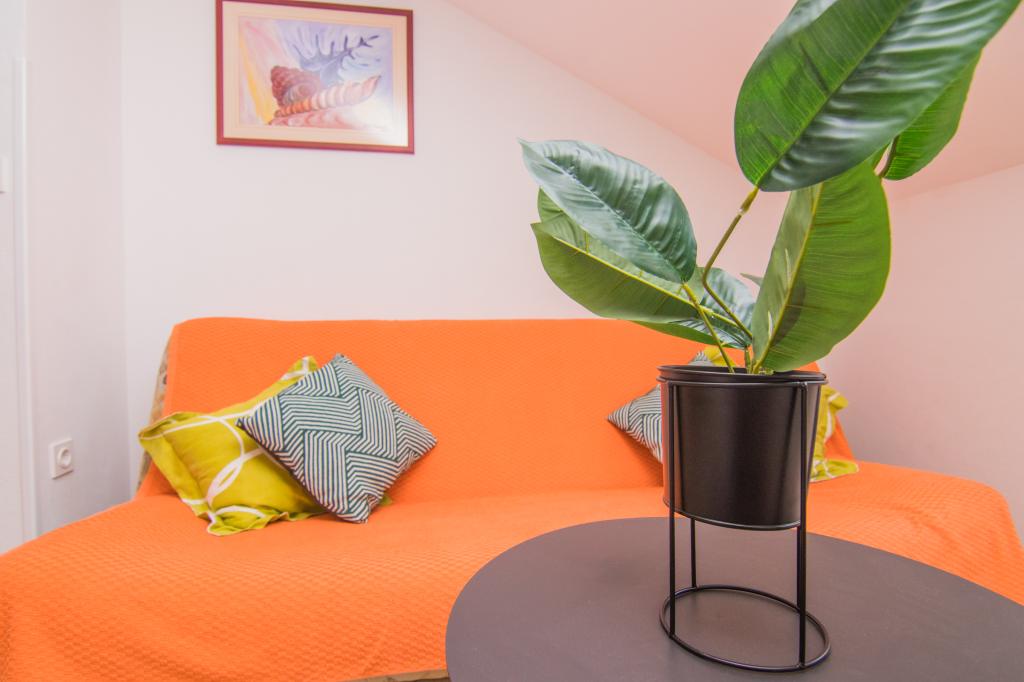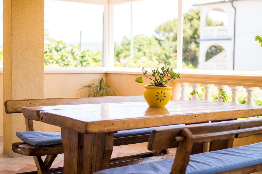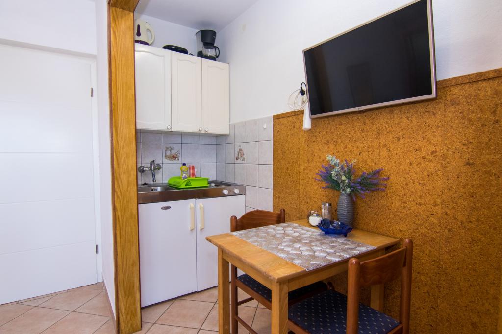 Huset ligger i centrum af byen, kun 90 m fra havet og en smuk promenade med talrige restauranter, caféer og andre faciliteter. Gæsterne kan finde butikker, en bank, et posthus, et apotek og lignende i nærheden af huset. Husets gård er rummelig, hvor der er plads nok til at parkere gæsternes biler. Det er omgivet af middelhavsplanter og blomster. Gæsterne kan også benytte den fælles grill, der ligger bag huset. Alle lejligheder har terrasse eller altan, og nogle lejligheder har endda to terrasser eller to altaner. Kvarteret er roligt og sikkert. Fra nogle lejligheder kan du se havet. Hver enhed har aircondition, satellit-tv, internet og en filterkaffemaskine.