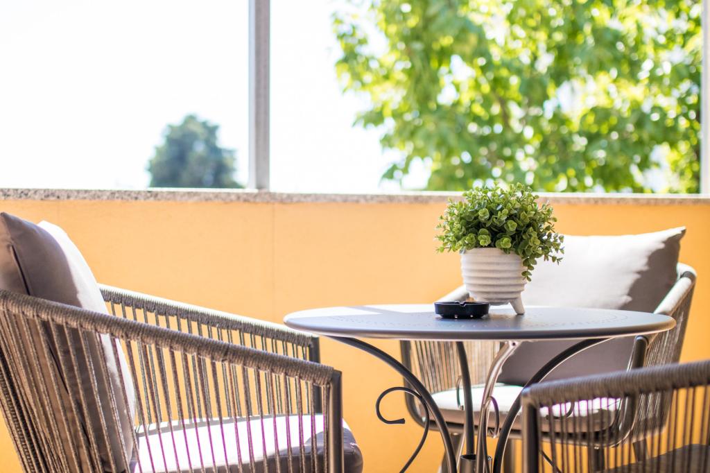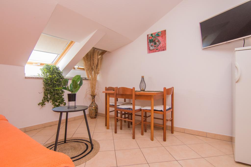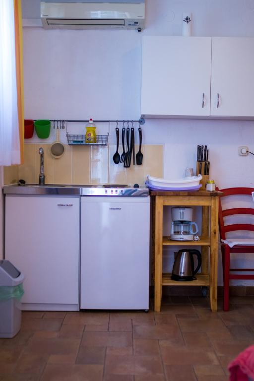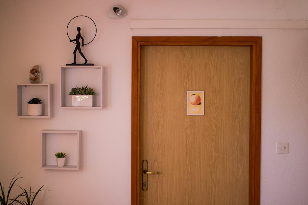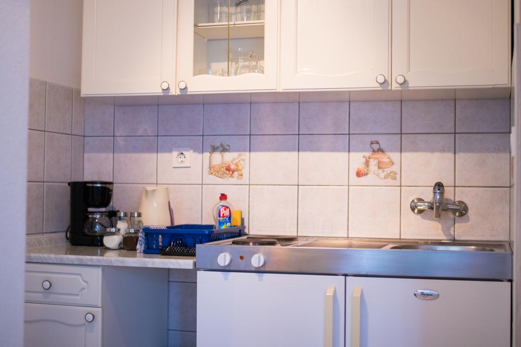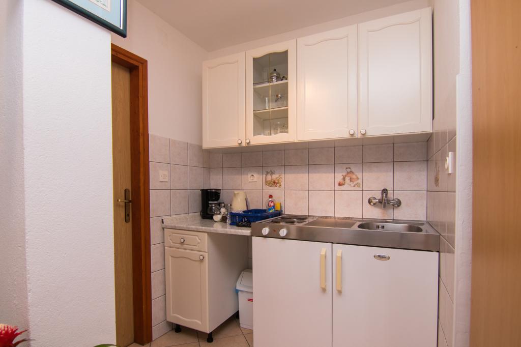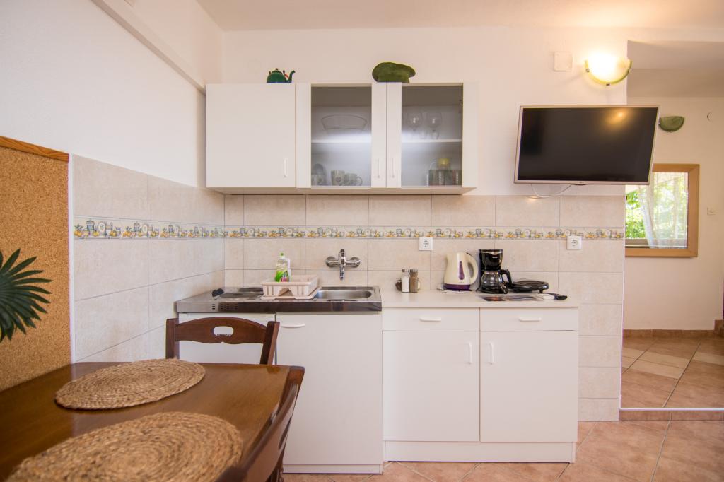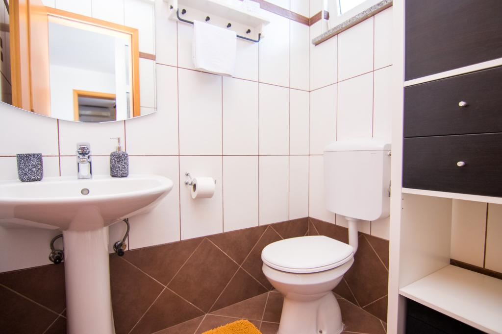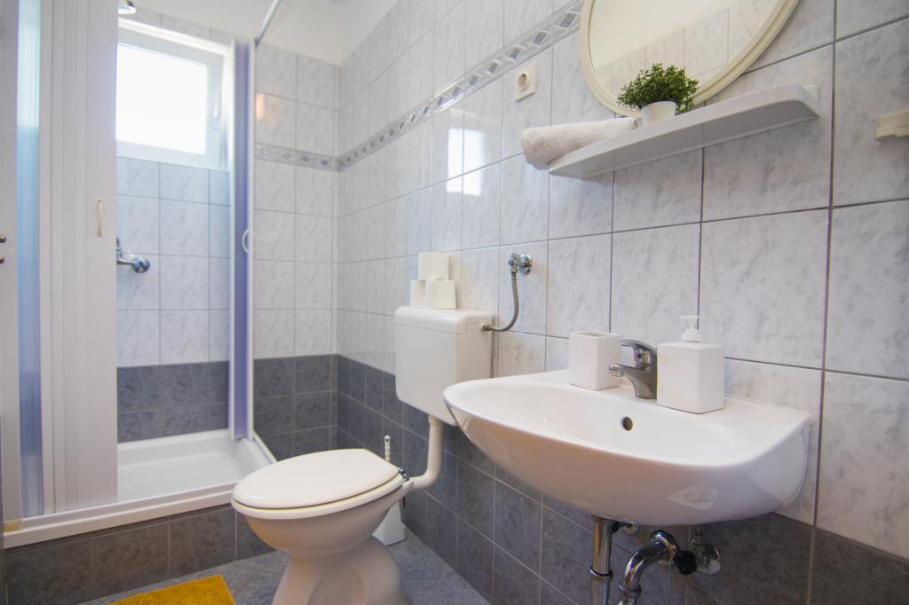 Huset ligger i centrum af byen, kun 90 m fra havet og en smuk promenade med talrige restauranter, caféer og andre faciliteter. Gæsterne kan finde butikker, en bank, et posthus, et apotek og lignende i nærheden af huset. Husets gård er rummelig, hvor der er plads nok til at parkere gæsternes biler. Det er omgivet af middelhavsplanter og blomster. Gæsterne kan også benytte den fælles grill, der ligger bag huset. Alle lejligheder har terrasse eller altan, og nogle lejligheder har endda to terrasser eller to altaner. Kvarteret er roligt og sikkert. Fra nogle lejligheder kan du se havet. Hver enhed har aircondition, satellit-tv, internet og en filterkaffemaskine.