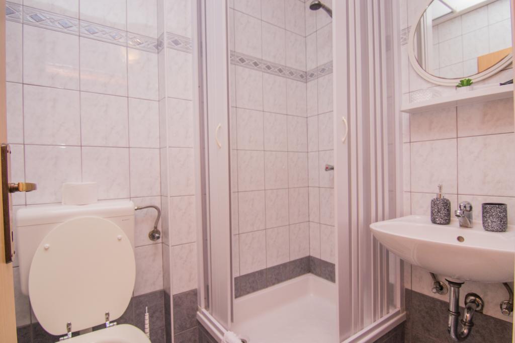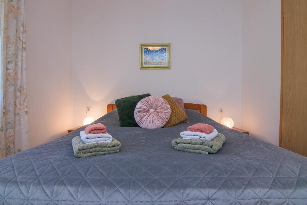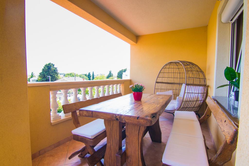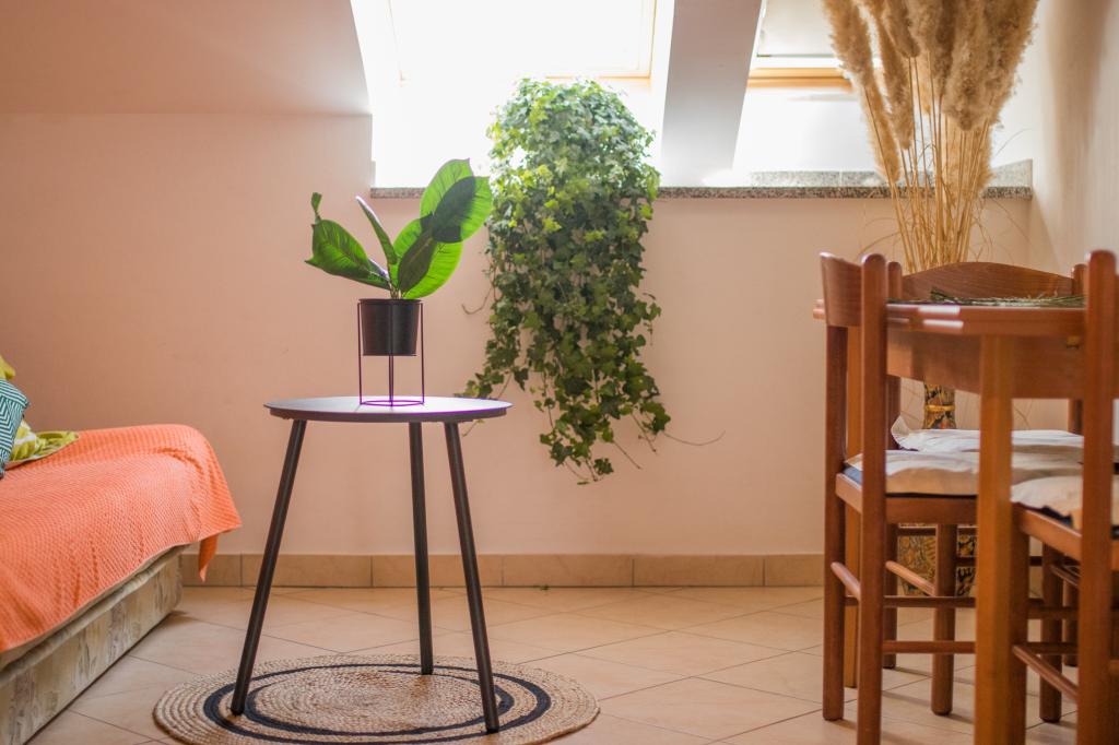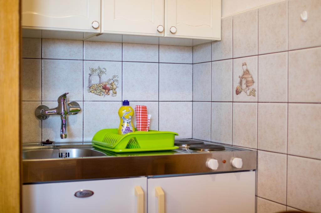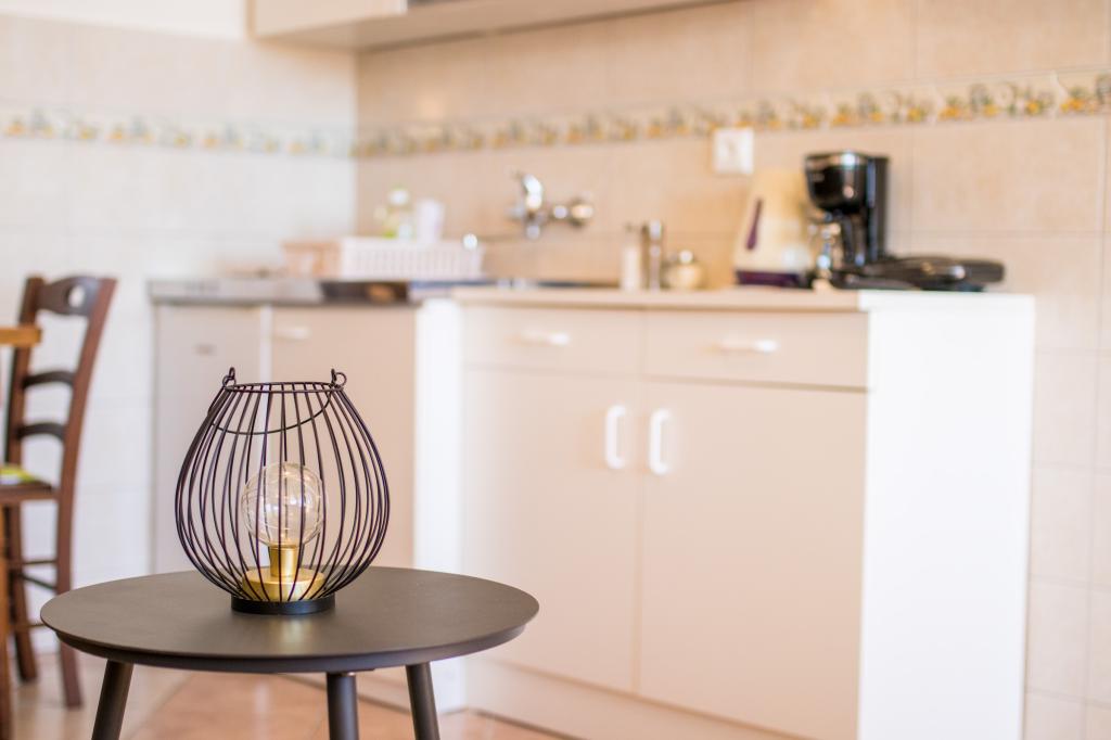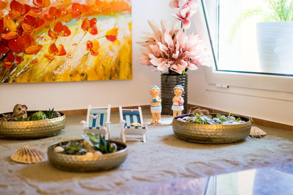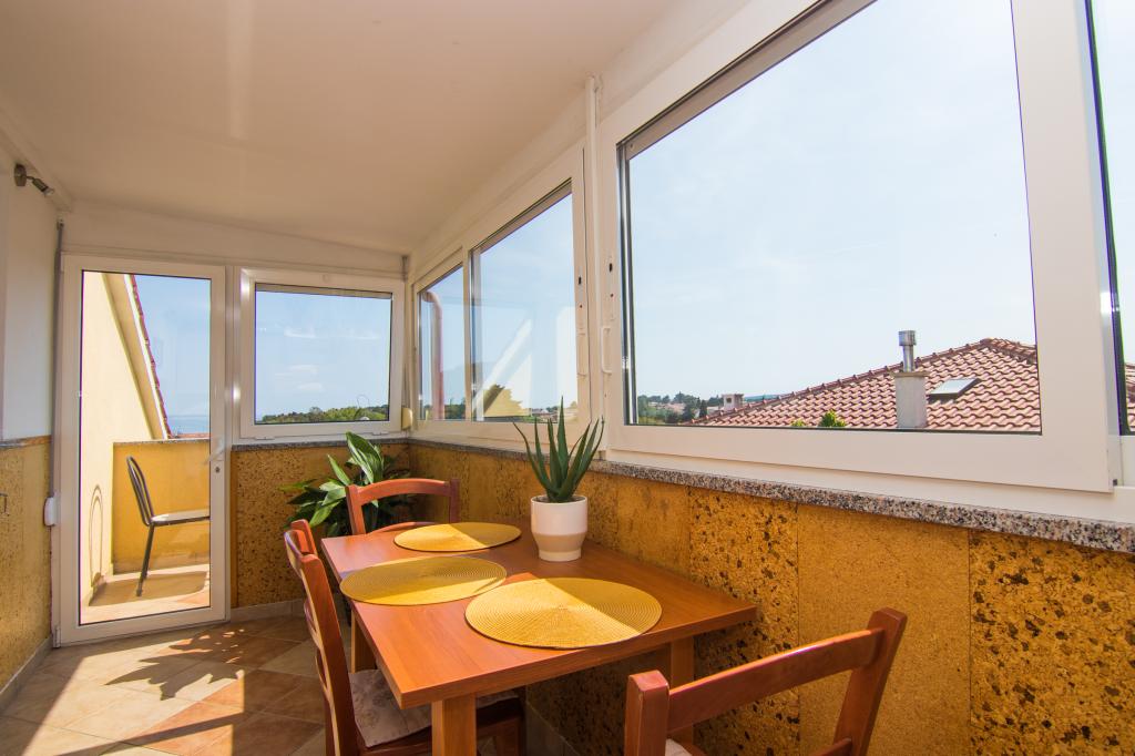 Huset ligger i centrum af byen, kun 90 m fra havet og en smuk promenade med talrige restauranter, caféer og andre faciliteter. Gæsterne kan finde butikker, en bank, et posthus, et apotek og lignende i nærheden af huset. Husets gård er rummelig, hvor der er plads nok til at parkere gæsternes biler. Det er omgivet af middelhavsplanter og blomster. Gæsterne kan også benytte den fælles grill, der ligger bag huset. Alle lejligheder har terrasse eller altan, og nogle lejligheder har endda to terrasser eller to altaner. Kvarteret er roligt og sikkert. Fra nogle lejligheder kan du se havet. Hver enhed har aircondition, satellit-tv, internet og en filterkaffemaskine.