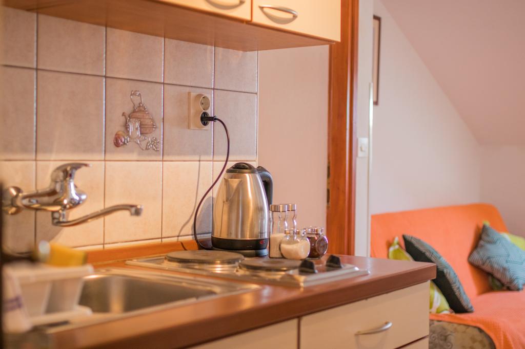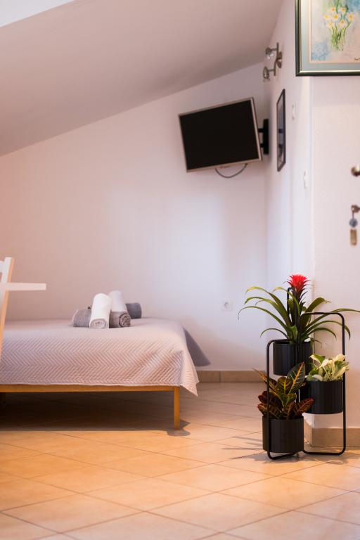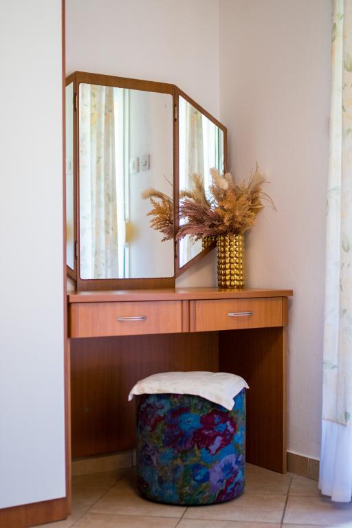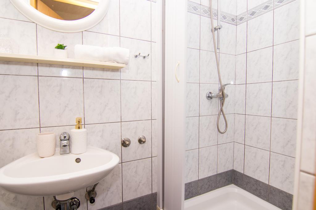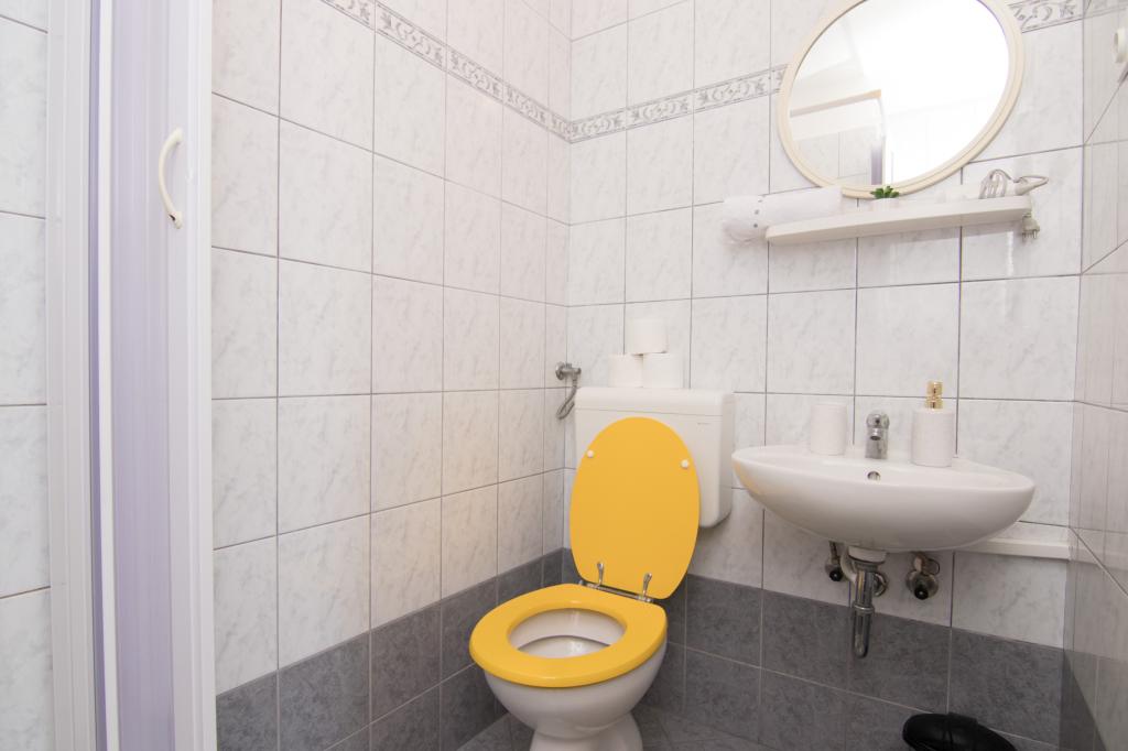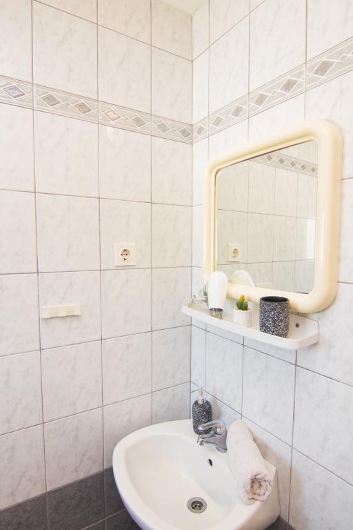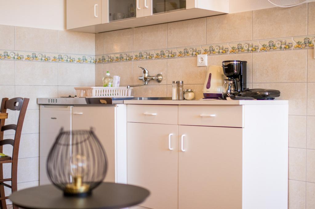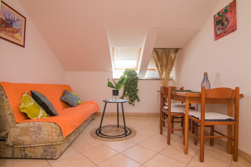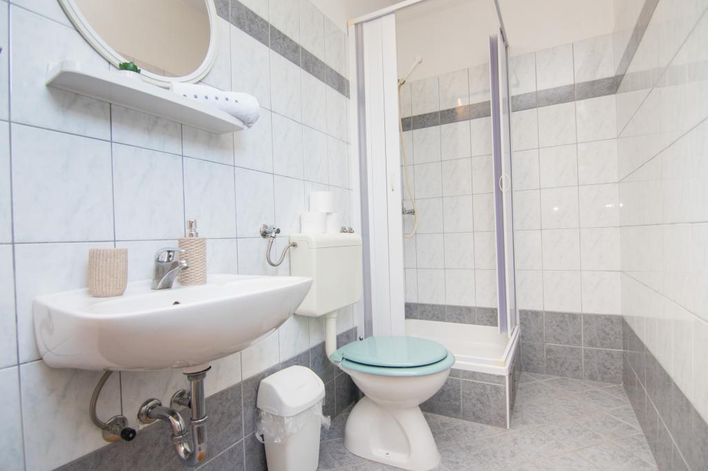 Huset ligger i centrum af byen, kun 90 m fra havet og en smuk promenade med talrige restauranter, caféer og andre faciliteter. Gæsterne kan finde butikker, en bank, et posthus, et apotek og lignende i nærheden af huset. Husets gård er rummelig, hvor der er plads nok til at parkere gæsternes biler. Det er omgivet af middelhavsplanter og blomster. Gæsterne kan også benytte den fælles grill, der ligger bag huset. Alle lejligheder har terrasse eller altan, og nogle lejligheder har endda to terrasser eller to altaner. Kvarteret er roligt og sikkert. Fra nogle lejligheder kan du se havet. Hver enhed har aircondition, satellit-tv, internet og en filterkaffemaskine.