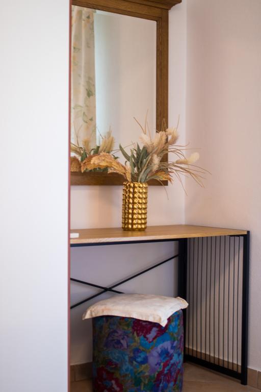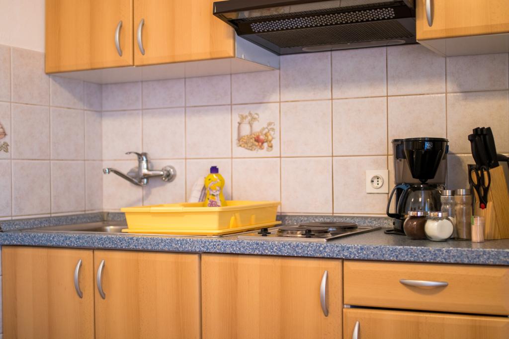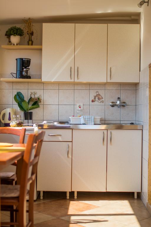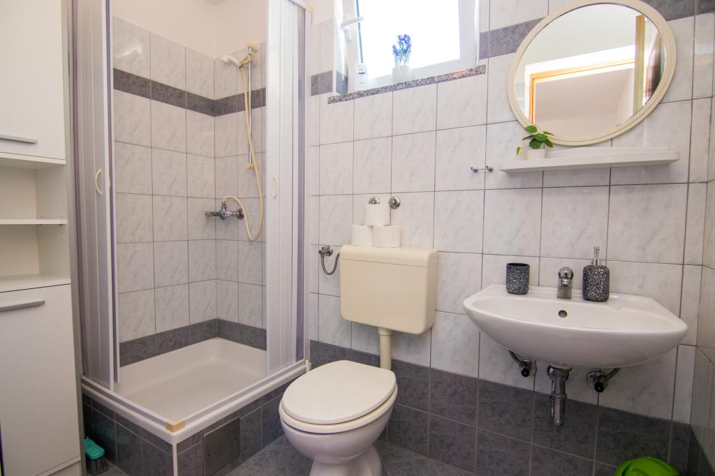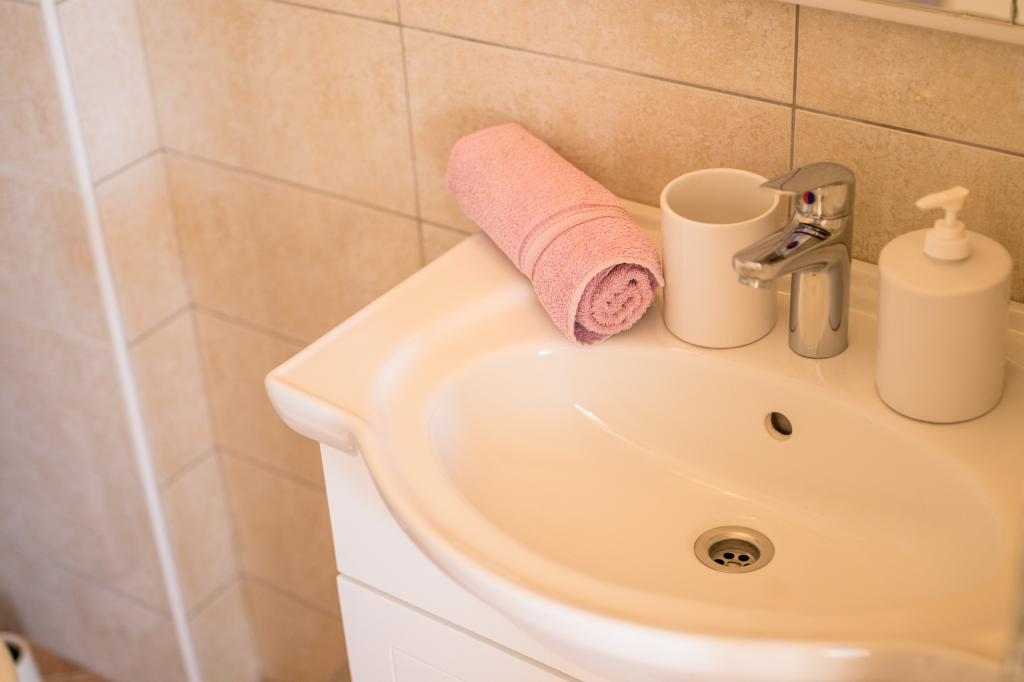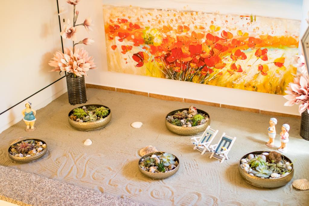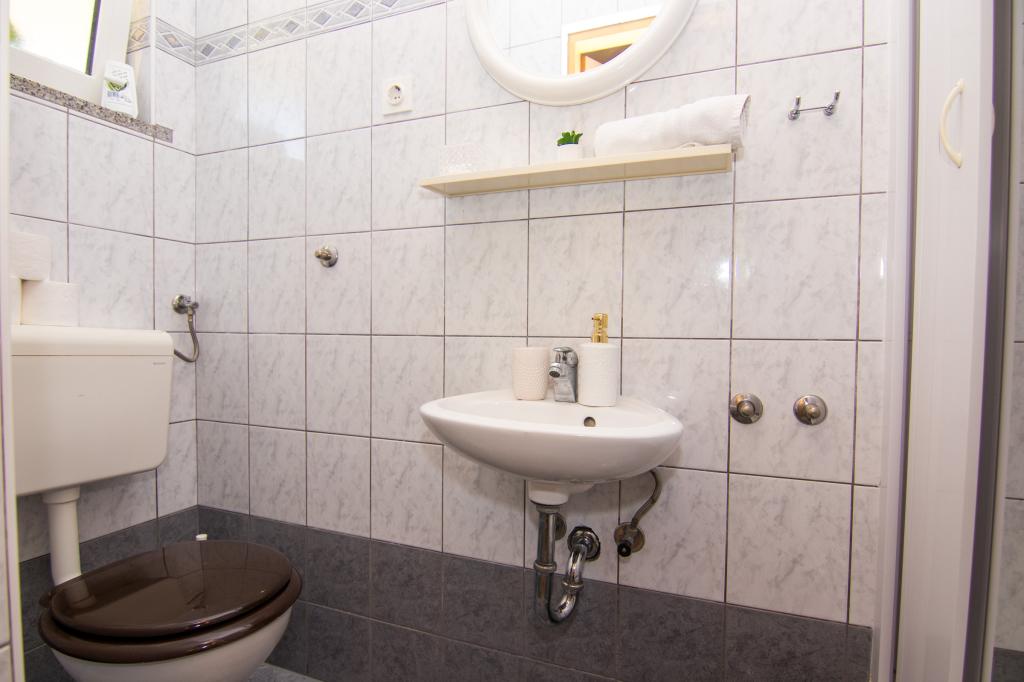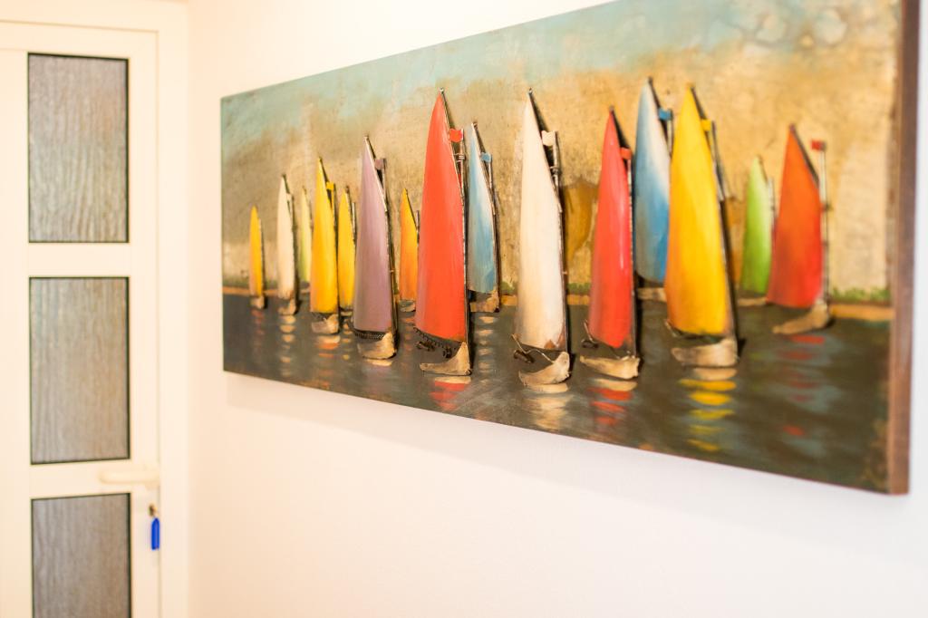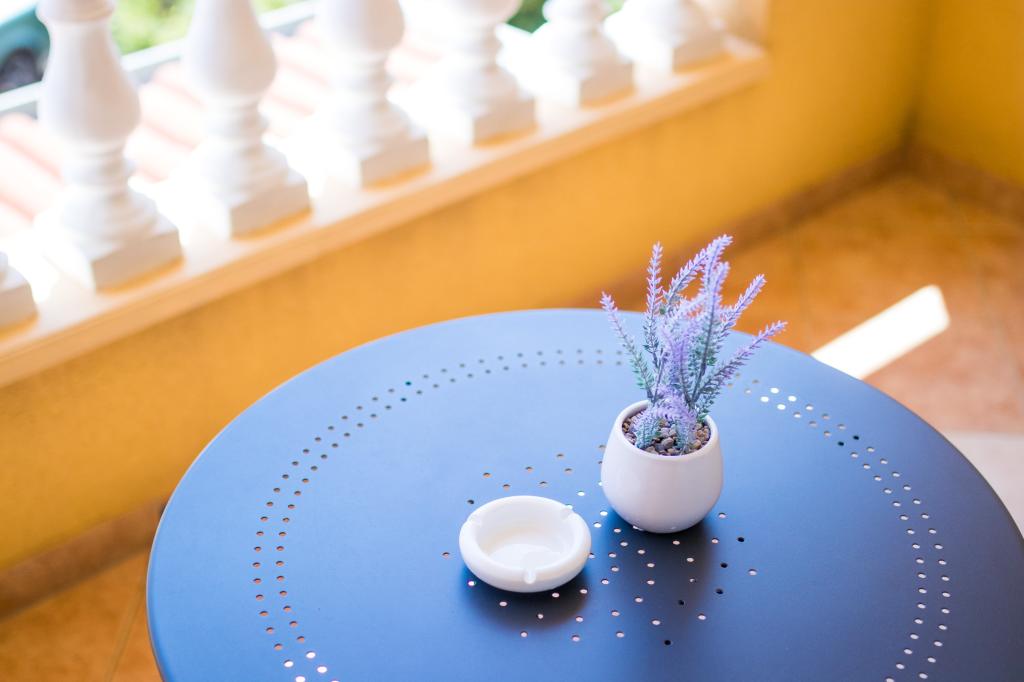Huset ligger i centrum af byen, kun 90 m fra havet og en smuk promenade med talrige restauranter, caféer og andre faciliteter. Gæsterne kan finde butikker, en bank, et posthus, et apotek og lignende i nærheden af huset. Husets gård er rummelig, hvor der er plads nok til at parkere gæsternes biler. Det er omgivet af middelhavsplanter og blomster. Gæsterne kan også benytte den fælles grill, der ligger bag huset. Alle lejligheder har terrasse eller altan, og nogle lejligheder har endda to terrasser eller to altaner. Kvarteret er roligt og sikkert. Fra nogle lejligheder kan du se havet. Hver enhed har aircondition, satellit-tv, internet og en filterkaffemaskine.