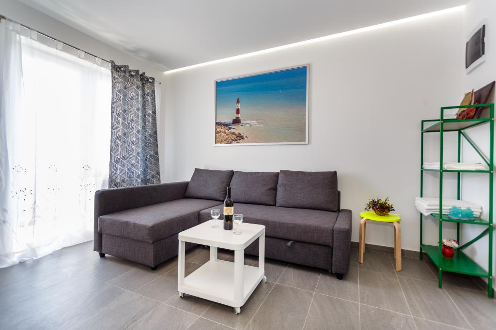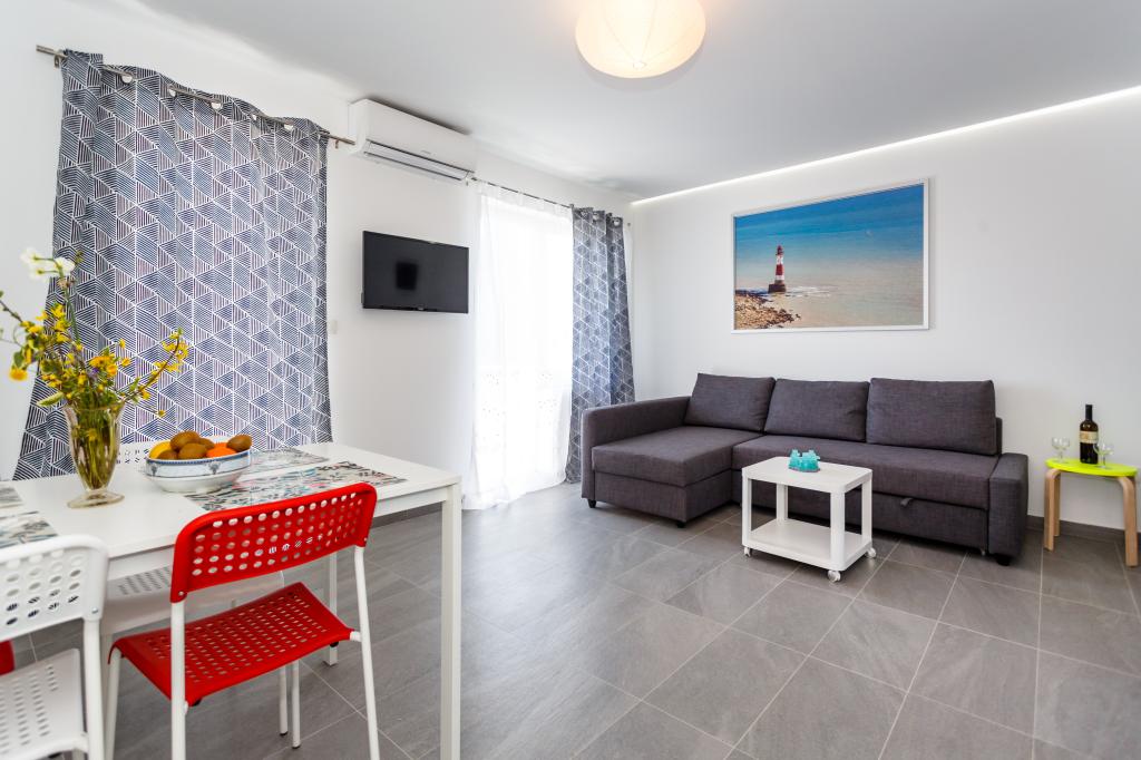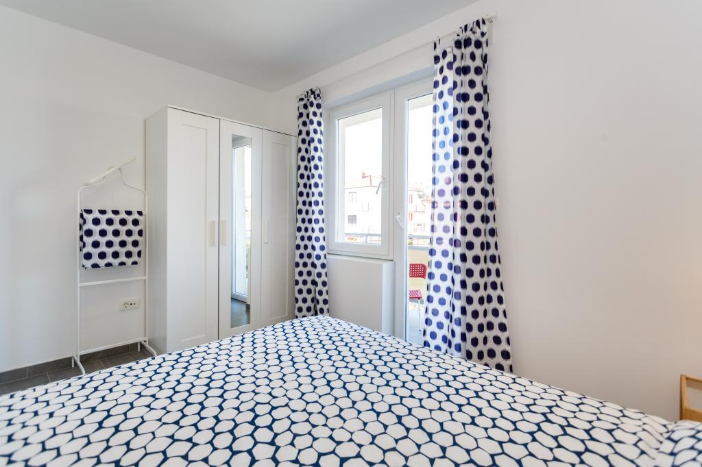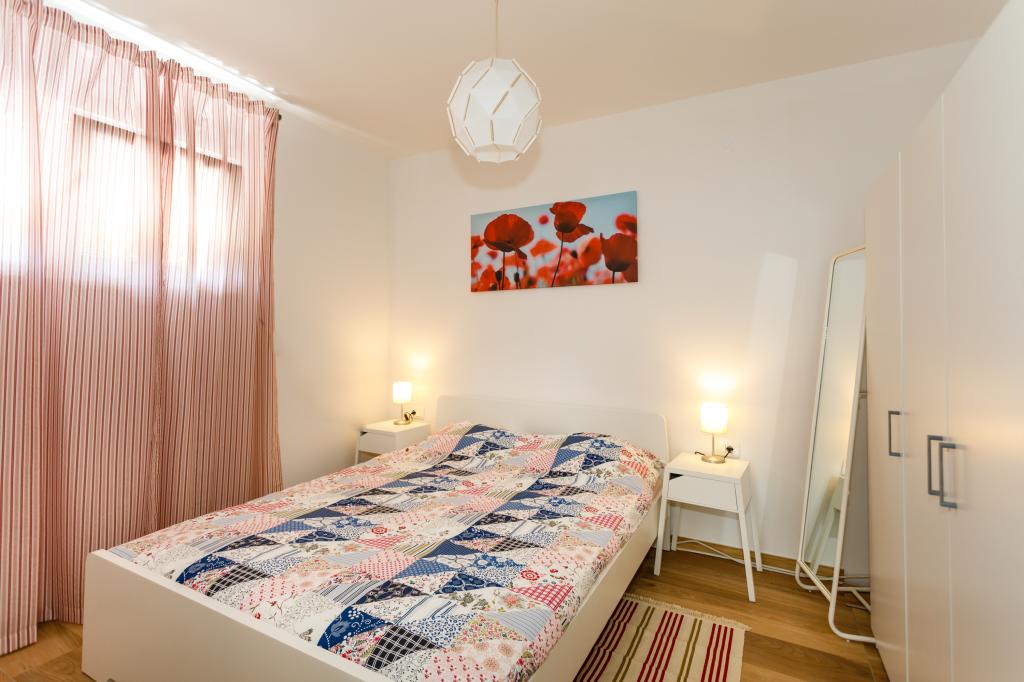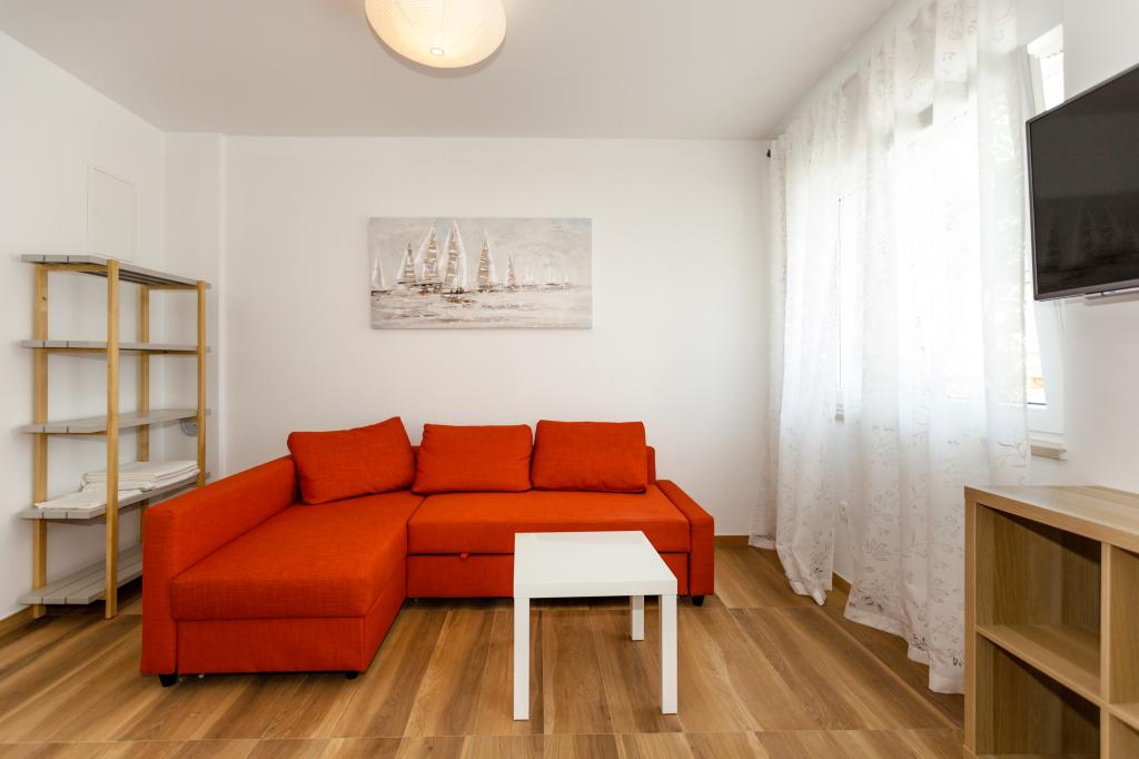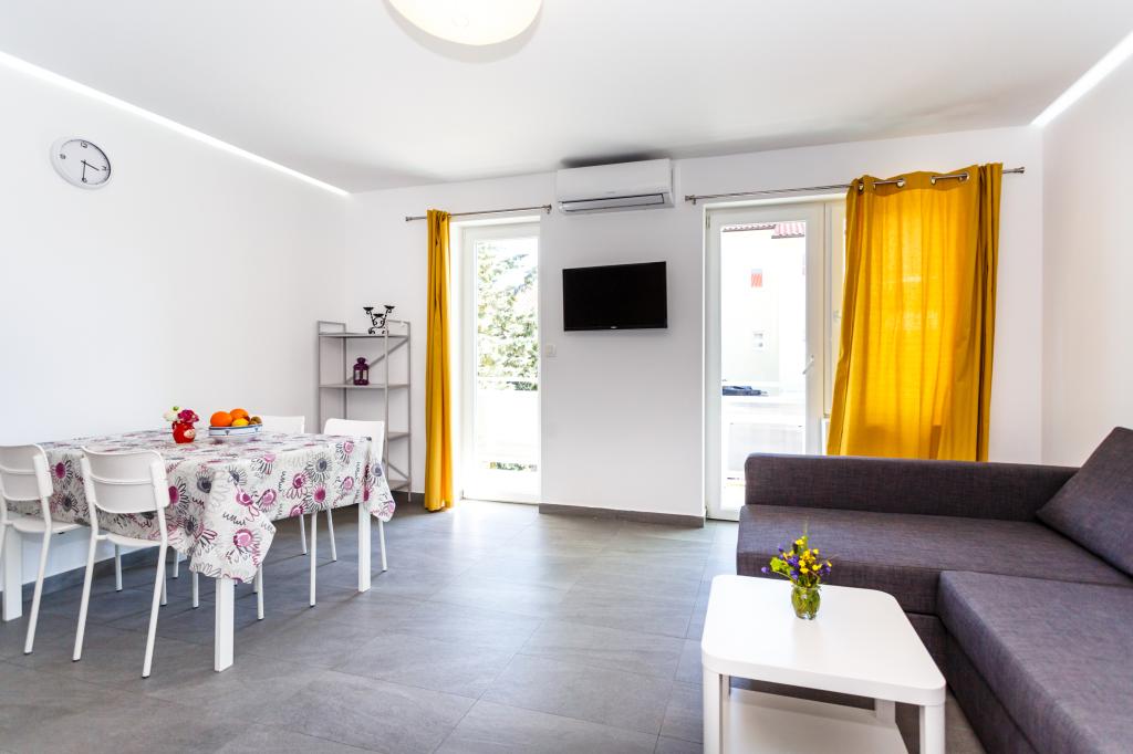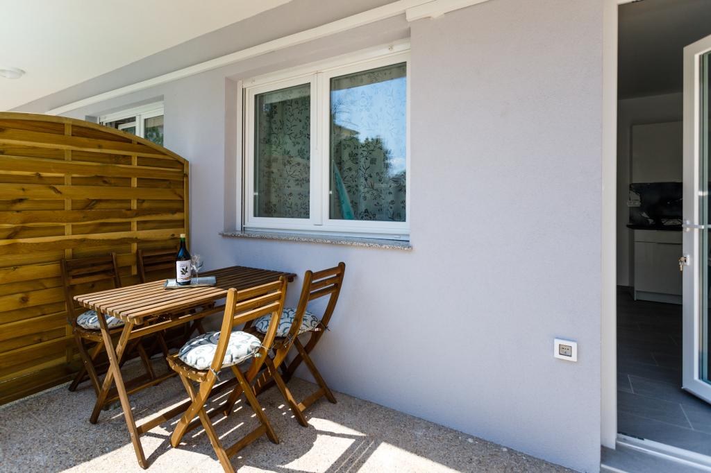 Hilsen! :) Dette er vores helt nye lejlighed beliggende nær centrum af Krk (ca. 5 minutters gang). Lejligheden har et soveværelse med dobbeltseng, en stue med en sofa, der kan laves om til en dobbeltseng, et køkken og et badeværelse med det nødvendige tilbehør. Det har også en balkon, hvor du kan nyde solen på ethvert tidspunkt af dagen. Vi tilbyder gratis parkeringsplads i skyggen, gratis aircondition, smart-tv med Netflix, BBQ-grill i haven ved siden af lejligheden og gratis WiFi.