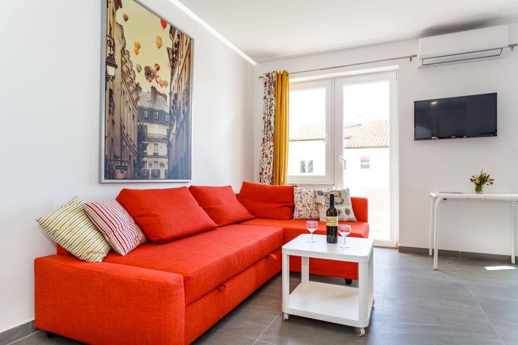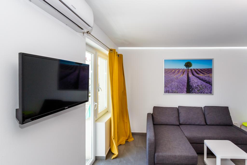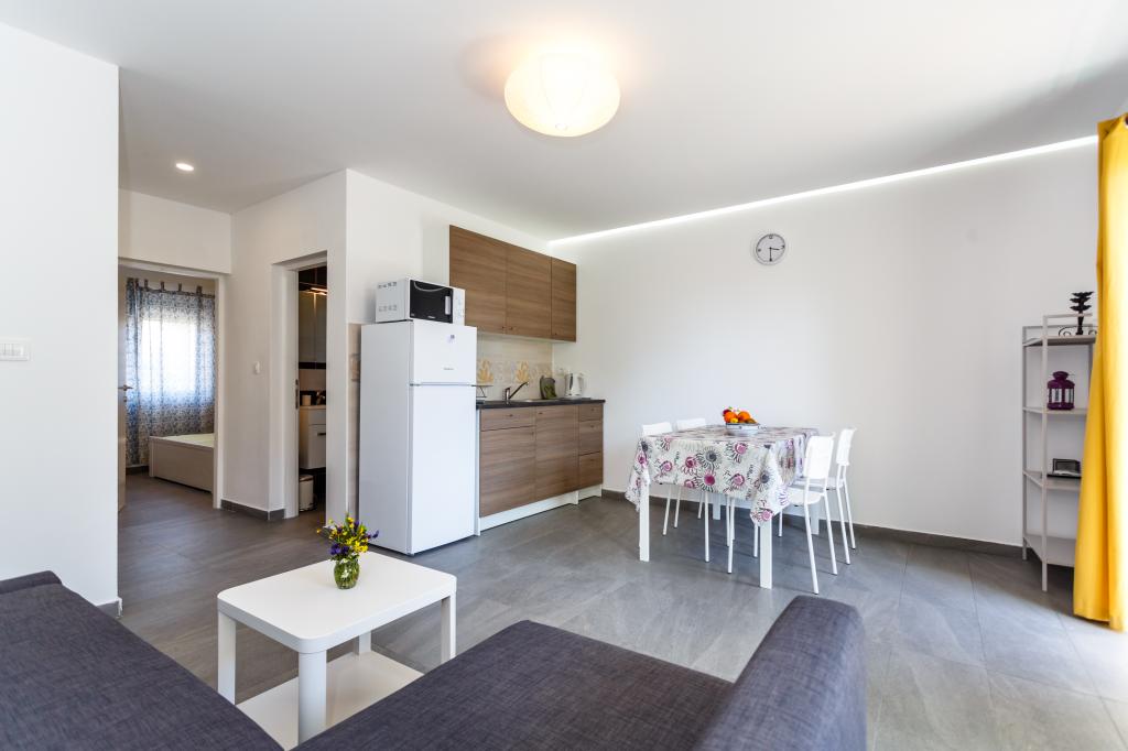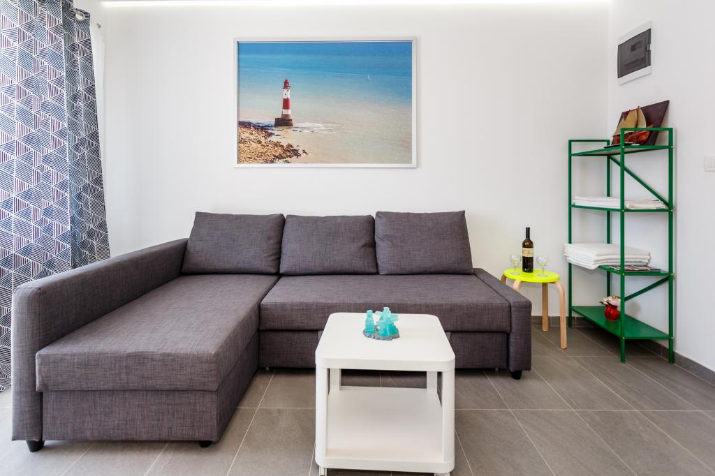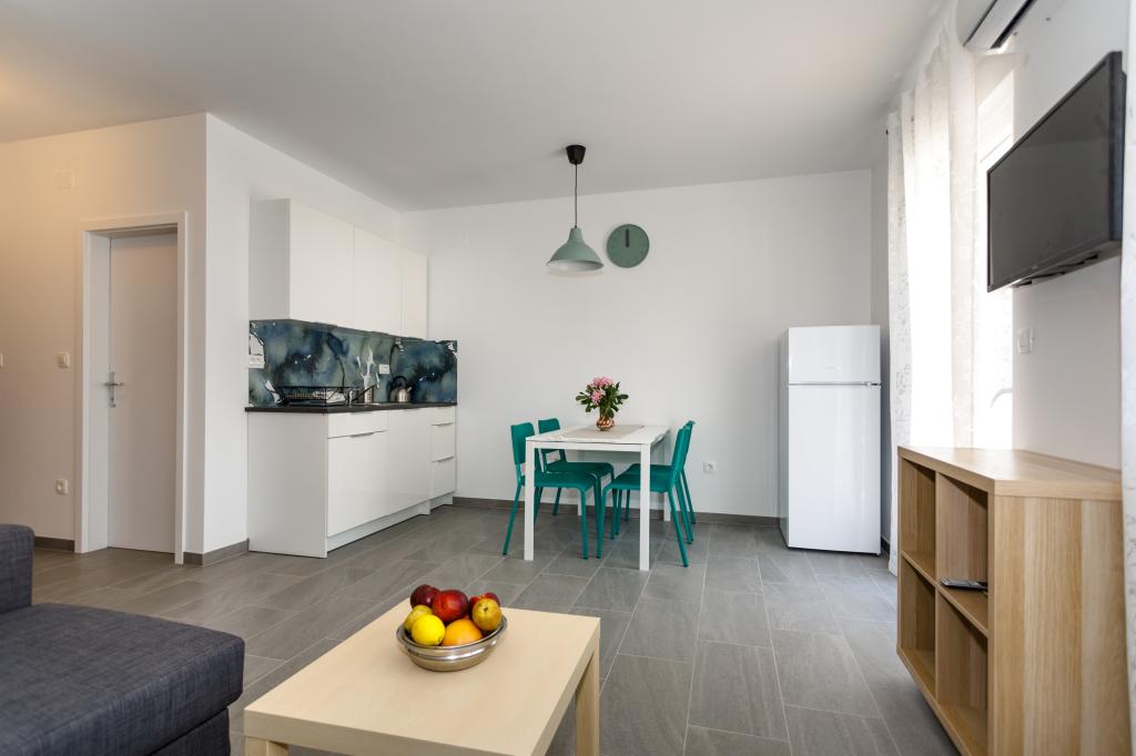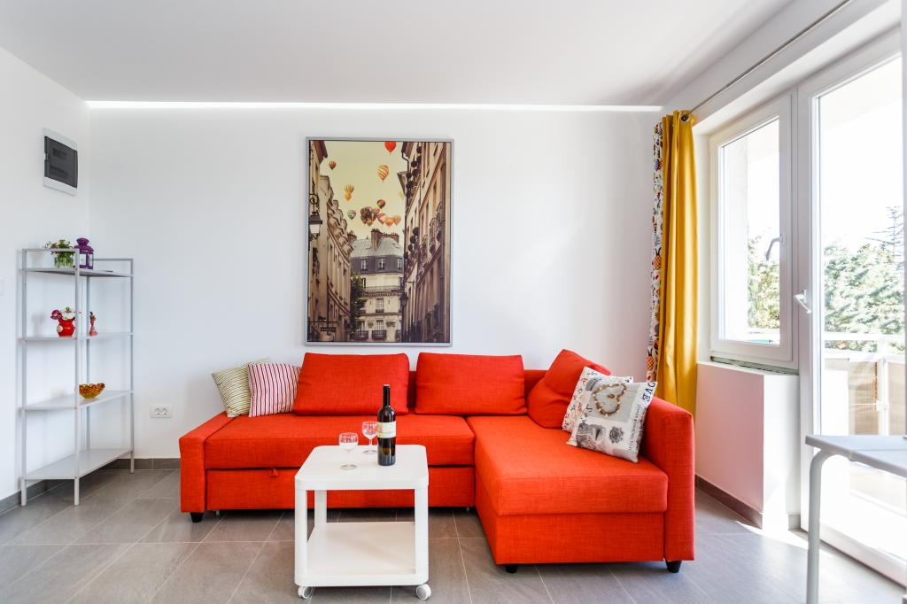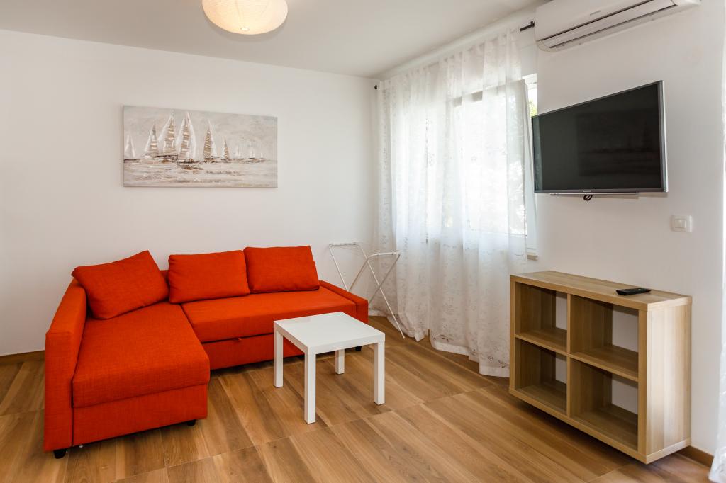 Hilsen! :) Dette er vores helt nye lejlighed beliggende nær centrum af Krk (ca. 5 minutters gang). Lejligheden har et soveværelse med dobbeltseng, en stue med en sofa, der kan laves om til en dobbeltseng, et køkken og et badeværelse med det nødvendige tilbehør. Det har også en balkon, hvor du kan nyde solen på ethvert tidspunkt af dagen. Vi tilbyder gratis parkeringsplads i skyggen, gratis aircondition, smart-tv med Netflix, BBQ-grill i haven ved siden af lejligheden og gratis WiFi.