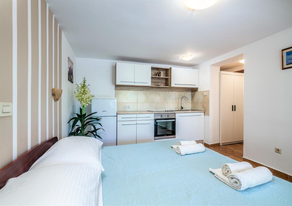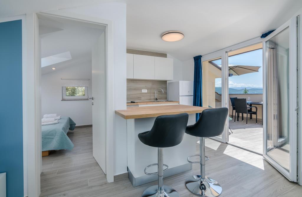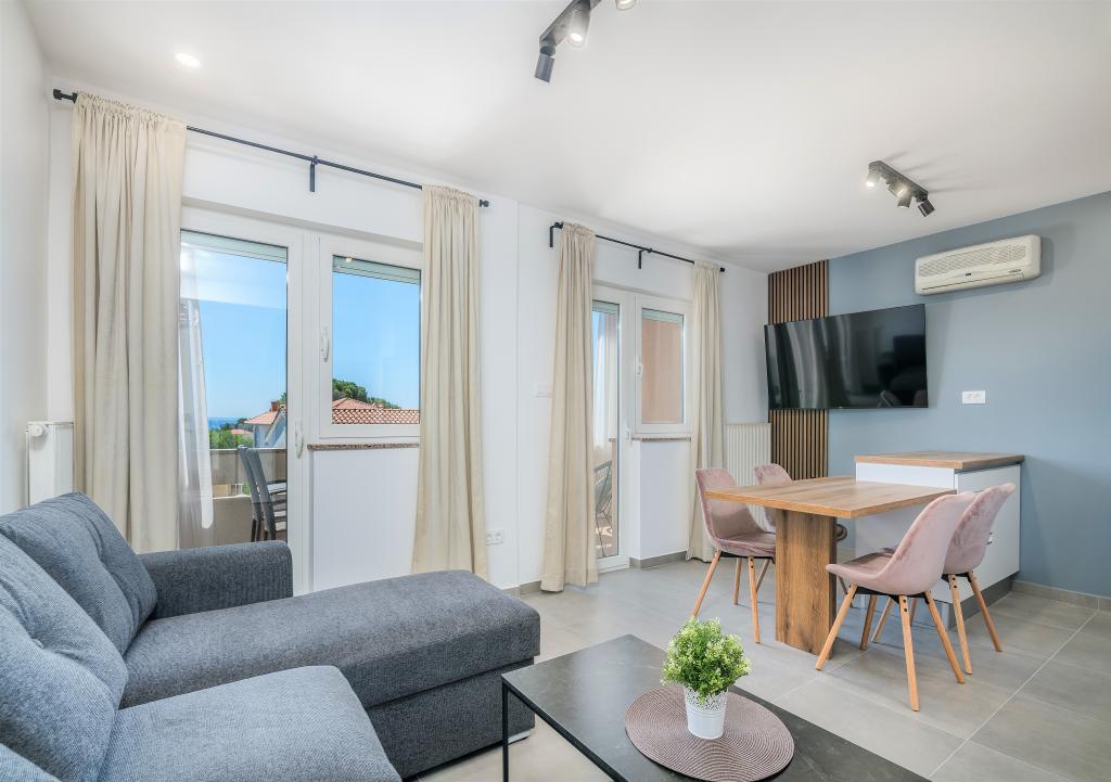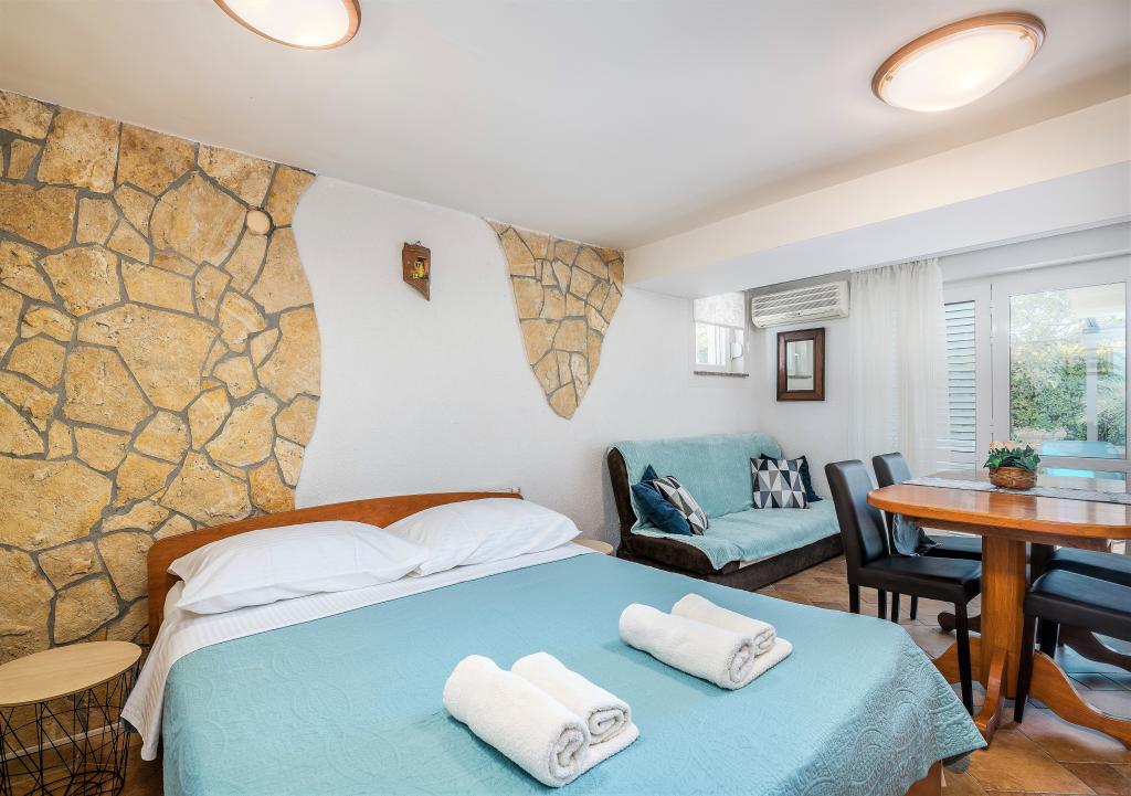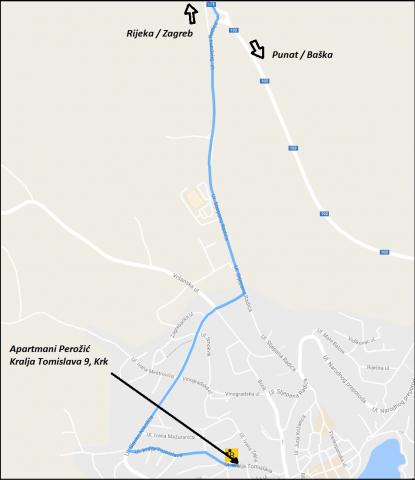 Huset er beliggende i centrum af byen Krk. Hver lejlighed har sin egen parkeringsplads. Huset har en grill og et bord til socialt samvær, som er beregnet til alle lejligheder. Husdyr er tilladt efter forudgående aftale med ejeren.