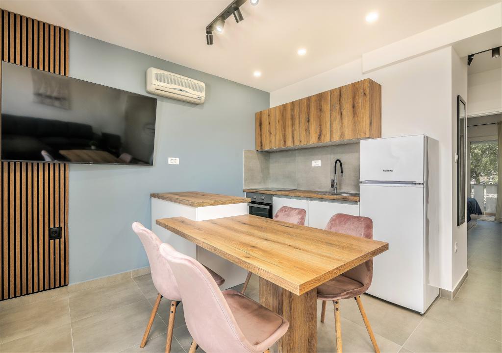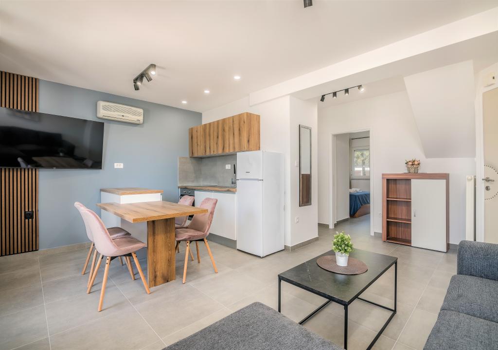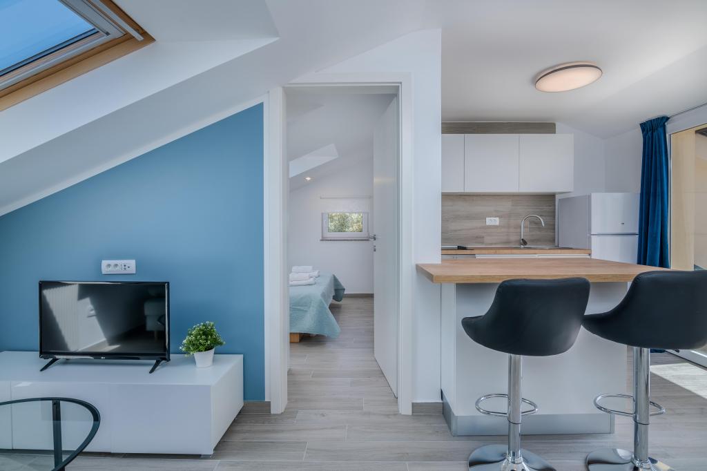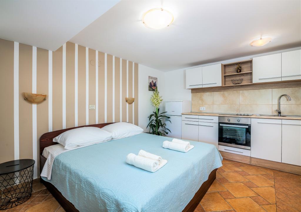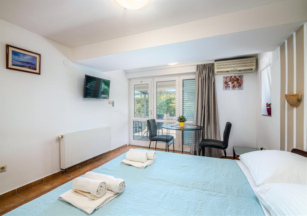 Huset er beliggende i centrum af byen Krk. Hver lejlighed har sin egen parkeringsplads. Huset har en grill og et bord til socialt samvær, som er beregnet til alle lejligheder. Husdyr er tilladt efter forudgående aftale med ejeren.
