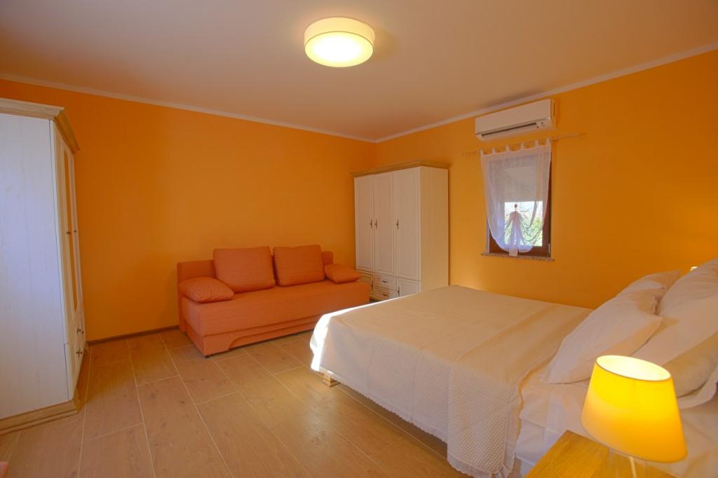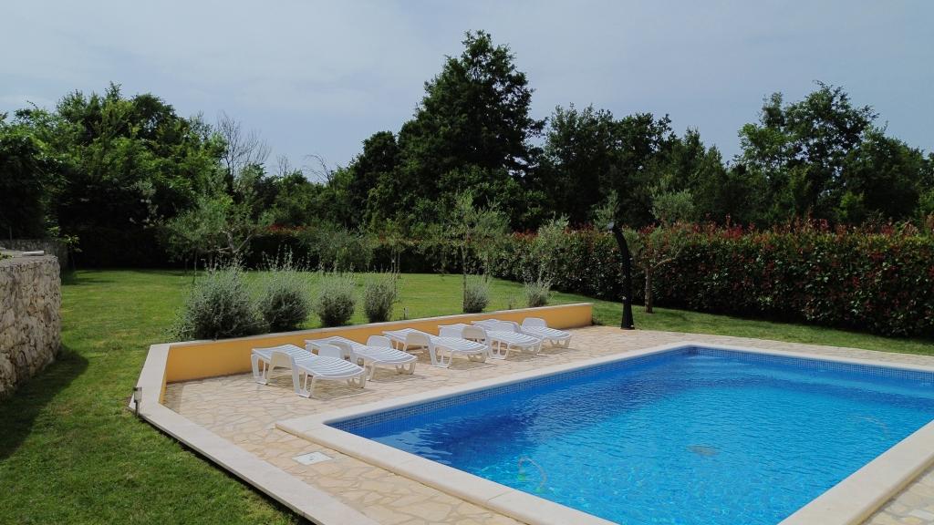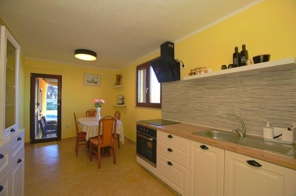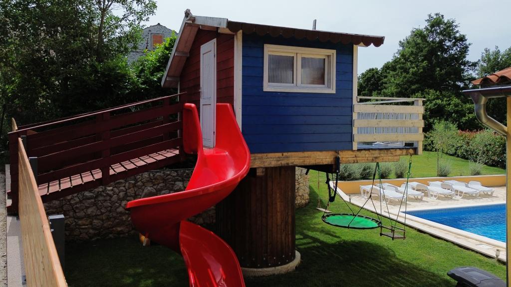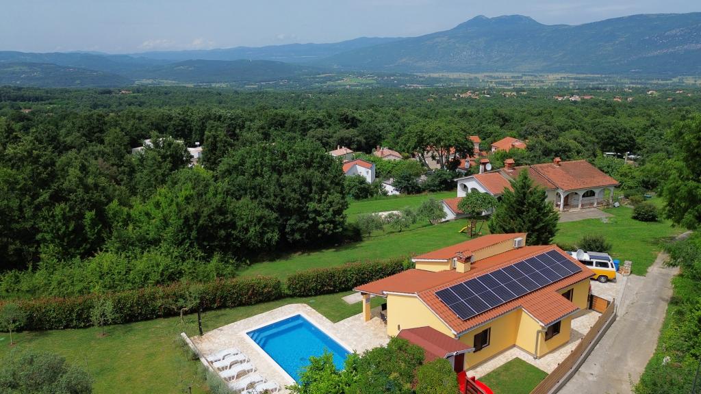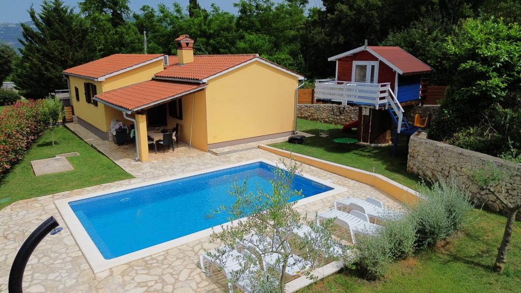 Velkommen til vores feriehus beliggende i den lille, rolige landsby Vlašići, nær Kršan med udsigt over naturen og Učka-bjerget. Velegnet som en ideel oase af fred til en familieferie eller en ferie med venner. Vi håber, at I vil nyde freden og roen, mens jeres børn nyder træhuset, rutsjebanerne og gyngerne. Huset har 98m2 boligareal (entre, stue, køkken, badeværelse, soveværelse med en dobbeltseng, der måler 160 x 200 og et soveværelse med en dobbeltseng, der måler 160 x 200 og en futon 160 x 200) og ligger på en 870m2 stor indhegnet have med parkering på grunden. Huset er udstyret med en udendørs opvarmet swimmingpool. Poolen er 7x4 i størrelse og 140 cm dyb. Poolvandet opvarmes til maksimalt 25 grader Celsius i den periode, hvor det skal opvarmes. Den første større by i nærheden af landsbyen er Kršan, som kan prale af en rig kulturel og historisk arv. Tæt på landsbyen (15 min. væk) ligger også byen Labin, som ligger på en bakke over Rabac. Labin er en destination beregnet til gæster, der søger kulturelskere og antikvitetsentusiaster, kendt for sine mange gallerier, udstillinger og udendørsarrangementer. Rabac (25 min. væk) med smukke strande, der betragtes som de eneste af de smukkeste i Istrien med krystalklart hav, og byer på Istrien-halvøen, der også er et besøg værd: Pula, Rovinj, Umag, Poreč ligger også alle omkring 1-1,30 min. væk, og øerne Cres, Lošinj, Brioni Nationalpark nær Pula og byen Rijeka, den tredjestørste by i Republikken Kroatien, 1 time fra landsbyen. På vej til Rijeka ved havet, hvor der er en smuk udsigt over Kvarnerbugten og øerne, er det også et besøg værd Opatija - en turistdestination med den længste tradition inden for kroatisk turisme. Višnjan-observatoriet ligger midt i den lille istriske by Višnjan, som også er et besøg værd.