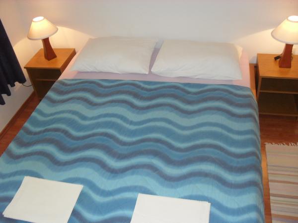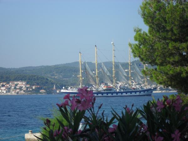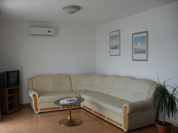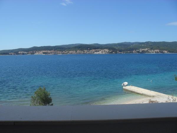 Først og fremmest, nice ejere! Vi fik en meget større plads til samme pris, bare fordi det var lavsæsonen, og værelset var fri - ikke tugte om det helt. Boliger rent værelse, godt udstyret køkken, kan du roligt lave mad selv hvis nogen ønsker at. På afrejsedagen ejerne inviteret os til en farvel øl til sig selv :) Som for området er primært fred og ro, blot et par dusin meter to restauranter, hvoraf den ene (større - kan ikke huske navnet) tjener fremragende mad. Grillet fisk VM. Ejerne har deres Panorama restaurant, som er placeret over huset - men på grund af terrænet - det beløb, du skal enten gå der i bil eller forberede sig til klatring. Stranden lige foran bygningen, vejen er ikke meget travlt, så det nærhed er ikke besværlig. Vi gik til dette sted på grund af windsurfing og her, desværre, valg af placering var ikke helt ramt - vinden kom kun én gang i løbet af 9 dages ophold. Men stedet kan sikkert nås med bil, så dette ikke er et problem - til gengæld får vi fred, ro og tomme strand (vi var i første halvdel af juni) Aften udsigt fra balkonen Korcula har hele tiden i hukommelsen. Generelt anbefales stærkt !!!