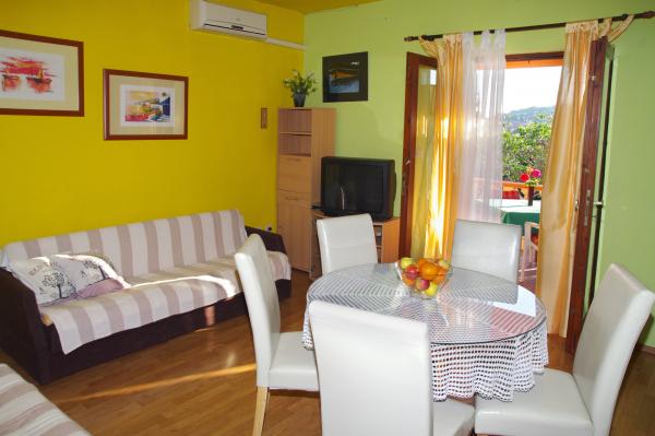 Lejlighederne ligger i en rolig del af Kukljica, ideel til en ferie i fred og ro, og alligevel kun et minuts gang fra havet. De er placeret i slutningen af Zelena Punta, så i en ti minutters gang gennem skoven kommer du til de vigtigste strande i Zelena Punta. Lejlighederne er meget rummelige med en enorm terrasse, veludstyret, meget god wifi med et stærkt signal, så hele familien kan være på deres enheder.