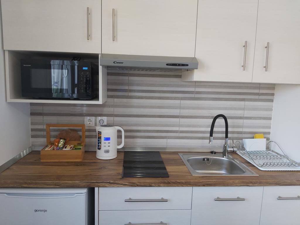 Ny, fuldt udstyret studielejlighed. Det er beregnet til to personer, med et fuldt udstyret køkken (mikroovn, køleskab, komfur, kedel...), badeværelse med bruseniche og vaskemaskine, spisestue, komfortabel dobbeltseng, garderobeskabe, TV (Netflix-konto inkluderet) og udstyret terrasse. Gratis WIFI. Stille og fredeligt kvarter, ideelt til ferie og ikke langt fra offentlig transport (tog, bus). Sikret parkeringsplads. Det er også muligt at leje en daglig ferie uden overnatning.