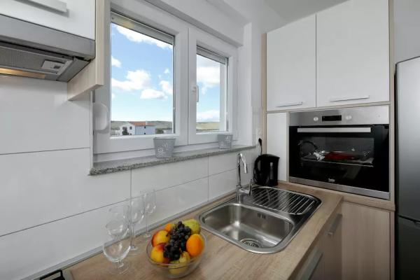Jeg kan kun rose, lejligheden er meget flot, ryddelig, ren. Omgivelserne er fredelige og ejerne er de bedste, så vi vil helt sikkert vende tilbage, bare på grund af den venlighed og fred, der er der. Deres vandmeloner og meloner vinder så meget.....det var fantastisk for os......selv strandene er rolige, uden menneskemængder, og kroen vinder så meget tæt på stranden, fordi de er virkelig venlige.. .priserne...men jeg synes ikke noget er dyrere end i Slovenien..