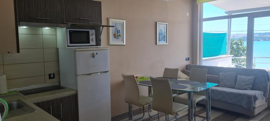 Smuk lejlighed, hvor de er rengøring, håndklæder ligesom et hotel. Det fuldt udstyret køkken, to soveværelser, et med en dobbeltseng det andet en dobbeltseng og en enkelt, med to soveværelser er en balkon med udsigt over havet. Hertil kommer, at køkkenet er en komfortabel sofa med adgang til den anden altan, værterne meget rart. Vi var der 10 dage, og vi er meget glade for. Med venlig hilsen. Drabik