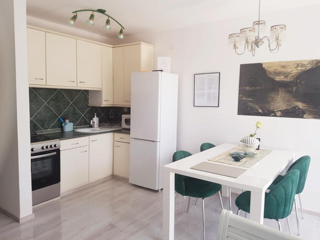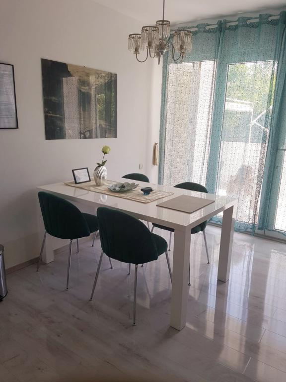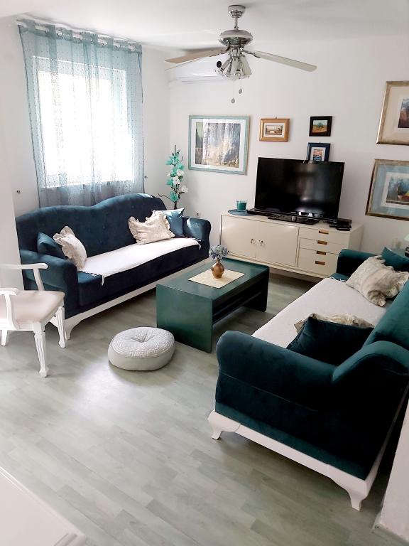 Nina, Martin og deres forældre er fremragende værter. Altid klar til at træde til, hvis der er brug for noget. Alle lejligheder er veludstyrede, rummelige, med store terrasser, hurtigt internet og aircondition (AC). Du har din egen parkeringsplads foran huset, og den første restaurant eller bageri ligger 3 minutters gang væk, og Paradise Beach ligger 4 minutters gang væk. Jeg kan varmt anbefale det til alle, der ønsker at slappe af i et positivt miljø. Vi glæder os til den kommende ferie...