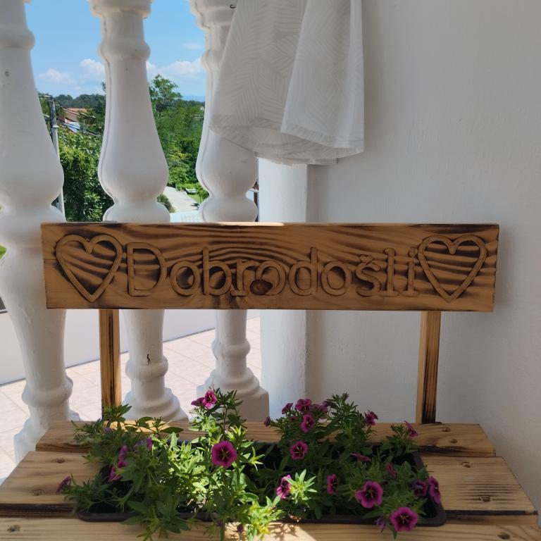 Kære gæster. Vi tilbyder jer 6 veludstyrede lejligheder, 600 m fra Rajska plaža. Lejlighederne har havudsigt, parkering og en legeplads med en stor have. Vi ser frem til jeres ankomst. Apartments Gero