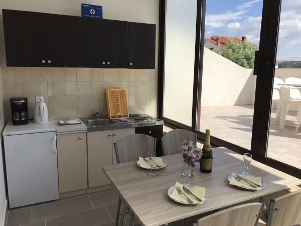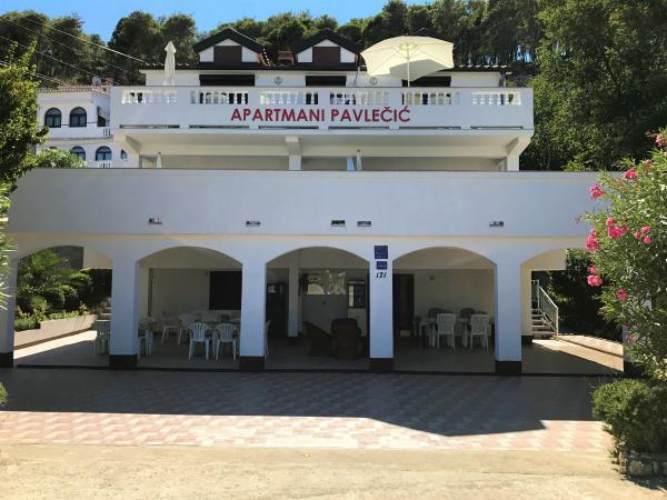 Apartments Pavlečić ligger i Lopar på øen Rab. Lejlighederne består af 6 separate lejligheder. 4 lejligheder er til 3 personer, og 2 lejligheder er til 4 personer. Hver lejlighed har separat indgang, køkken, badeværelse, toilet-bruser, 1 eller 2 soveværelser, satellit-tv, terrasse med bord og stole. I stueetagen er der en stor terrasse med borde og stole og en grill, der kan benyttes af alle gæster. Afstanden fra stranden er kun 20 m. Stranden er ideel til små børn på grund af det lave hav og sandstrand. Butikker, restauranter, posthus er inden for 400m.