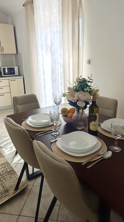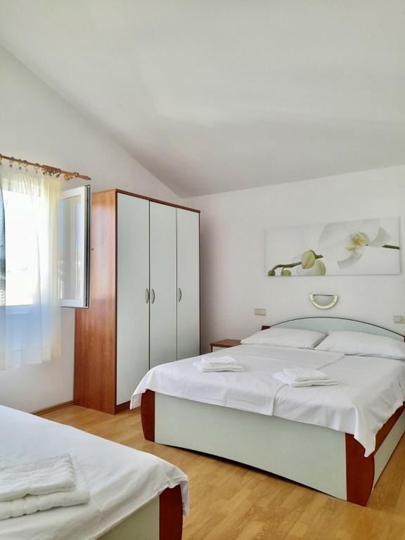 Lejlighederne Petrinić ligger 100 m fra centrum af Lopar. De tilbyder kvalitetsindkvartering og et behageligt ophold for din familie og venner. De er beliggende i et roligt sted, så du kan tilbringe ferien mere afslappet og ubekymret. I nærheden findes en restaurant, et stort konzum indkøbscenter, et bageri, et posthus, en legeplads for børn, en café, et apotek, en busstation. Hver lejlighed indeholder: to store soveværelser til 4 personer plus ekstra seng (4 1), badeværelse, vaskemaskine, køkken, tv / sat, internet, aircondition, balkon, parkering og alt nødvendigt udstyr (sengelinned, håndklæder, kaffemaskine, kedel, køleskab, tallerkener). Der er også en sandstrand i nærheden. Den nærmeste strand er 500 meter væk fra vores hus, og den mest berømte "Paradise Beach" ligger kun 800 meter væk. Vi håber du vil vælge lejligheder Petrinić og glæder dig til din ankomst! Familie Petrinić