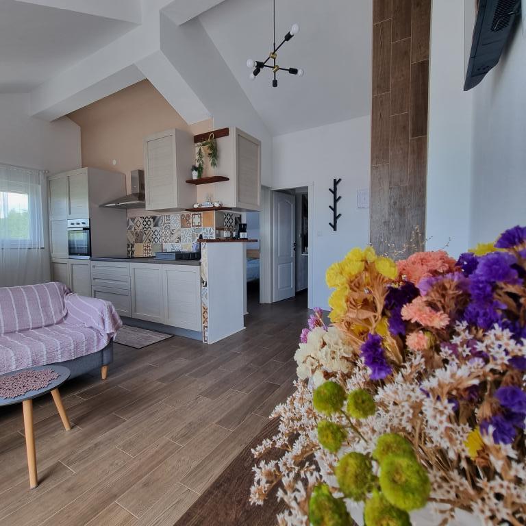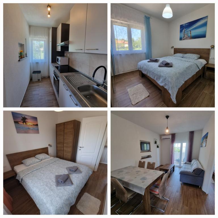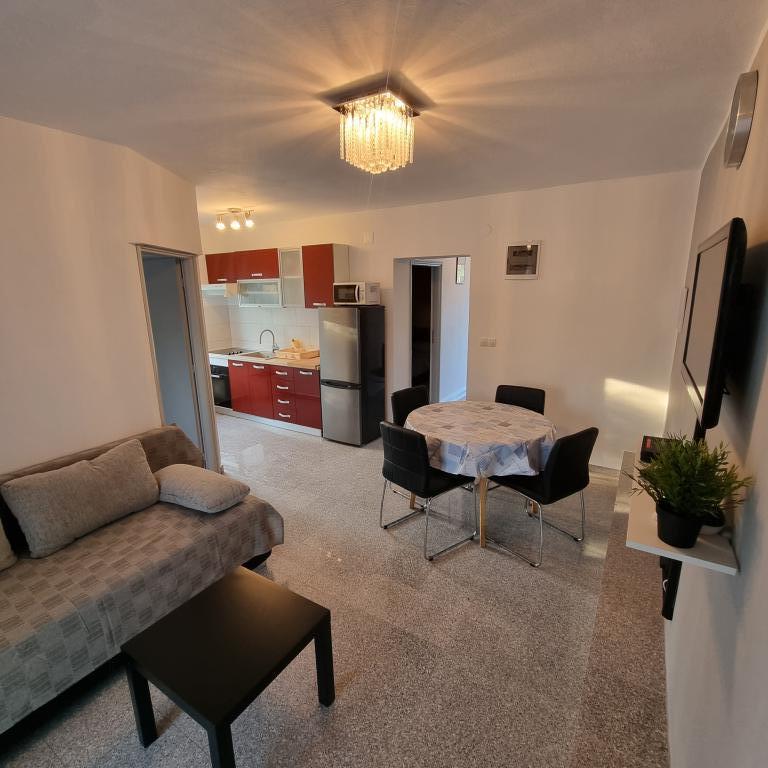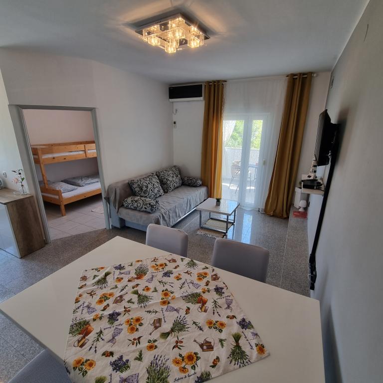 Turistskat er inkluderet i prisen.Vores lejligheder tilbyder komfortabel indkvartering med udstyret køkken, aircondition, tv og gratis Wi-Fi. Gæsterne kan nyde en rummelig have, en grill til at tilberede måltider udendørs og en større parkeringsplads til rådighed. Kæledyr er ikke tilladt. Mulighed for brug af barneseng. Tøjvask - ekstra omkostninger.
