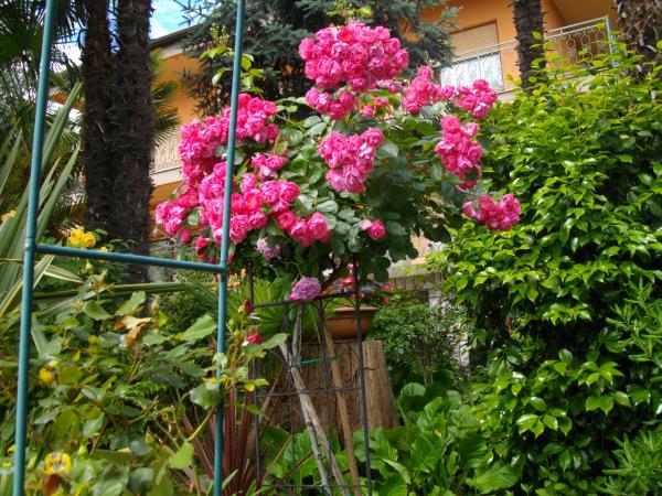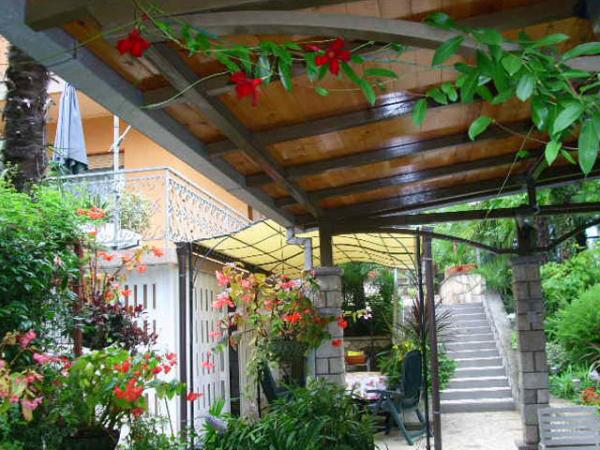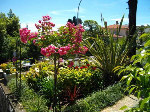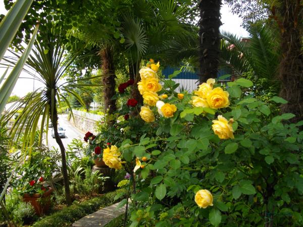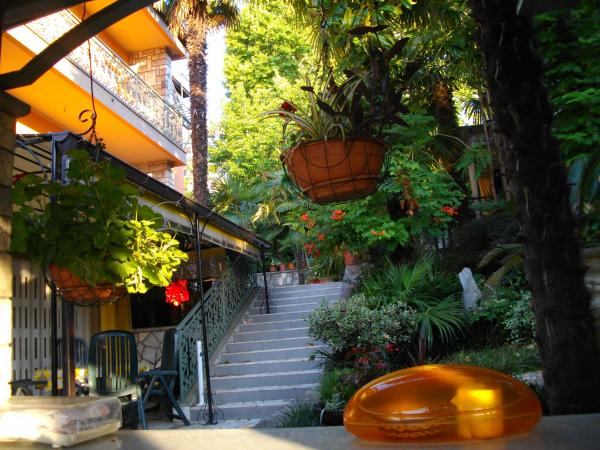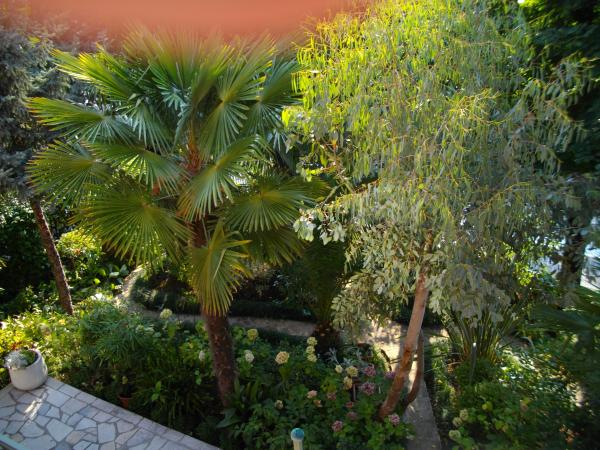 Lejligheden ligger i stueetagen af et fritliggende hus. Det særlige træk er den store have. En overflod af træer, roser, buske og blomster. I haven er der en overdækket pavillon med grill, et fuldt udstyret køkken og et stort havebord. Haveområdet er forbundet med lejlighedsområdet og danner en samlet enhed, hvor gæsterne kan nyde en behagelig friskhed, ro og grønne områder. En fredelig oase tæt på stranden og bymidten med alle faciliteter. SAT-tv, aircondition, WiFi 0-24 timer. Parkering i gården.