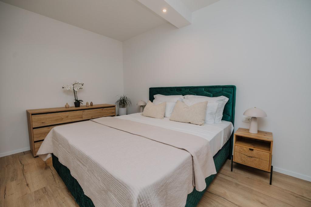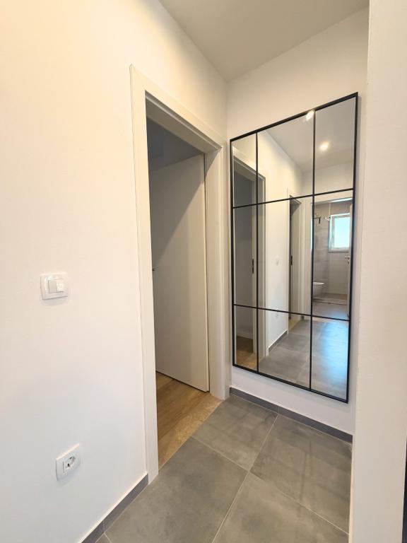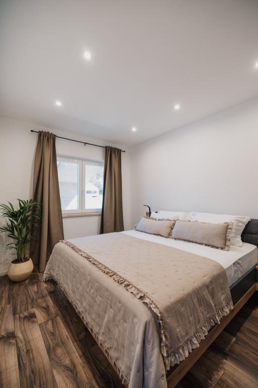 En nyrenoveret og moderne udstyret lejlighed udlejes i Lumbarda på øen Korčula, beliggende i den autentiske atmosfære af en rummelig olivenlund, der garanterer gæsterne absolut intimitet og fred. Lejligheden er på 75 kvadratmeter med to soveværelser og to toiletter, og der er lagt særlig vægt på det ydre, som inkluderer en stor terrasse på 35 kvadratmeter og en have på 100 kvadratmeter, ideel til afslapning i fred og ro. Interiøret er fuldt udstyret til et komfortabelt ophold for fire personer, inklusive opvaskemaskine i køkkenet, vaskemaskine på badeværelset, MaxTV og hurtigt 5G-internet, og for familier med små børn er en barneseng tilgængelig på forespørgsel. Beliggenheden er en perfekt kombination af privatliv og nærhed til alle faciliteter; den første badebugt ligger kun 200 meter væk, bymidten ligger 800 meter væk, mens de berømte store sandstrande ligger omkring 2 kilometer væk. Gæster tilbydes privat parkering i bygningen.