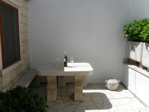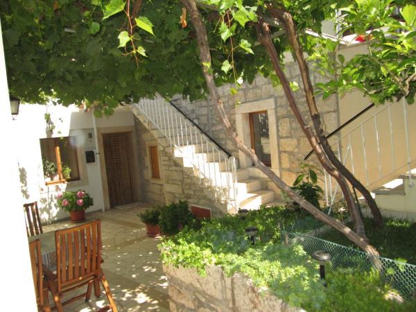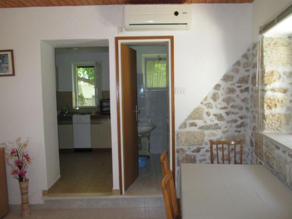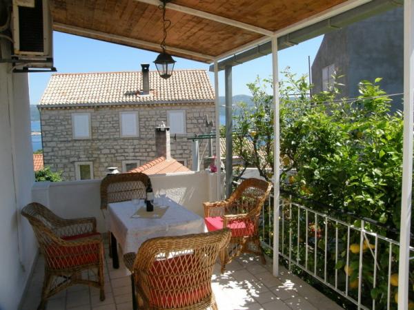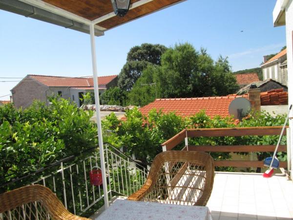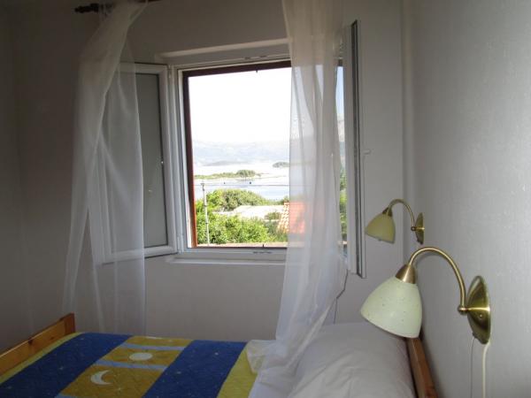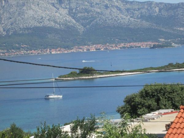 Vi er beliggende i en rolig del af Lumbarda på en bakke med udsigt over sandstranden var ked nærheden ligger en strand kaldet Przina. Til fods du et par minutter på stranden. Inden for 500 m fra stranden, restauranter, ATM, posthus, bus station, marina, udgangspunktet for udflugter til Dubrovnik, Mljet, Lastovo, Mostar .... Der er en port til vandfly den dag i sæsonen flere gange flyvninger til Split og Dubrovnik. Huset har en smuk have med citrustræer og græsplæne. Terrasser i gården, som er i skyggen af vinstokke. Lejlighederne er oven på hinanden, og et lille studie er op til dem.
