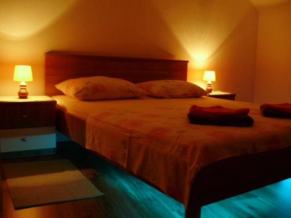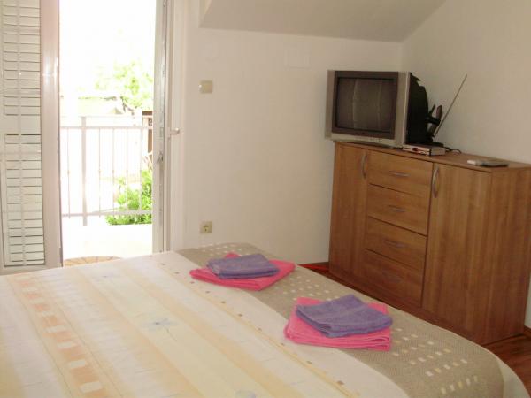 Vi tilbyder dig overnatning i en smuk og fredelig bugt i to lejligheder: Vores første lejlighed ligger på første sal i et familiehus, som ligger under et romantisk renæssance sommerhus. Der er en anden lejlighed i samme gårdhave. Der er parkering lige ved siden af huset, ligesom der er mulighed for at benytte garagen. Selve huset ligger langt fra hovedvejene, så du vil kunne nyde din ferie uhindret. Vi er 50 m fra sandstranden og 300 m fra byens centrum. Begge lejligheder har aircondition og trådløs internetadgang. Lejlighederne består af to (et) soveværelser (TV), badeværelse, køkken med spisestue og terrasse (ved A4 - 30 kvadratmeter) med havudsigt. Det er også muligt at bruge den udendørs grill ved siden af lejlighedens terrasse. På forespørgsel tillader vi kæledyr. VIDEO: Fra 1:23 - 1:58 kan du se Tatinja-bugten, hvor vi tilbyder overnatning, og selve huset på få sekunder med start fra 1:53.