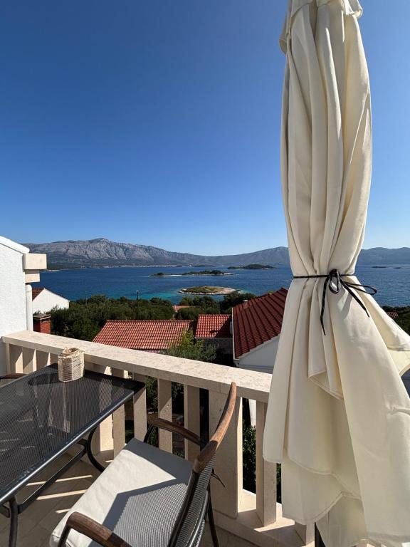 Beliggende på den østlige side af Lumbarda, tilbyder dette lejlighedshus et ideelt miljø for en afslappende ferie. Lumbarda er kendt for sine smukke sandstrande, og lejlighederne ligger kun 150-200 meter fra dem. Beliggende i en rolig og autentisk del af Lumbarda, tilbyder denne ejendom en perfekt kombination af privatliv og nærhed til alle nødvendige faciliteter. Den private parkeringsplads ved siden af bygningen og afstanden fra hovedvejene garanterer fuldstændig fred og komfort. Lejligheden på første sal tilbyder en fortryllende udsigt over det krystalklare hav, de omkringliggende holme og Pelješac-halvøen, hvilket gør hvert øjeblik af dit ophold uforglemmeligt. Lumbardas centrum med restauranter, caféer og butikker ligger kun 500 meter derfra, mens den gamle bydel i Korčula ligger 7 km derfra, ideel til dagsture. Busstoppestedet for transport til den gamle bydel i Korčula ligger kun 200 meter væk, hvilket gør det nemt at udforske de omkringliggende destinationer. Denne facilitet er perfekt placeret for alle dem, der ønsker at nyde Lumbardas naturlige skønhed, samtidig med at de har nem adgang til alle vigtige lokaliteter.