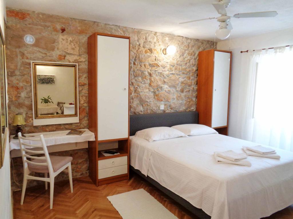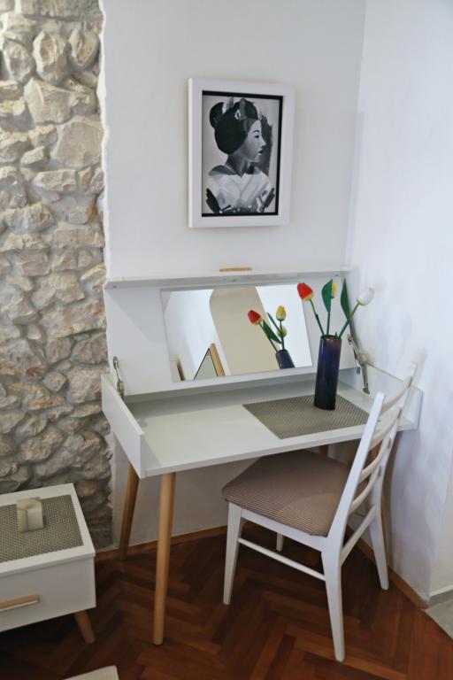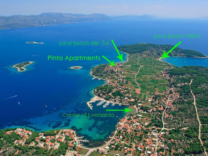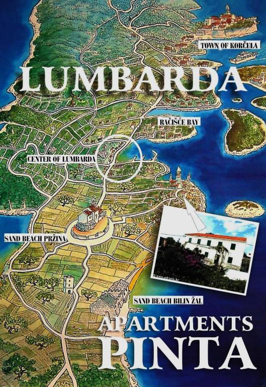 Apartments Pinta ligger i den gamle og rolige del af den lille by Lumbarda på øen Korčula. De ligger 5-10 minutters gang fra sandstrandene i Bilin žal og Pržina og 10 minutter fra centrum af Lumbarda. Vores familie har en lang tradition for at gøre rejsende glade. I 1928 åbnede vores forfædre det første pensionat i Lumbarda under navnet PINTA. I 1980'erne blev huset omdannet til lejligheder, og i 2012 blev huset totalrenoveret, hvilket fik det gamle byggeris skønhed frem. De disponible kapaciteter og store terrasser, med tilslutning i ét hus, repræsenterer muligheden for en fælles ferie for en større gruppe gæster, der samtidig har deres egen komfort i hver lejlighed. Til din rådighed: Lejligheder for to - beliggende på første sal (med en stor terrasse), Lejlighed for fem - stueetage og første sal i huset (terrasse og balkon); Lejlighed til fire - på første sal med egen stor altan.