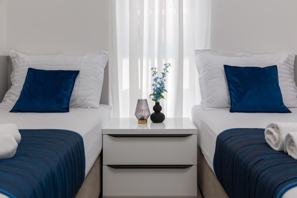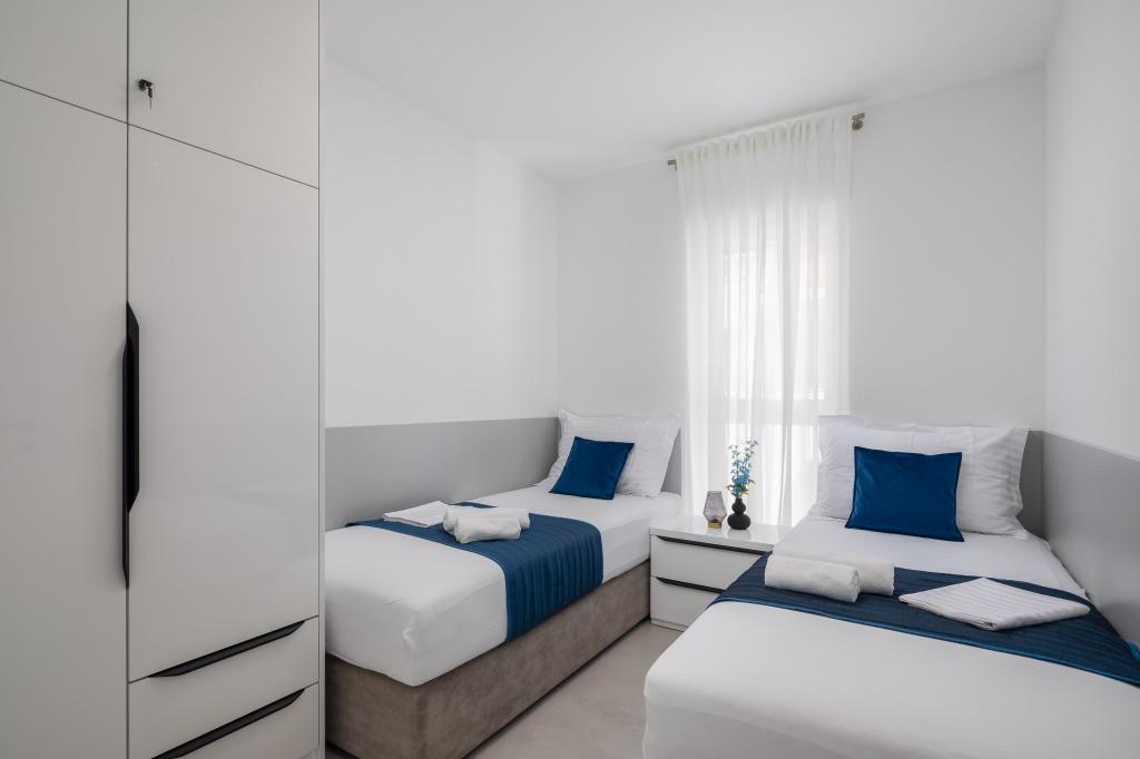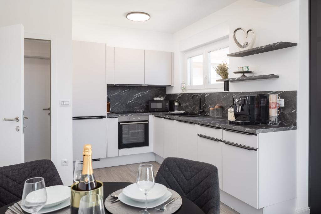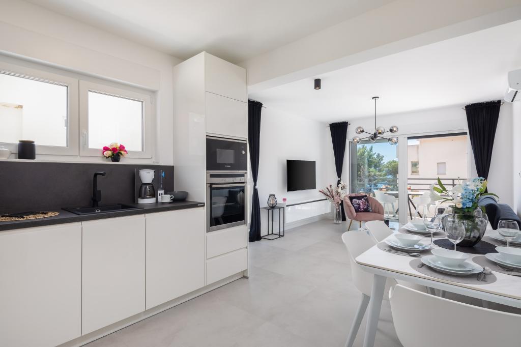 Apartment Edvina ligger 500 meter fra stranden. Det giver gæsterne nem adgang til den smukke Adriaterhavskyst, samtidig med at det giver et komfortabelt og moderne opholdsrum. Lejligheden har to soveværelser, hver omhyggeligt designet til at sikre et fredeligt og behageligt ophold. Soveværelserne er udstyret med komfortable senge. Balkonen byder på en smuk udsigt over havet og byen. Parkeringspladsen ligger ved siden af bygningen.