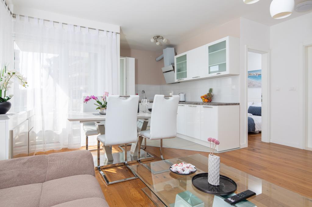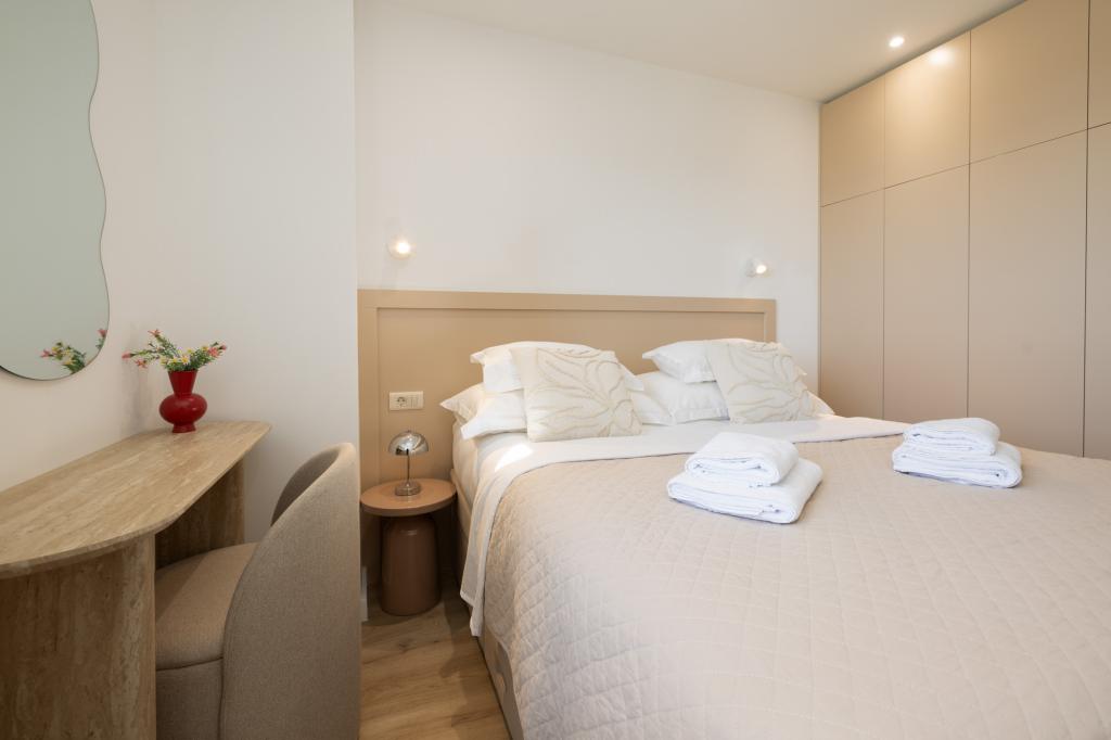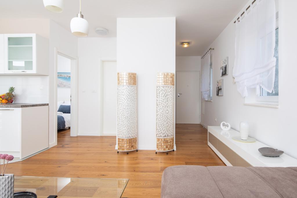 Lejlighederne Lana ligger 800 m fra stranden og havet, og centrum ligger også 800 m væk. De består af 1 soveværelse, moderne køkken og balkon med delvis havudsigt. I stuen er der en sovesofa med plads til 2 personer.