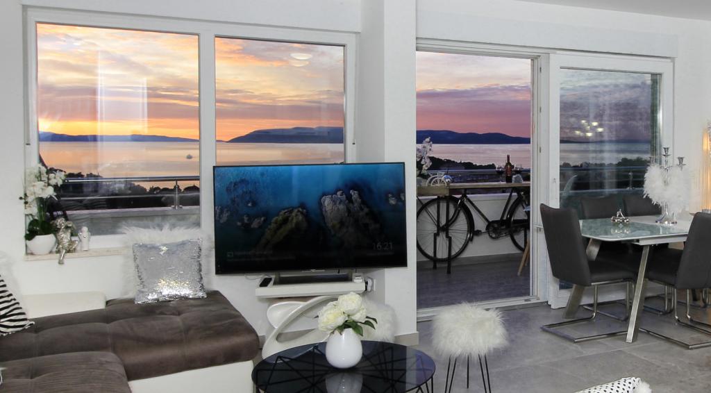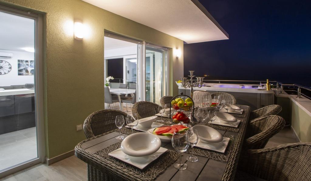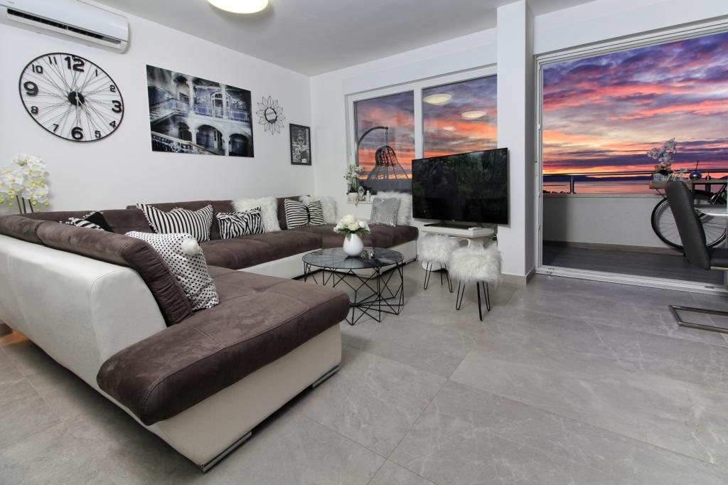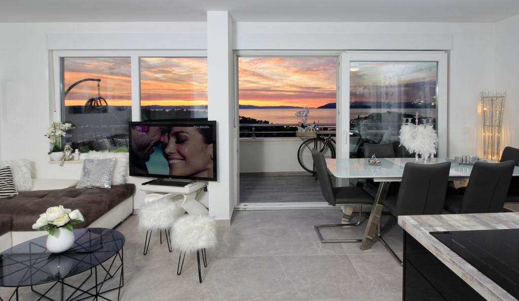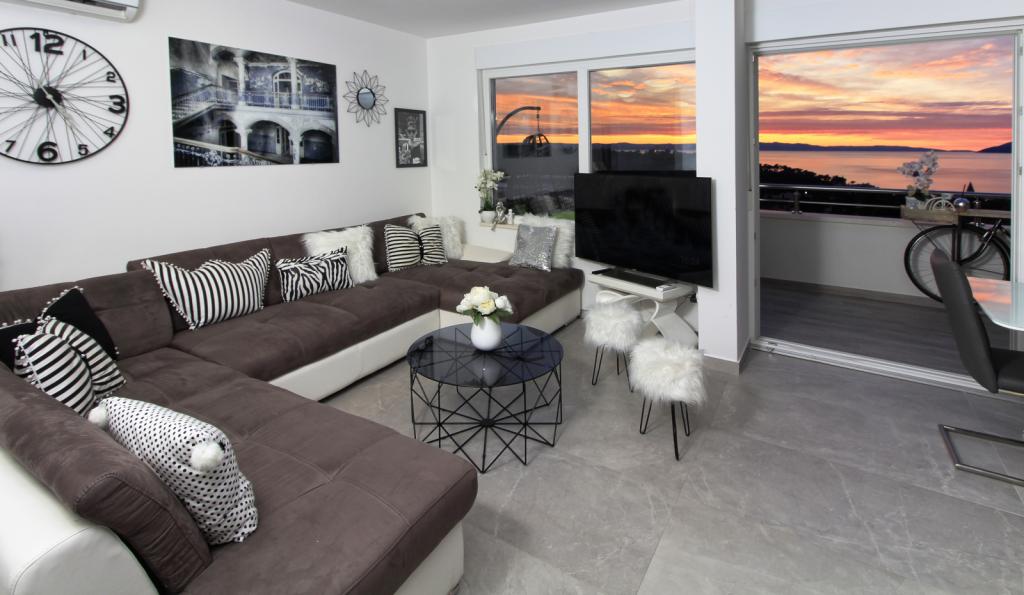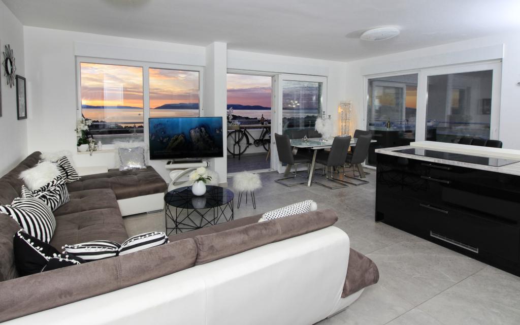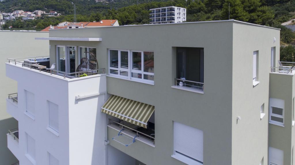Luksus penthouse med privat jacuzzi / hav, udsigt over byen og øen Det splinternye, klimatiserede penthouse på 125 m2 indeholder 3 soveværelser, hvert værelse har balkon, to badeværelser med vaskemaskine, privat stort jacuzzi (5 1) på terrassen med udsigt over havet, fladskærms TV 55, 4K SMART TV, spisestue med køkken med vaskemaskine og komplet køkkenudstyr, adgang til en stor terrasse, med udemøbler og jacuzzi. Der tilbydes gratis parkering på stedet Lejligheden er ideel til en familieferie i Makarska, grupper til venners ferier samt til en aktiv ferie på Makarska Riviera. Makarska er et af de mest berømte turistcentre i Dalmatien (organiseret turisme har udviklet sig siden 60'erne) og en af de mest maleriske små byer på Adriaterhavet, med mange karakteristiske smalle gader i den gamle bydel. Det er også kendt for sine kilometer med småstenstrande og tæt på Biokovo Nature Park, der tilbyder vandreture, forskellige udflugter og aktiviteter med smuk panoramaudsigt over byen, øer, Italien ... Hvis du har yderligere spørgsmål, er du velkommen til at kontakte os. Vi ønsker dig en varm velkomst og et behageligt ophold i vores lejlighed