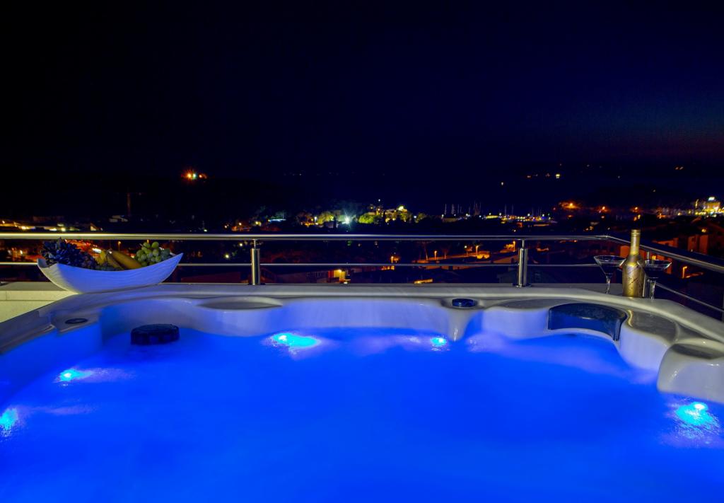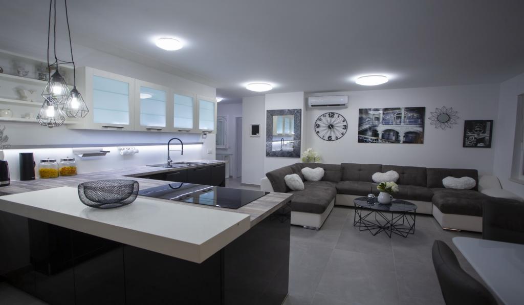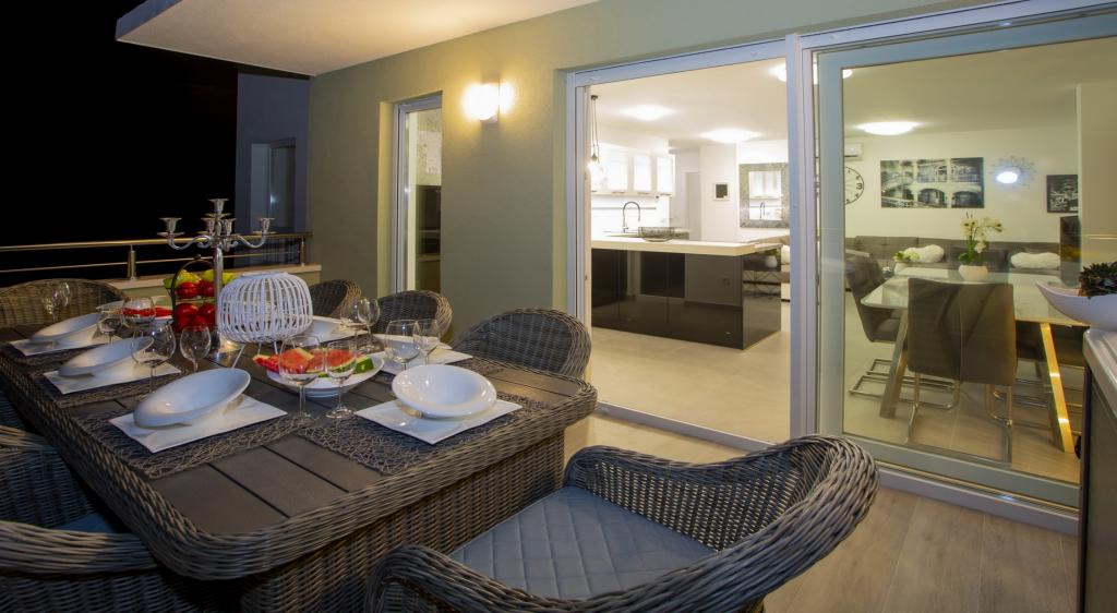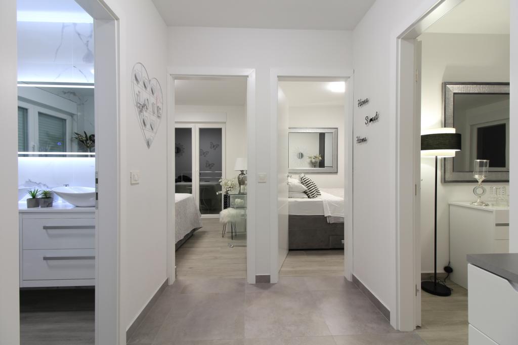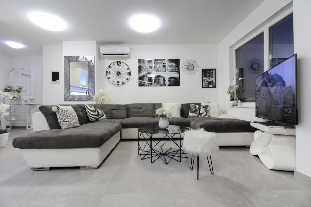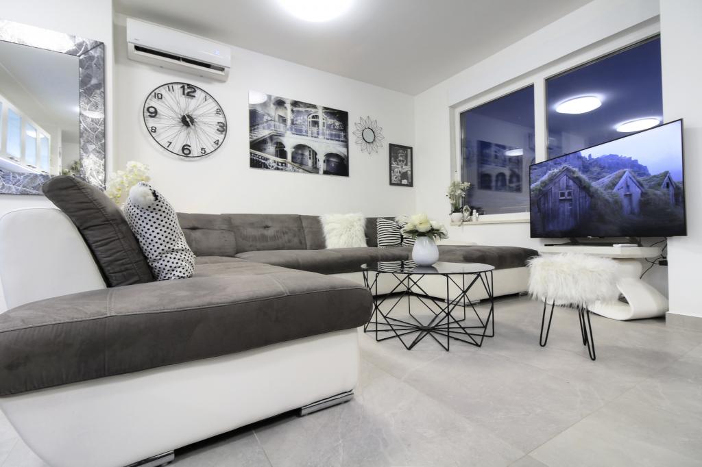 Luksus penthouse med privat jacuzzi / hav, udsigt over byen og øen Det splinternye, klimatiserede penthouse på 125 m2 indeholder 3 soveværelser, hvert værelse har balkon, to badeværelser med vaskemaskine, privat stort jacuzzi (5 1) på terrassen med udsigt over havet, fladskærms TV 55, 4K SMART TV, spisestue med køkken med vaskemaskine og komplet køkkenudstyr, adgang til en stor terrasse, med udemøbler og jacuzzi. Der tilbydes gratis parkering på stedet Lejligheden er ideel til en familieferie i Makarska, grupper til venners ferier samt til en aktiv ferie på Makarska Riviera. Makarska er et af de mest berømte turistcentre i Dalmatien (organiseret turisme har udviklet sig siden 60'erne) og en af de mest maleriske små byer på Adriaterhavet, med mange karakteristiske smalle gader i den gamle bydel. Det er også kendt for sine kilometer med småstenstrande og tæt på Biokovo Nature Park, der tilbyder vandreture, forskellige udflugter og aktiviteter med smuk panoramaudsigt over byen, øer, Italien ... Hvis du har yderligere spørgsmål, er du velkommen til at kontakte os. Vi ønsker dig en varm velkomst og et behageligt ophold i vores lejlighed