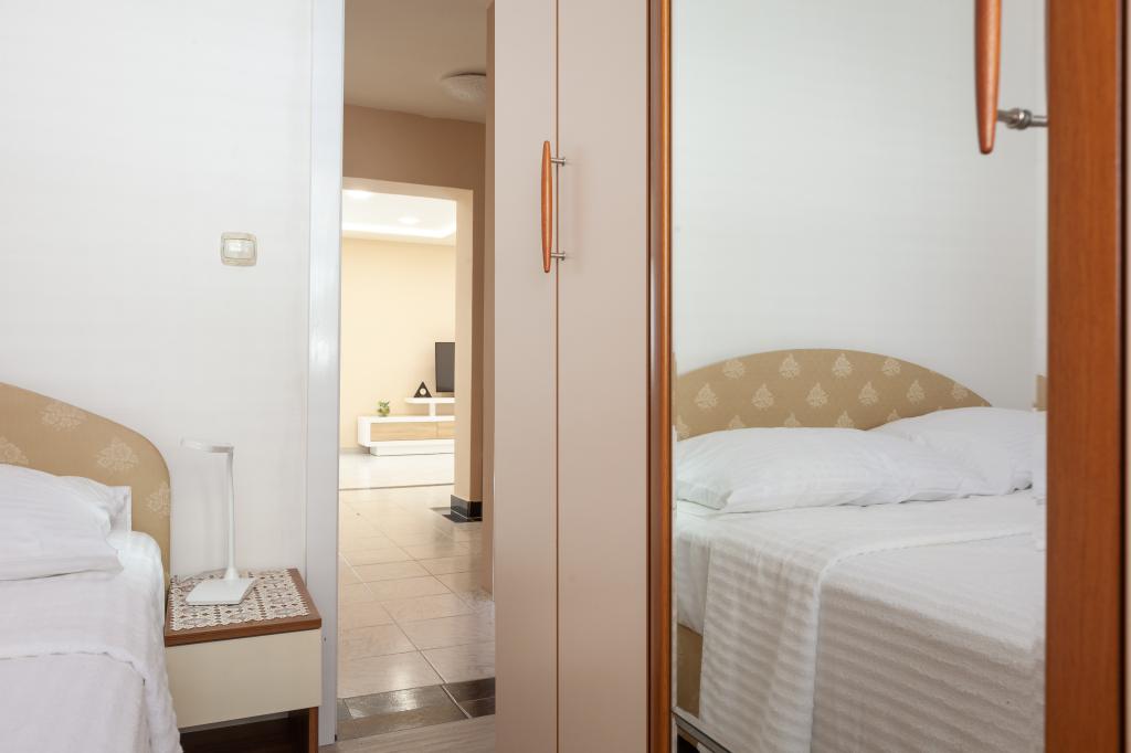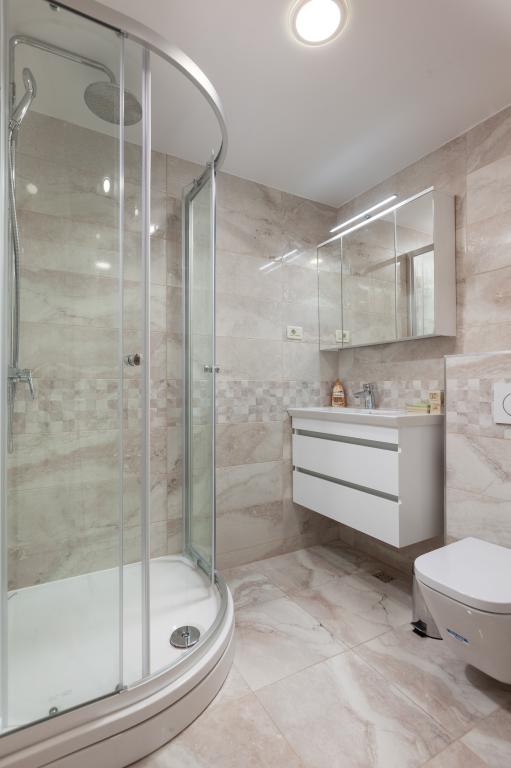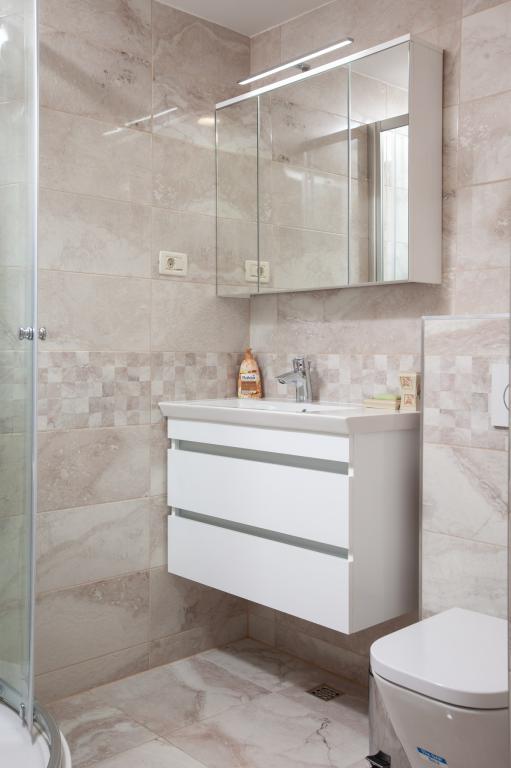 Anlægget ligger 15 minutters gang fra byens centrum. Restauranter, caféer og butikker er i nærheden. Denne toværelses lejlighed er velegnet til 8 personer. Lejligheden har udsigt over havet og byen. Der er gratis parkering på stedet.