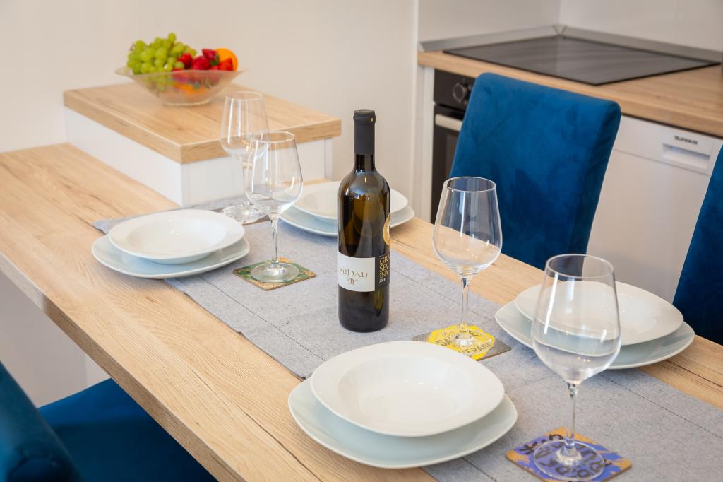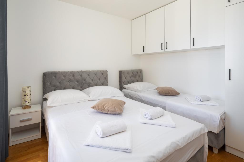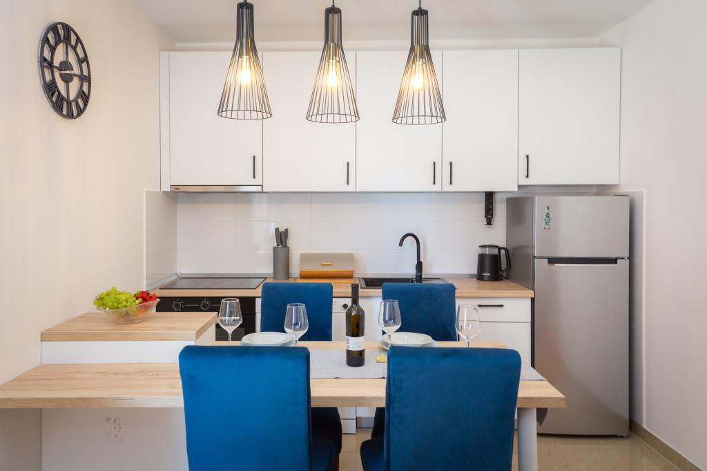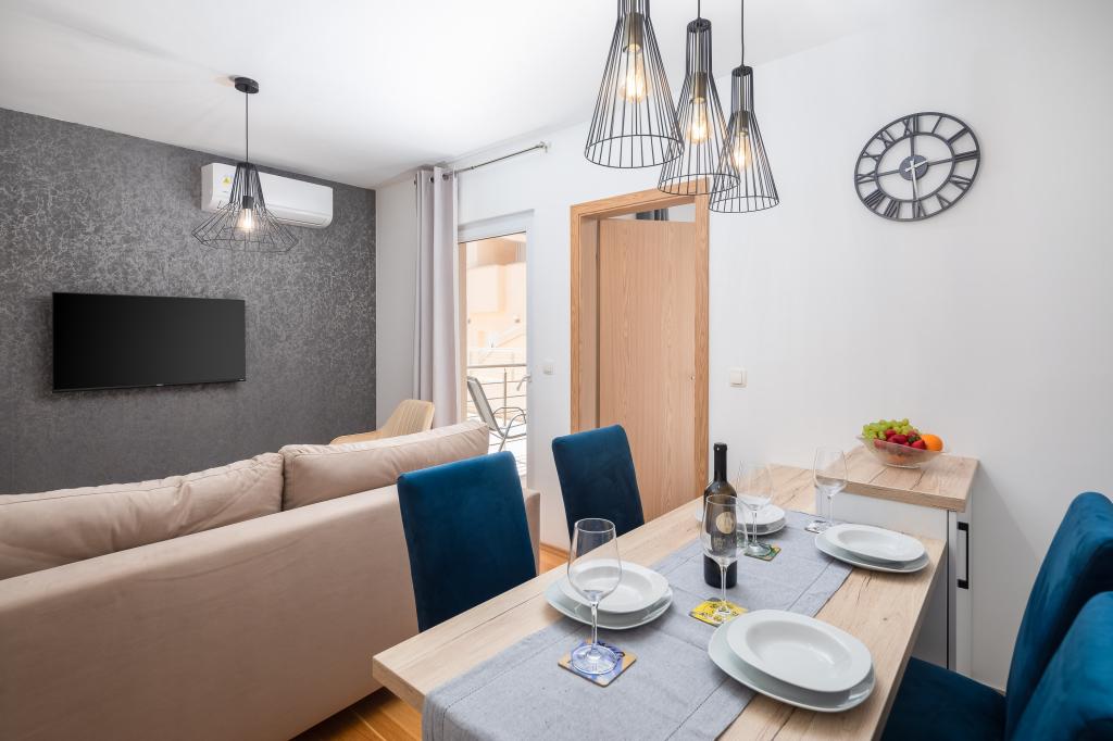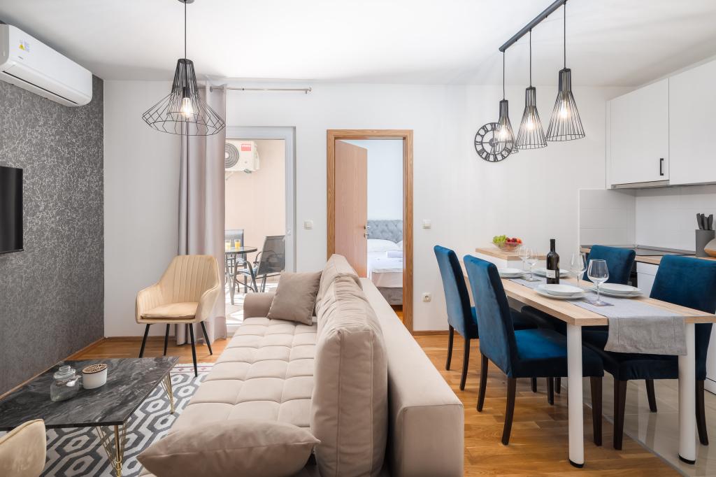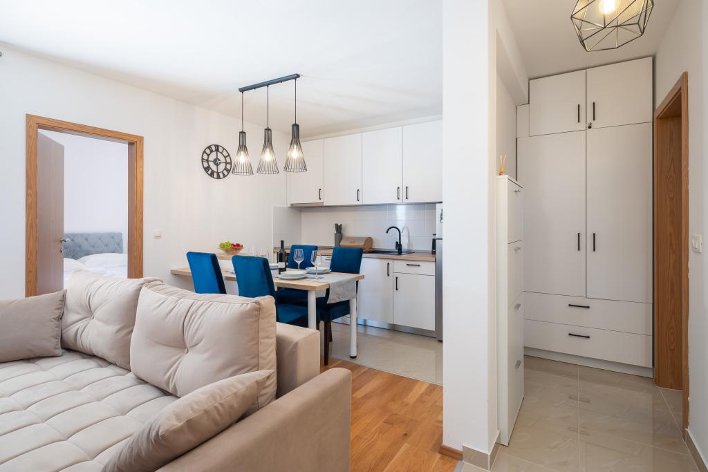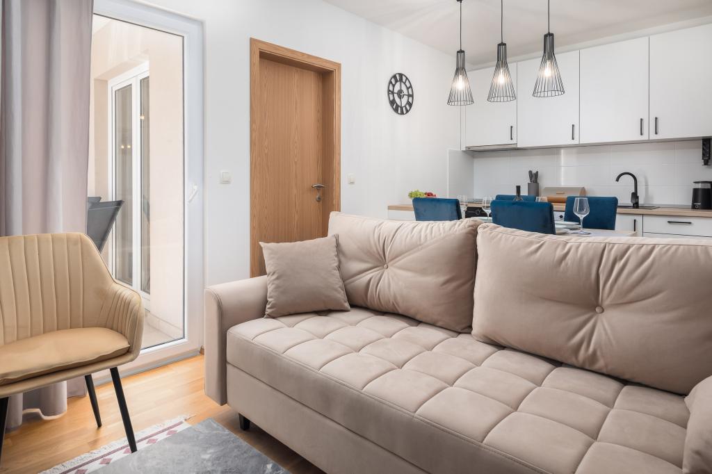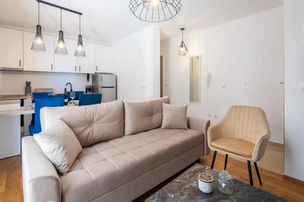 Nyd charmen ved den elegante lejlighed Noa i Makarska. Med et smart layout på 40m² tilbyder denne lejlighed et soveværelse til 3 personer, et badeværelse, en stue med en sovesofa og en balkon til afslapning. Tilbuddet inkluderer også en parkeringsplads.