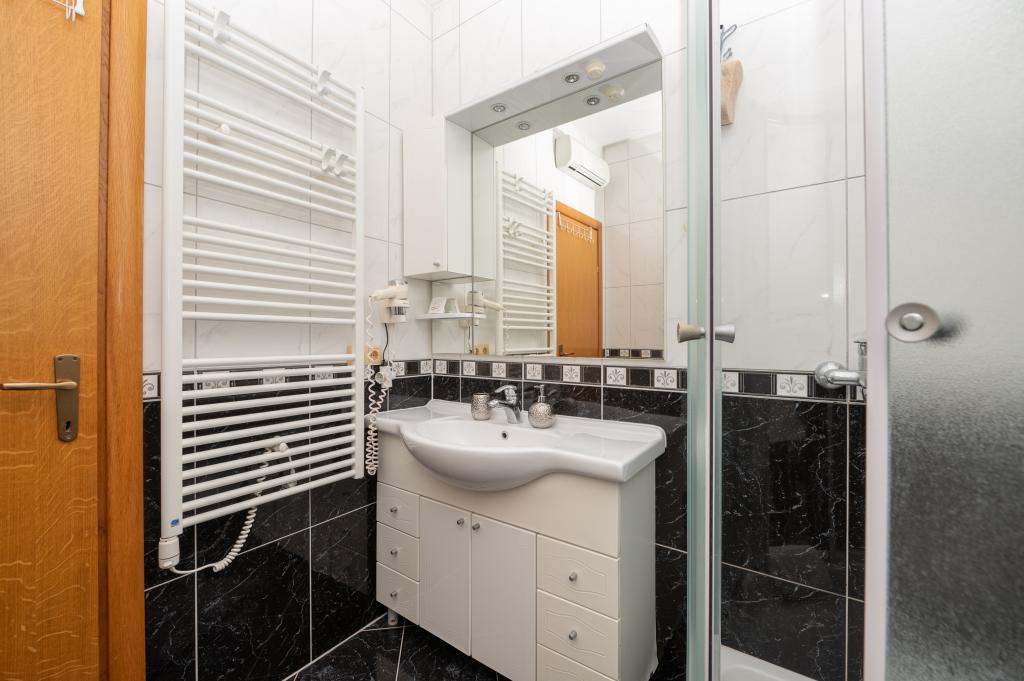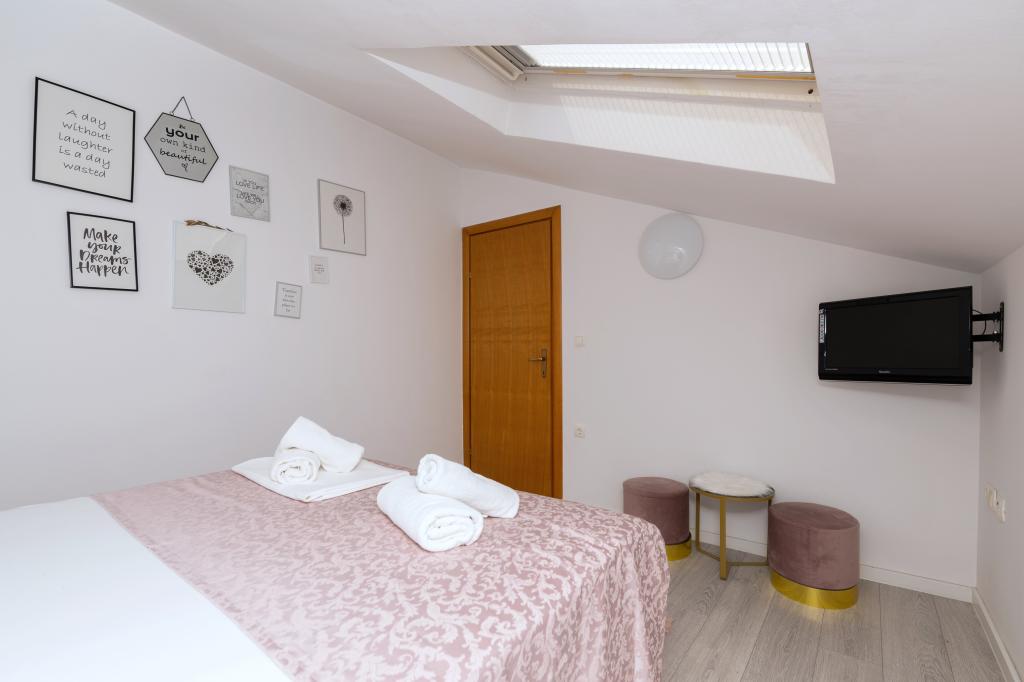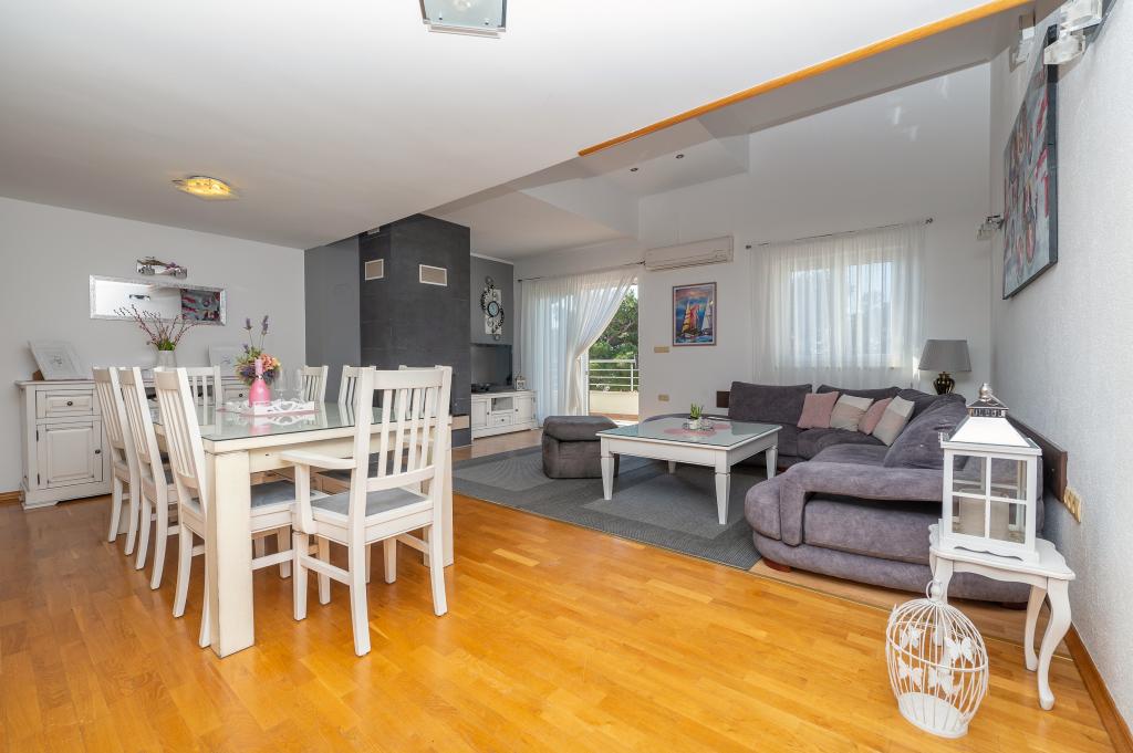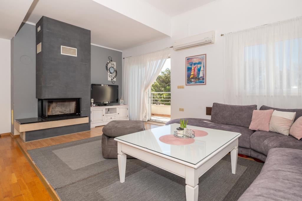 Velkommen til Villa Danijela, med 4 soveværelser, 2 badeværelser og en stor balkon, pladsen er ideel til familier. Nyd bekvemmeligheden ved et fuldt udstyret køkken og komforten med moderne faciliteter. Der er 2 gratis parkeringspladser foran bygningen. Book nu for en afslappende ferie ved kysten!