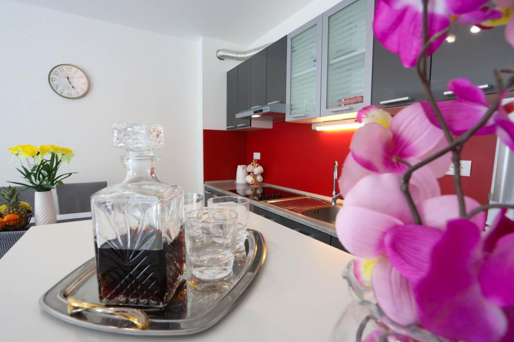 Vi tilbyder en velkomstdrink til alle gæster. Til gæster, der bor i vores lejlighed i mindst 5 nætter, giver vi dem, hvis de ønsker det, billetter til færgen, til en tur til øen Brač, med afgang fra Makarska.