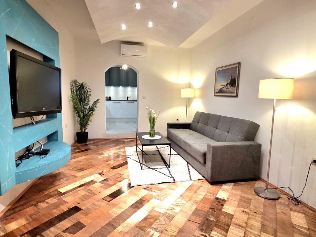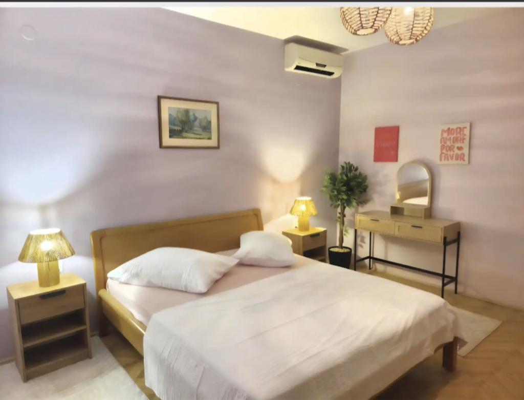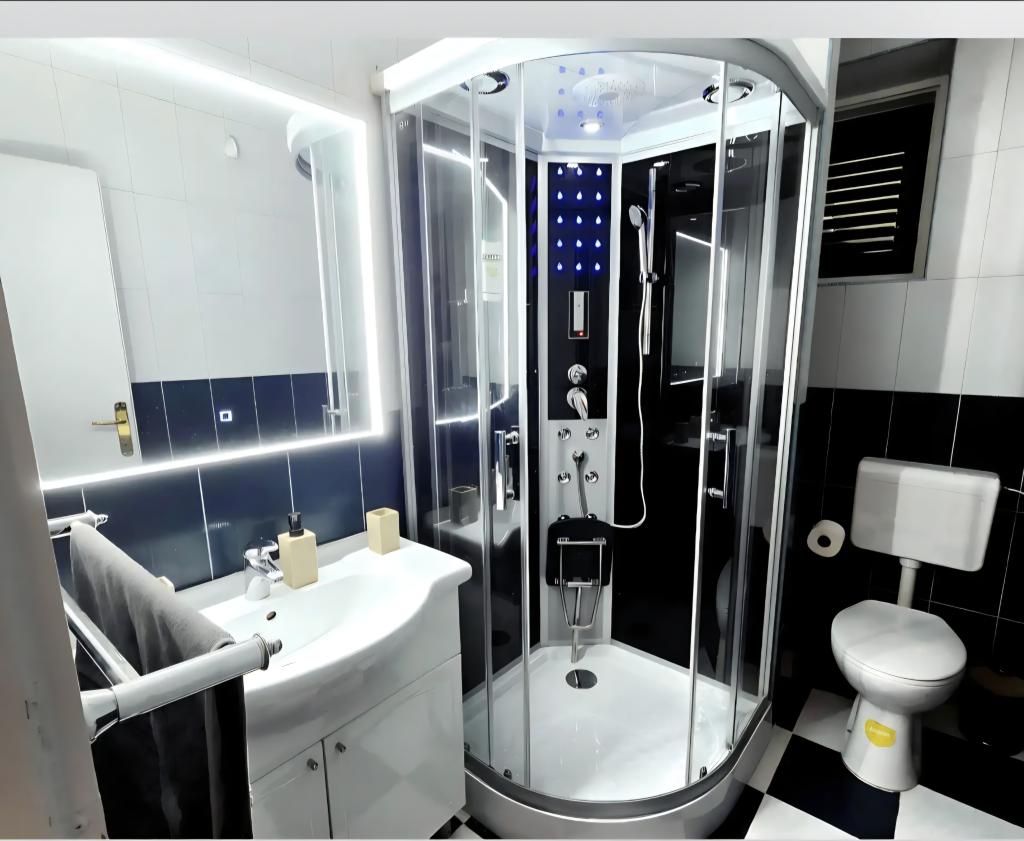 Lejlighed Robert ligger 400 m over den gamle bydel. Den har et areal på 120 m2 og består af to soveværelser, to badeværelser, en stue og et køkken. Foran lejligheden er der jacuzzi, tv, bord med bænke, grill, swimmingpool med liggestole og bruser samt privat parkering til din bil. Velkommen!