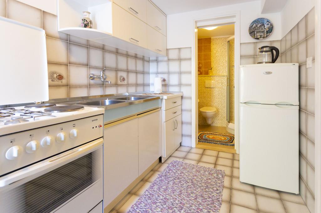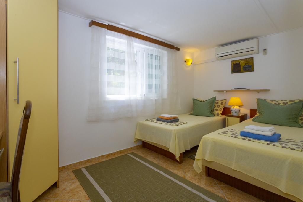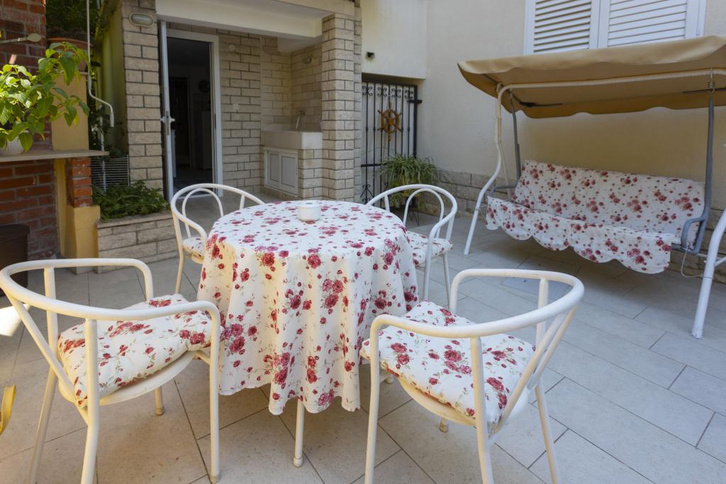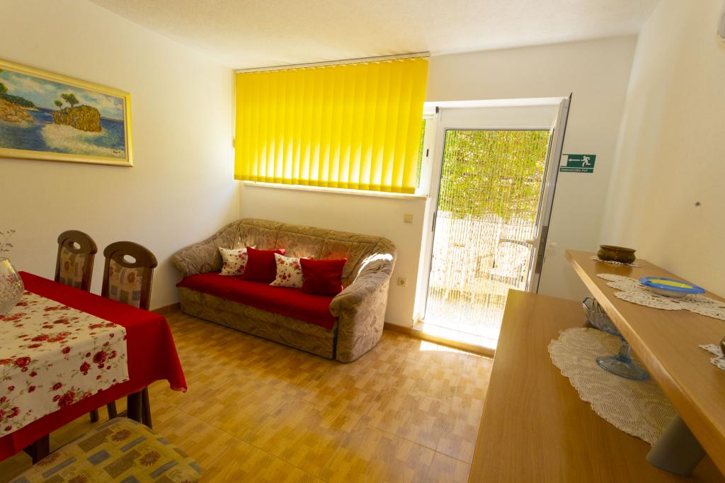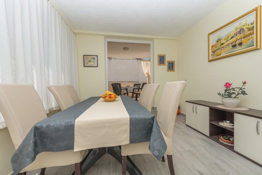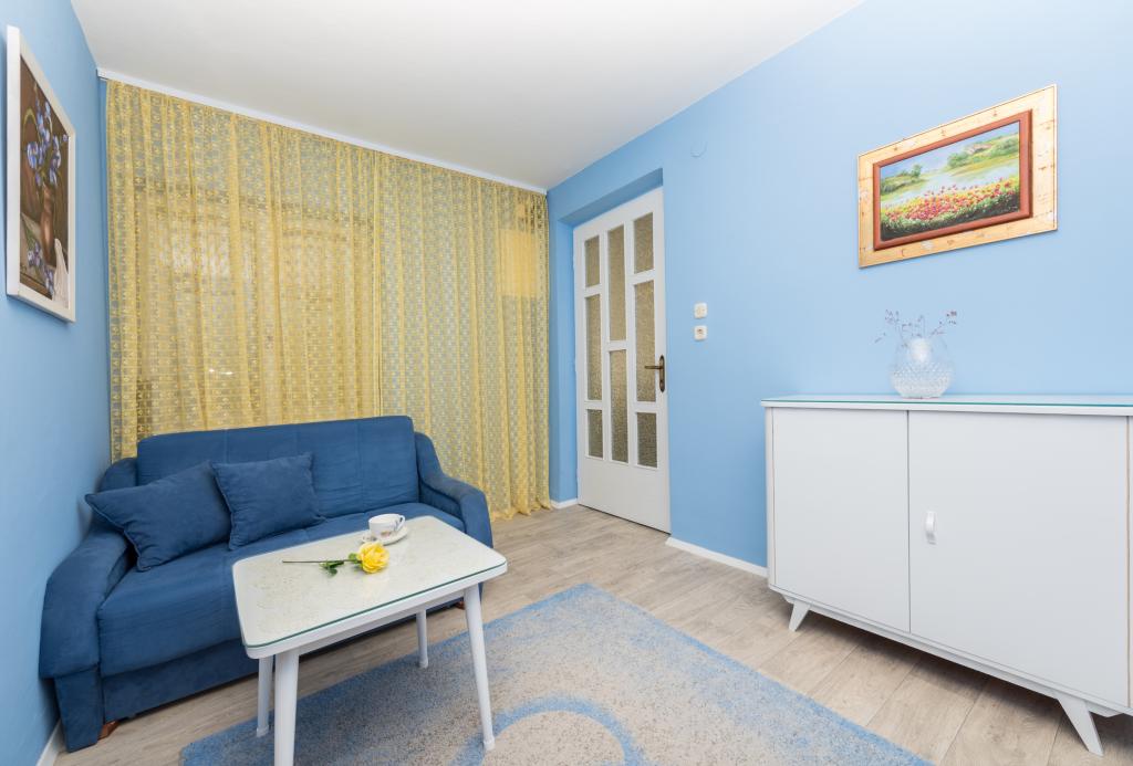 Stor lejlighed, pæn, udstyret med alt hvad du behøver. Tæt på stranden, kun 3 minutter. Det har en lille have, der udelukkende er forbundet til denne lejlighed. Velegnet til 4 voksne. Fru Marica er meget venlig, imødekommende og diskret. Restauranter og butikker er også i nærheden. Stor anbefaling.
