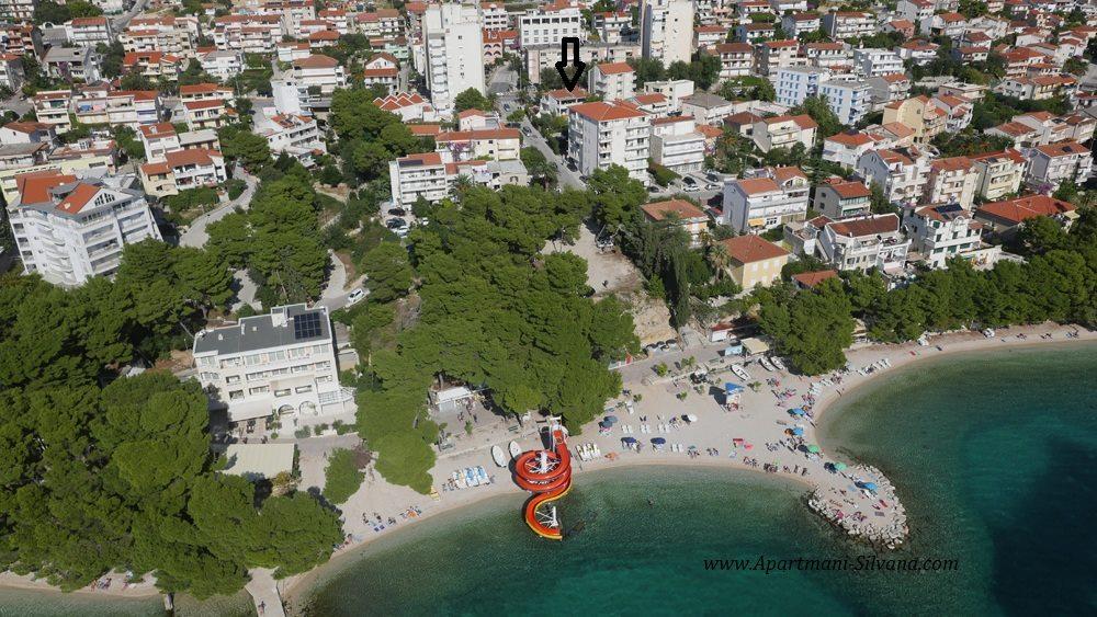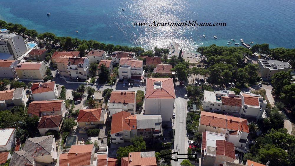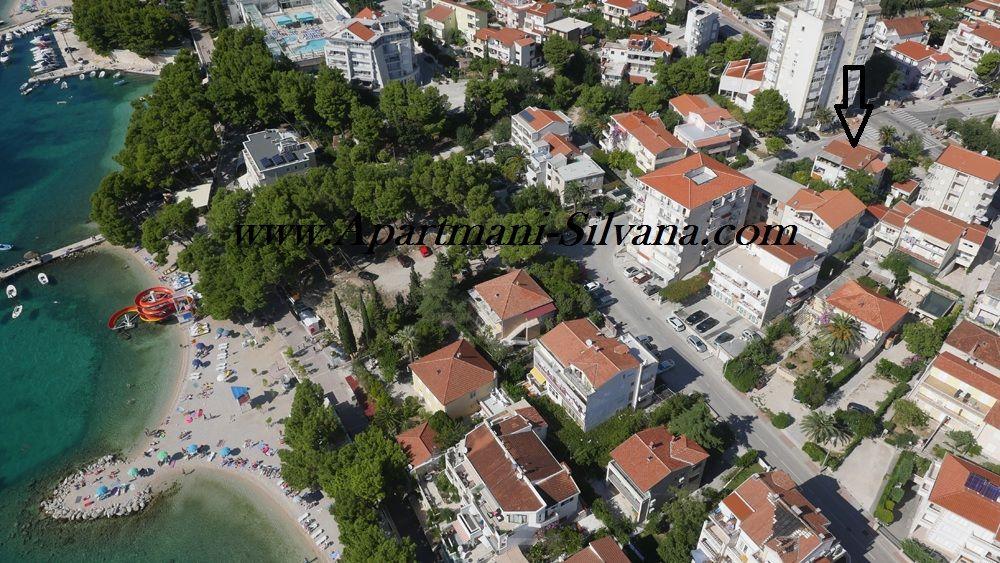 Apartments "Silvana" (fire lejligheder og et studie) er beliggende i centrum af Makarska, kun 80 meter fra byens sandstrand, som er gratis at få adgang til. Alle vores lejligheder er udstyret med køkken, spisestue, trådløst internet, satellit-tv og balkon, det vil sige en terrasse, en gård under dalmatiske træers kroner og med duften af middelhavsurter. Alle lejligheder er udstyret med centralvarme og aircondition. De er også velegnede til vinterturisme. Vandet i huset ved alle haner er drikkeligt. Alle lejligheder har privat parkering. App 4+2, 2 x App 2+2, App 4+ 1 og Studio er blevet totalrenoveret og indrettet med nyt udstyr.