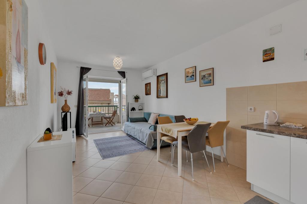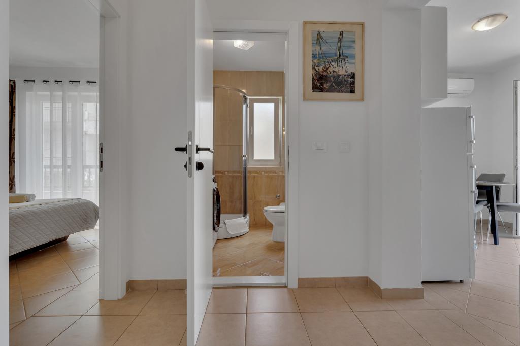 Det, der er vigtigst for mig med børn, er en ren lejlighed, og det var fremragende her. Vi blev mødt af en duftende og meget venligt forberedt lejlighed. Ana er en meget gæstfri person, og hun gjorde børnene glade med det samme med slik og frisk kølet frugt. Stranden ligger kun 2-3 minutters gang væk, og alt er i nærheden, fra et lille marked, bageri til dagligvarebutikker. Parkeringspladsen er overdækket med grønt, så bilen også er beskyttet mod solen under dit ophold. Vi anbefaler stærkt Apartments Vanda for et dejligt og behageligt ophold i Makarska.