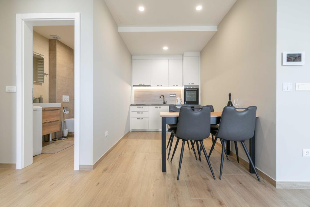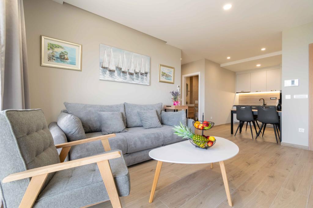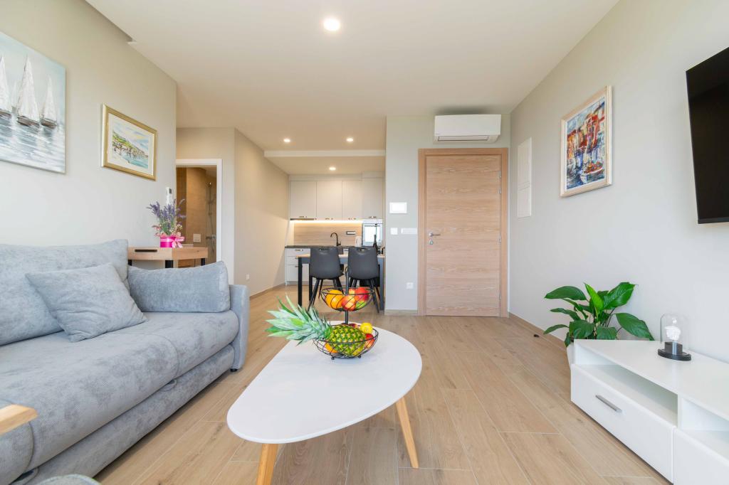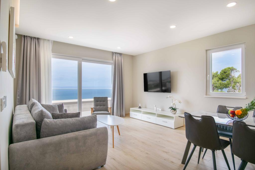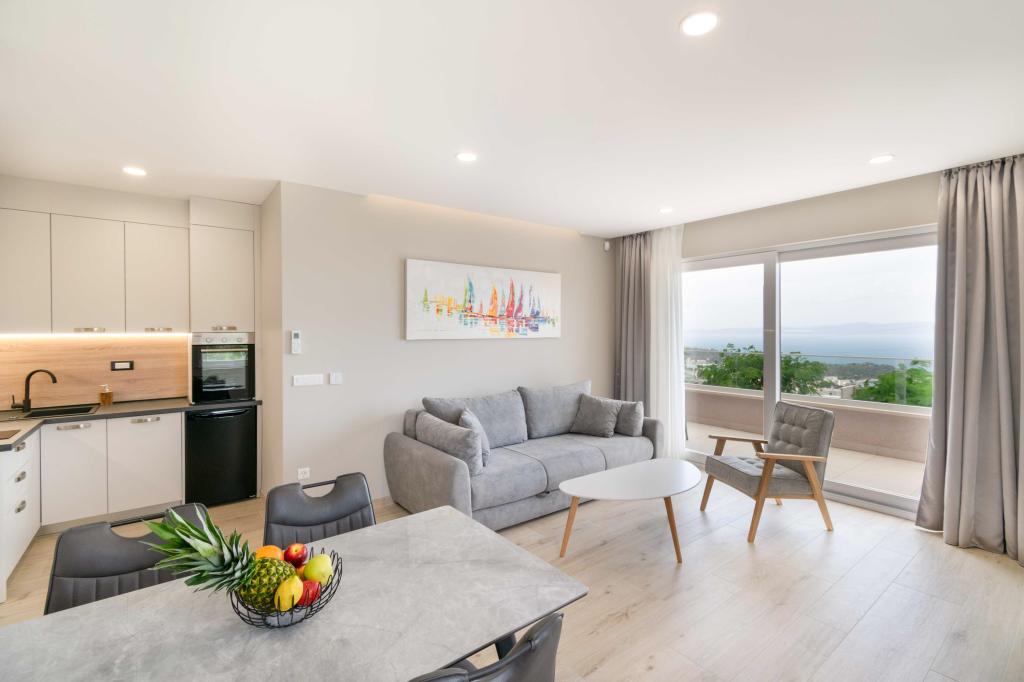 Moderne 2+2 lejligheder med havudsigt i Makarska Moderne lejlighed på 50m². 1 soveværelse, 1 badeværelse, fuldt udstyret køkken. Smuk udsigt over havet. Til lejlighederne hører parkeringsplads foran bygningen. Arranger en fremvisning i dag og gør denne lejlighed til dit nye hjem.