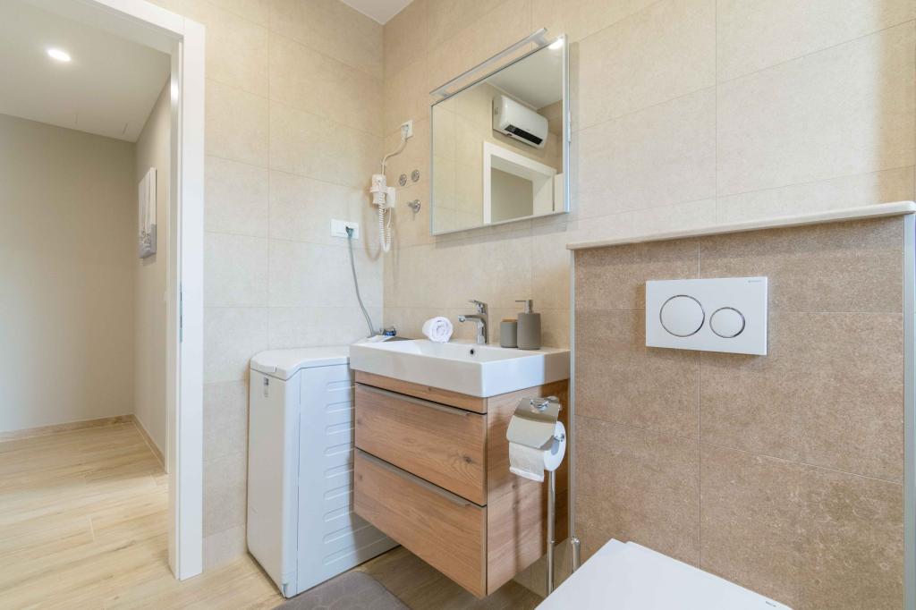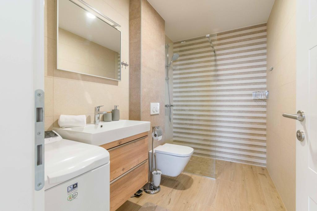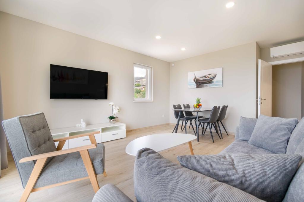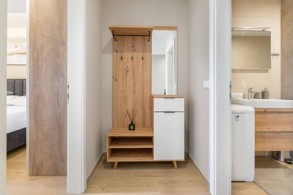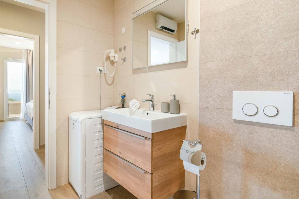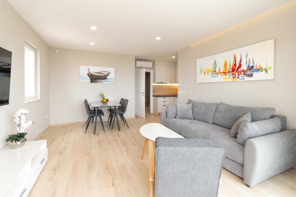 Moderne 2+2 lejligheder med havudsigt i Makarska Moderne lejlighed på 50m². 1 soveværelse, 1 badeværelse, fuldt udstyret køkken. Smuk udsigt over havet. Til lejlighederne hører parkeringsplads foran bygningen. Arranger en fremvisning i dag og gør denne lejlighed til dit nye hjem.