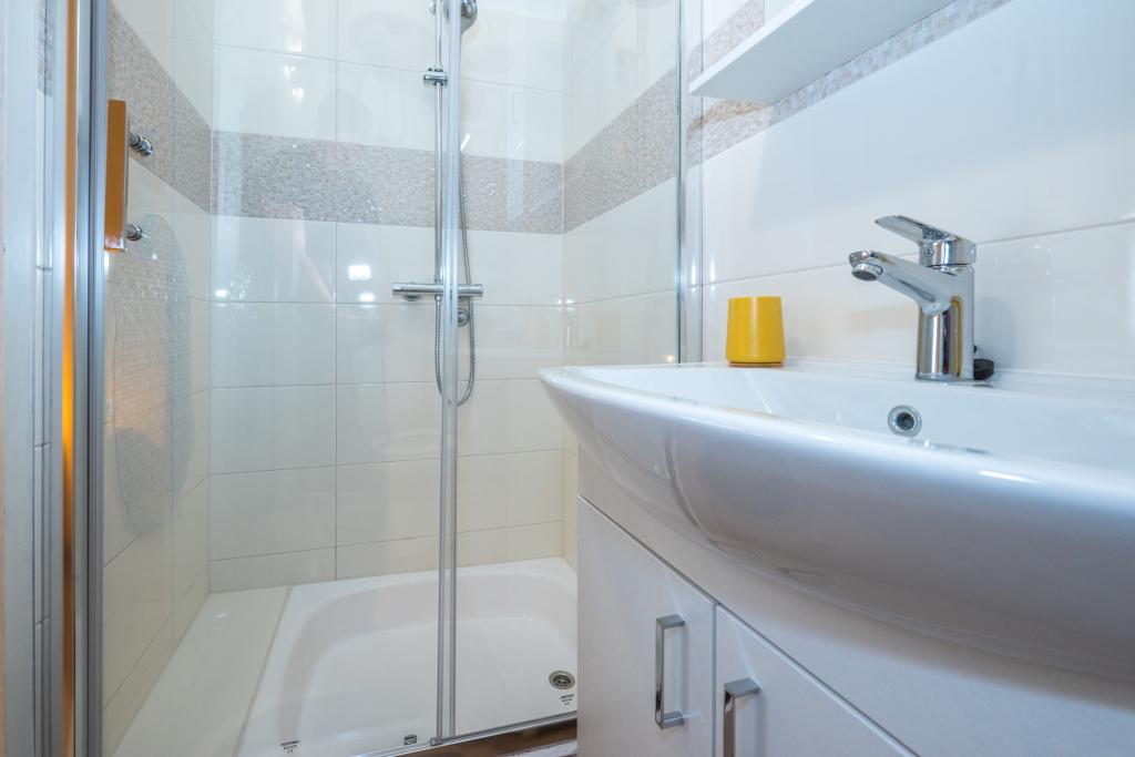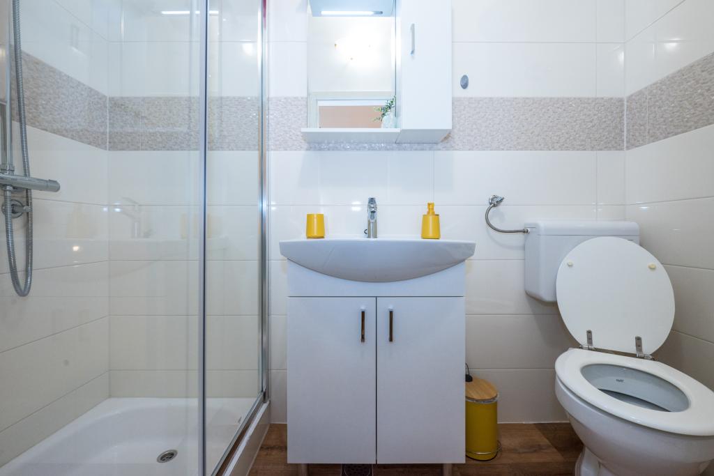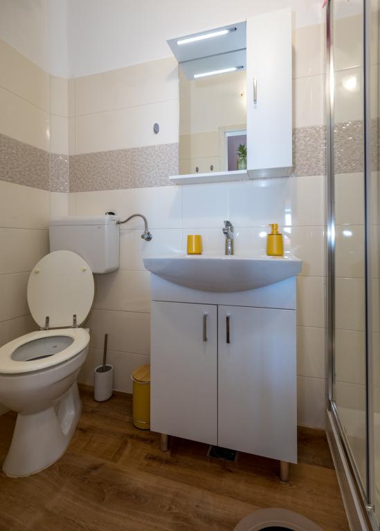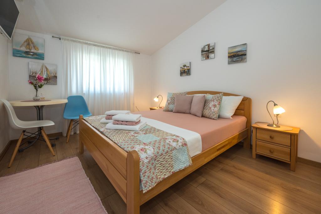 Værelserne er pæne, moderne og veludstyrede og ligger på anden sal i et familiehus, foran hvilket der er en gårdhave til parkering af gæsternes biler. Selve huset ligger i en smuk og meget turistisk del af Makarska, cirka 90 m fra bystranden, og inden for 200 m af dette område ligger der 8 hoteller. Værten har mange års erfaring i turistbranchen. I en afstand af 500 m fra huset ligger et tenniscenter og et vandland, 800 m fra byens største bypark med sports- og fritidsfaciliteter, og 1000 m fra begyndelsen af byens centrum. 100 m fra er der et dykkercenter, og i samme afstand ligger Biokovka Hotel, som tilbyder indendørs swimmingpools, saunaer, fitnesscentre, fysioterapi og massage. Nærliggende attraktioner inkluderer byens Shell Museum, Biokovo Naturpark med den berømte Skywalk, den Røde og Blå Sø i Imotski, turistbådture til øen og byen Korčula samt den berømte Zlatni Rat-strand på øen Brač.