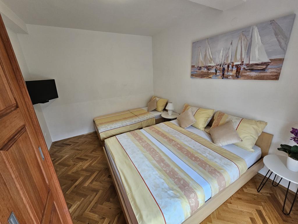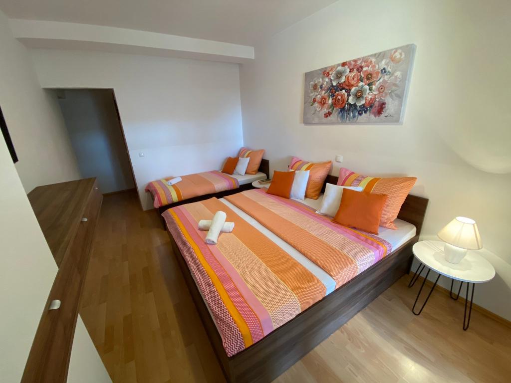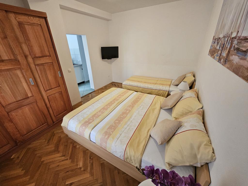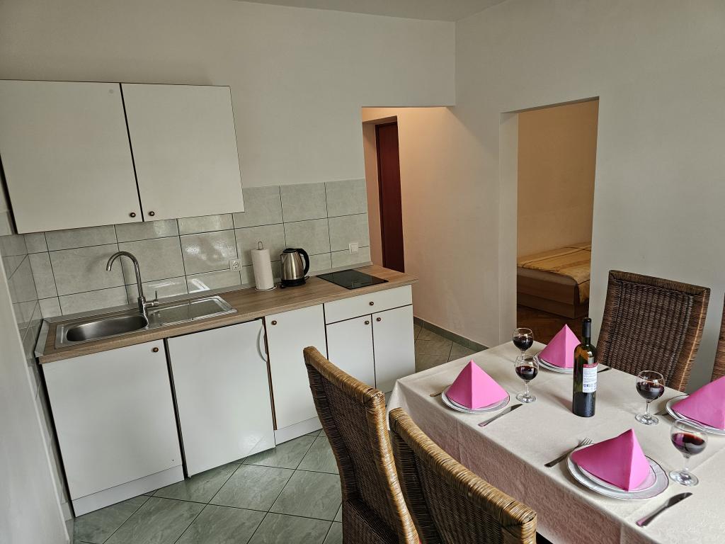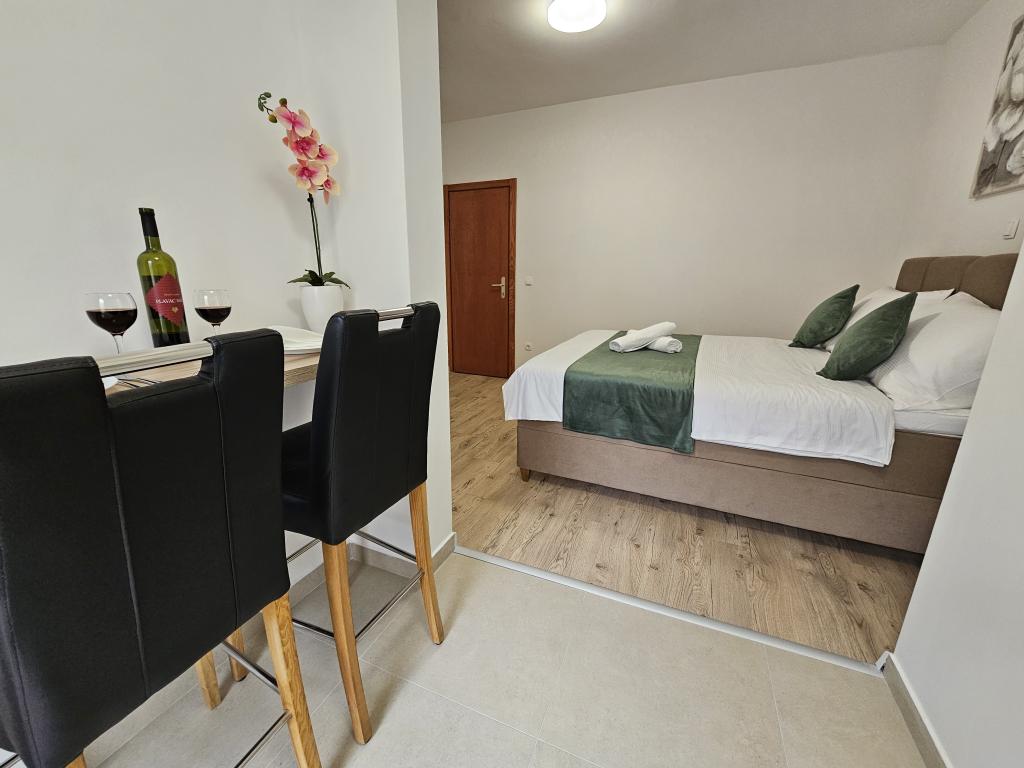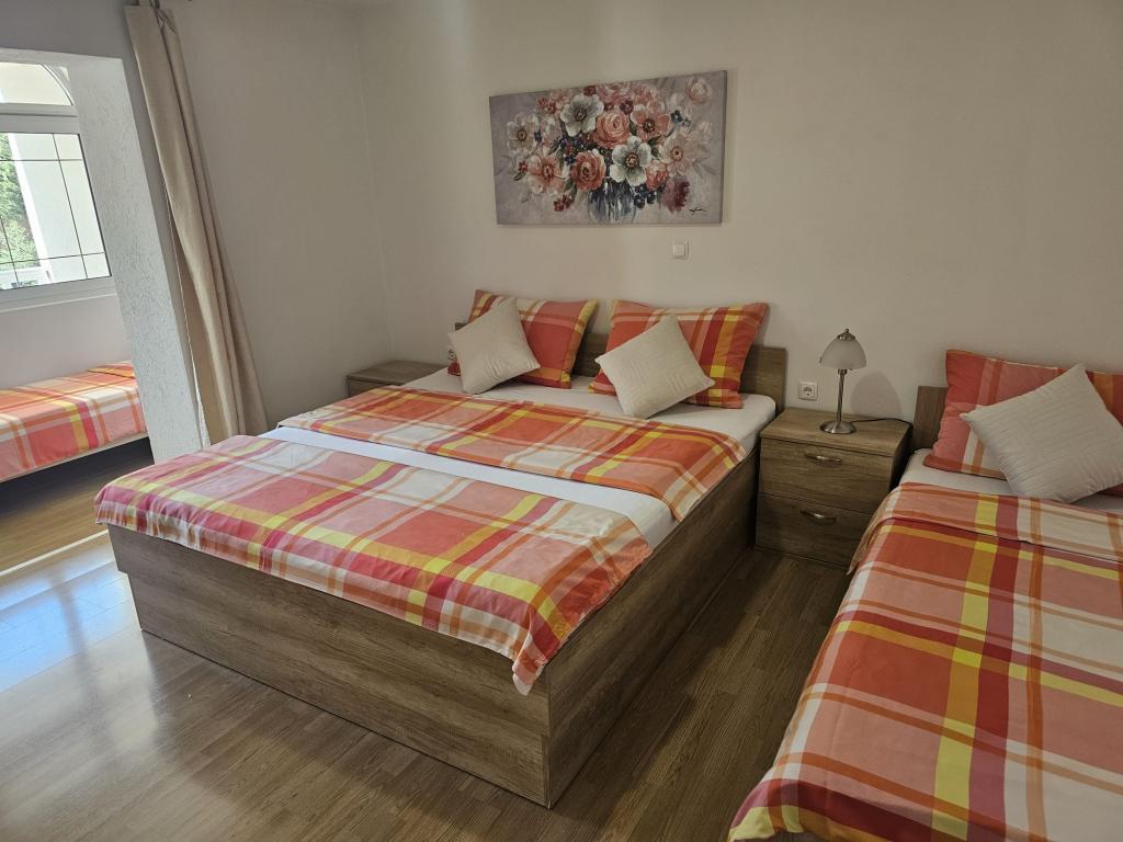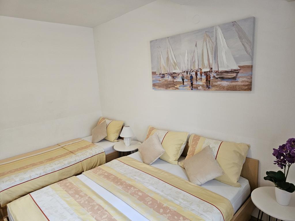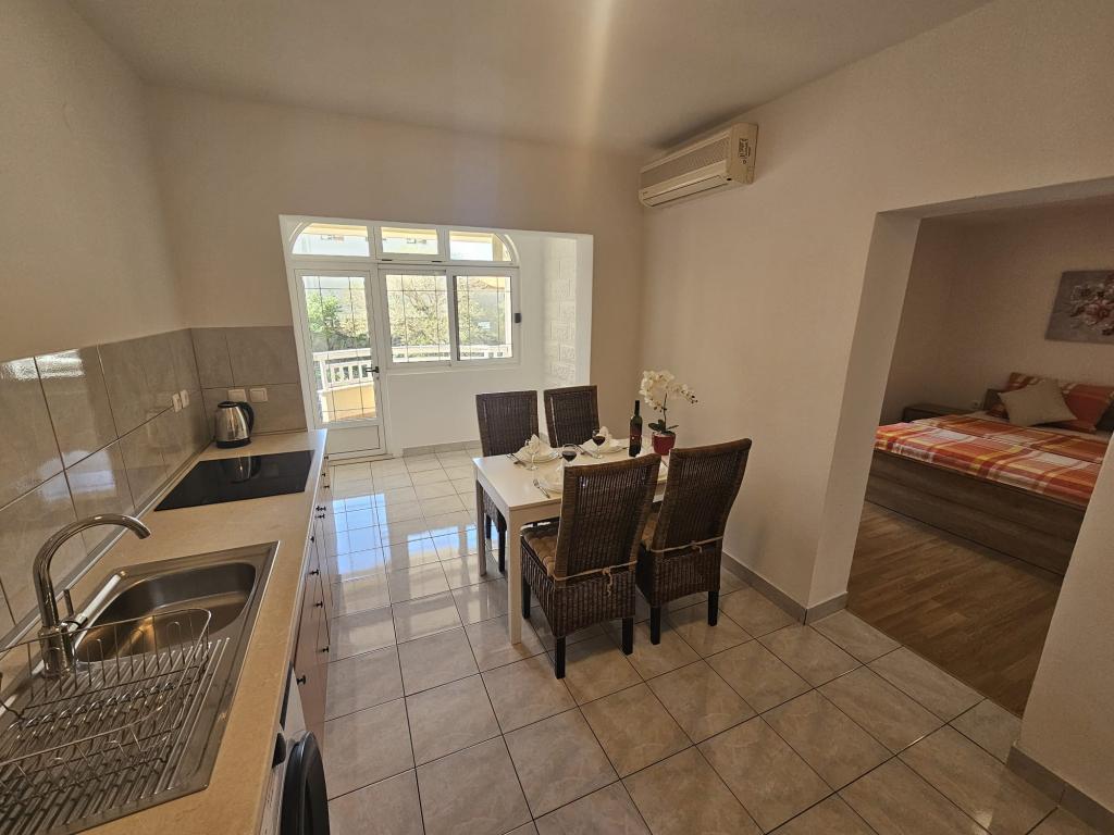 Apartments Kovač er moderne udstyrede lejligheder beliggende i hjertet af byen Makarska. Byens strand ligger 250 meter væk (mindre end 5 minutter til fods), og du kan nå byens centrum på mindre end 15 minutter, gå langs den smukke promenade langs, efter vores mening, den smukkeste strand i verden. Restauranter, et bageri og et apotek er inden for rækkevidde, og den nærmeste butik til daglige indkøb ligger kun 50 meter fra lejligheden. Hver lejlighed har sit eget badeværelse, fuldt udstyret køkken, balkon, aircondition og alle de nødvendige faciliteter for at få vores gæster til at føle sig hjemme. På nordsiden af huset er der et garageanlæg, så hver gæst er sikret en gratis overdækket parkeringsplads, hvorfra de til enhver tid frit kan komme ind og ud. Hele familien har været involveret i turisme og udlejning i mange år, og vi håber at få muligheden for at være vært for jer i vores anlæg, hvor I ankommer som gæster og tager afsted som venner.