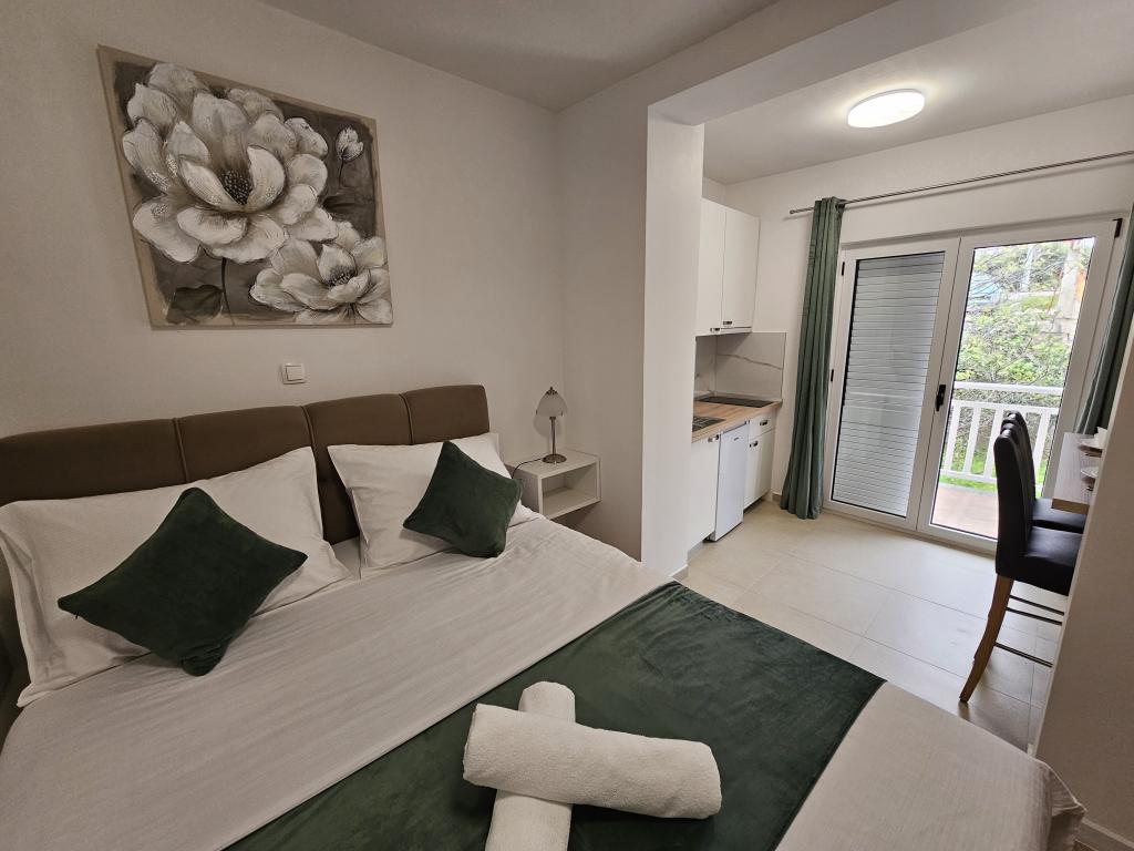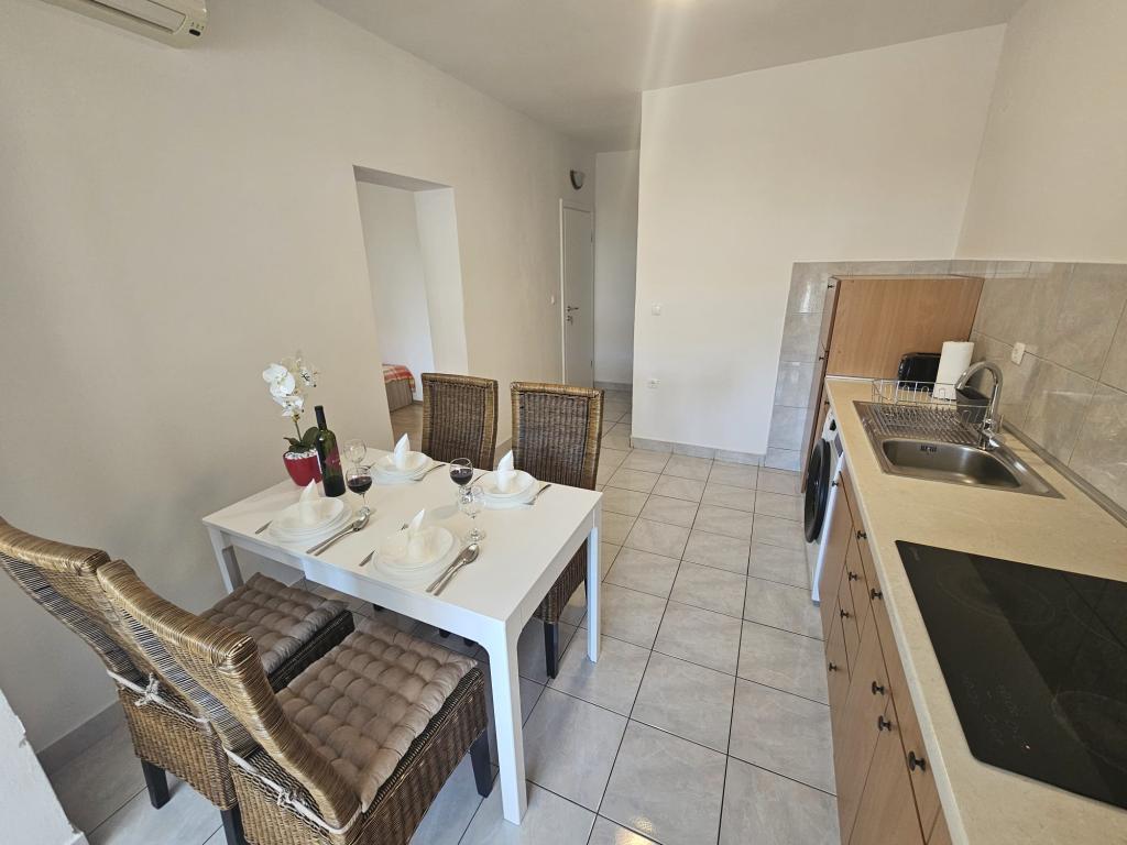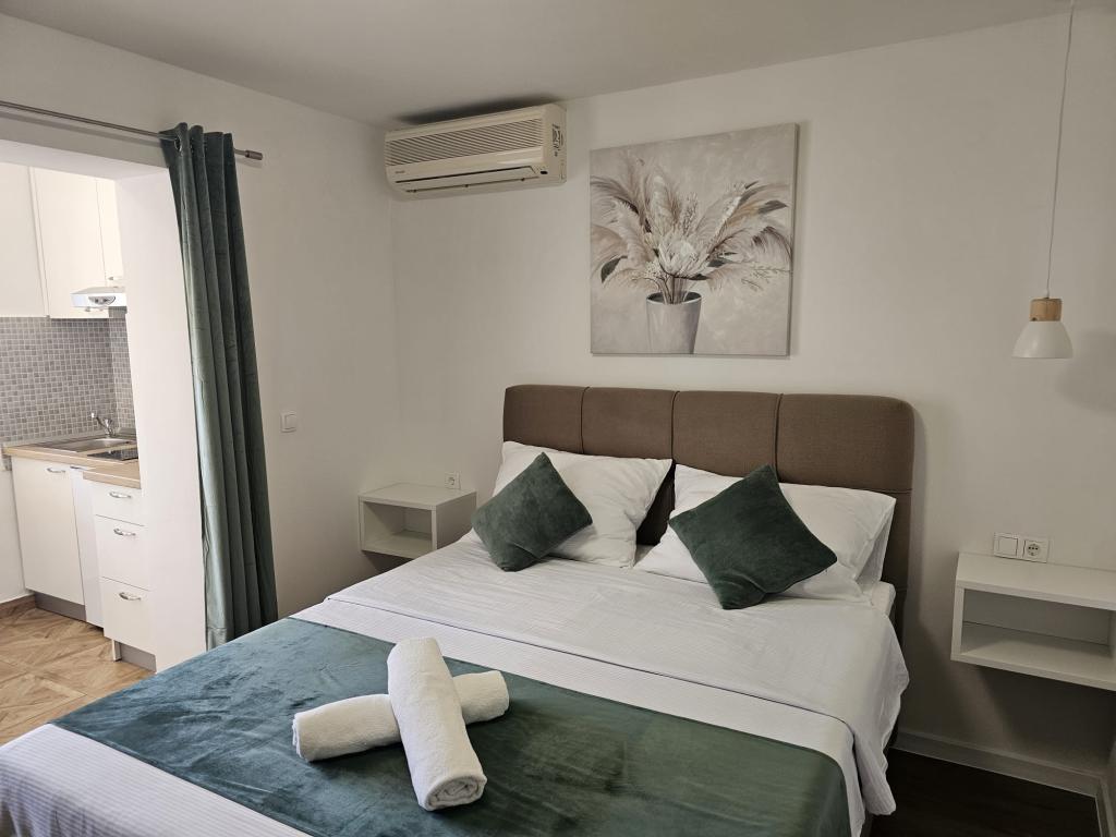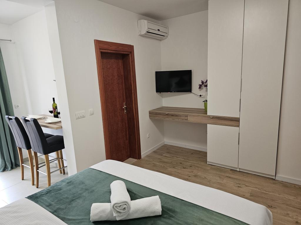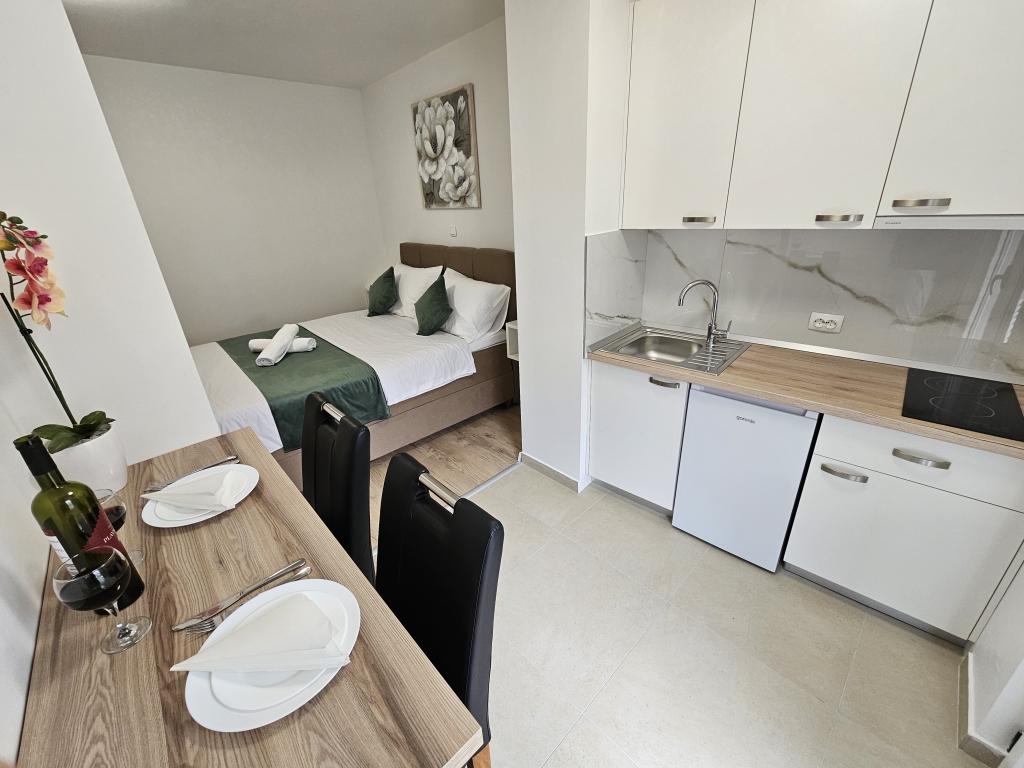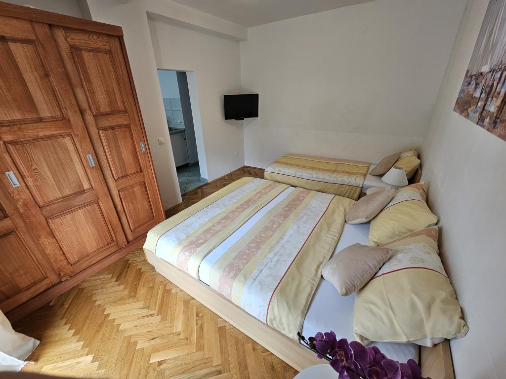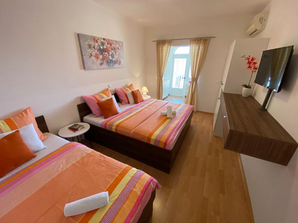 Apartments Kovač er moderne udstyrede lejligheder beliggende i hjertet af byen Makarska. Byens strand ligger 250 meter væk (mindre end 5 minutter til fods), og du kan nå byens centrum på mindre end 15 minutter, gå langs den smukke promenade langs, efter vores mening, den smukkeste strand i verden. Restauranter, et bageri og et apotek er inden for rækkevidde, og den nærmeste butik til daglige indkøb ligger kun 50 meter fra lejligheden. Hver lejlighed har sit eget badeværelse, fuldt udstyret køkken, balkon, aircondition og alle de nødvendige faciliteter for at få vores gæster til at føle sig hjemme. På nordsiden af huset er der et garageanlæg, så hver gæst er sikret en gratis overdækket parkeringsplads, hvorfra de til enhver tid frit kan komme ind og ud. Hele familien har været involveret i turisme og udlejning i mange år, og vi håber at få muligheden for at være vært for jer i vores anlæg, hvor I ankommer som gæster og tager afsted som venner.