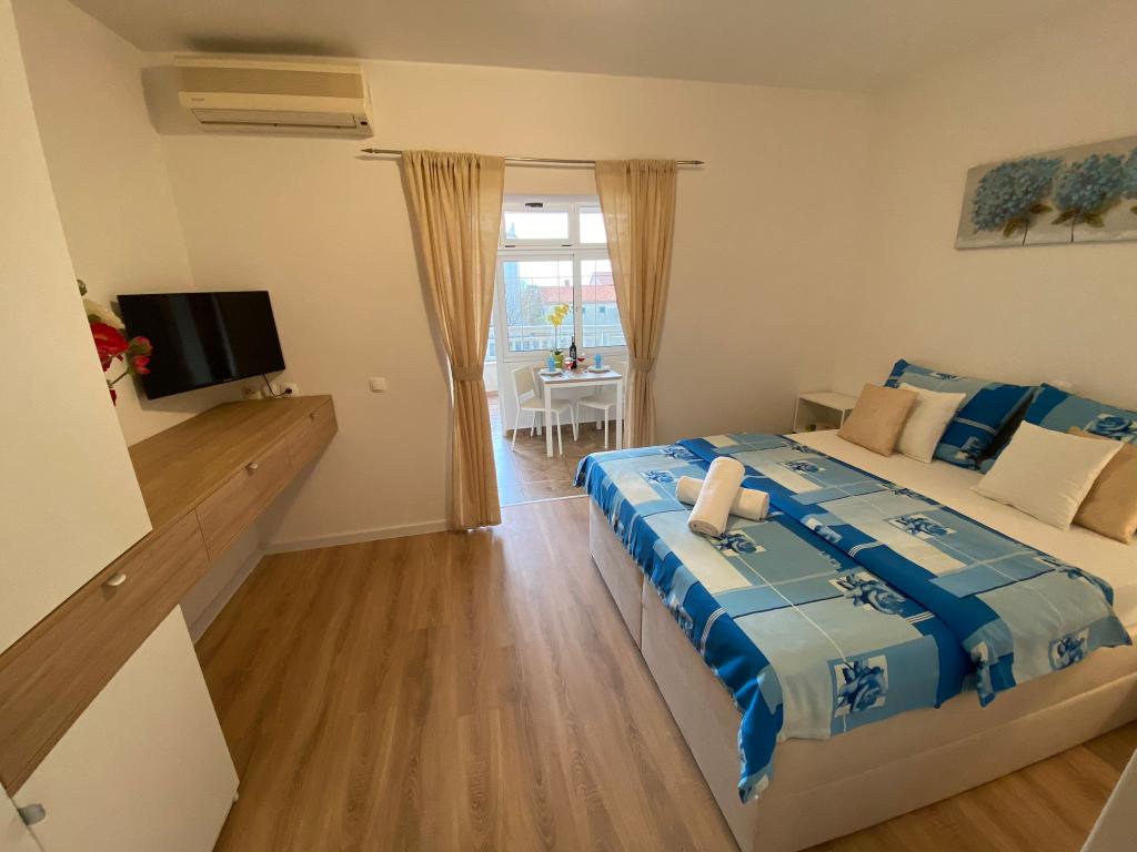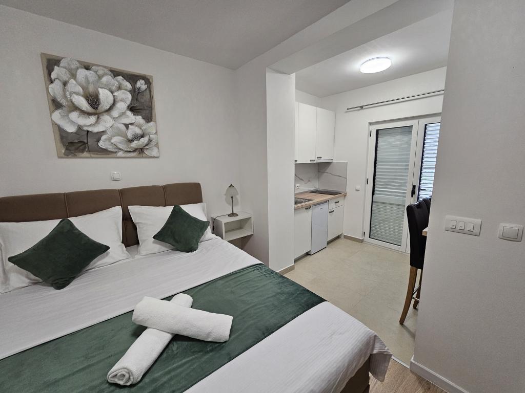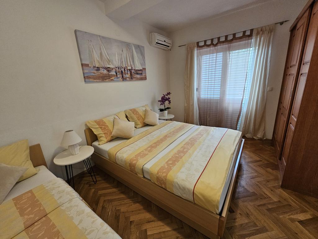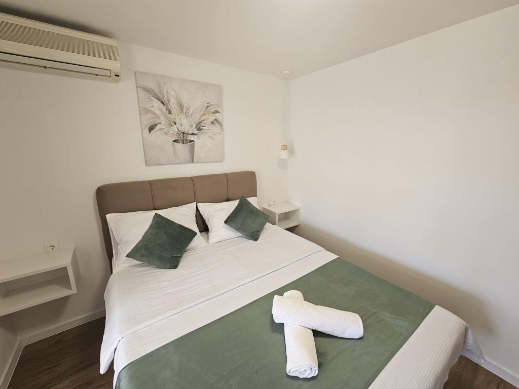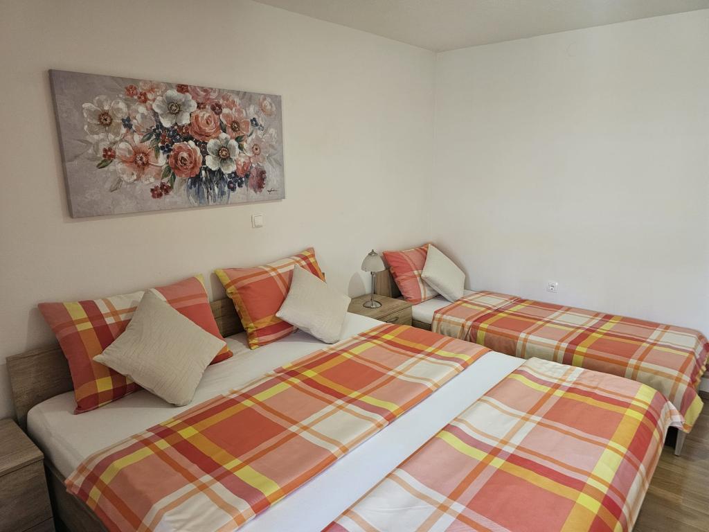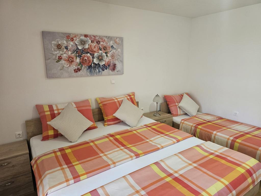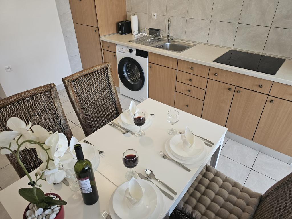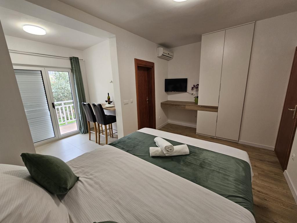 Apartments Kovač er moderne udstyrede lejligheder beliggende i hjertet af byen Makarska. Byens strand ligger 250 meter væk (mindre end 5 minutter til fods), og du kan nå byens centrum på mindre end 15 minutter, gå langs den smukke promenade langs, efter vores mening, den smukkeste strand i verden. Restauranter, et bageri og et apotek er inden for rækkevidde, og den nærmeste butik til daglige indkøb ligger kun 50 meter fra lejligheden. Hver lejlighed har sit eget badeværelse, fuldt udstyret køkken, balkon, aircondition og alle de nødvendige faciliteter for at få vores gæster til at føle sig hjemme. På nordsiden af huset er der et garageanlæg, så hver gæst er sikret en gratis overdækket parkeringsplads, hvorfra de til enhver tid frit kan komme ind og ud. Hele familien har været involveret i turisme og udlejning i mange år, og vi håber at få muligheden for at være vært for jer i vores anlæg, hvor I ankommer som gæster og tager afsted som venner.