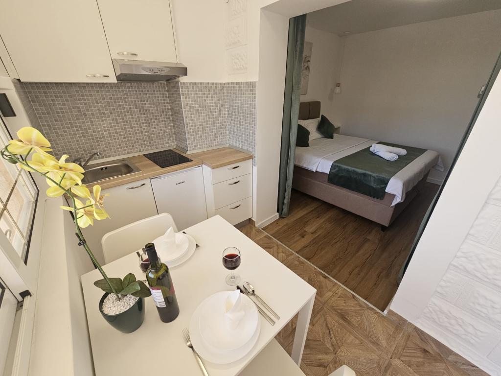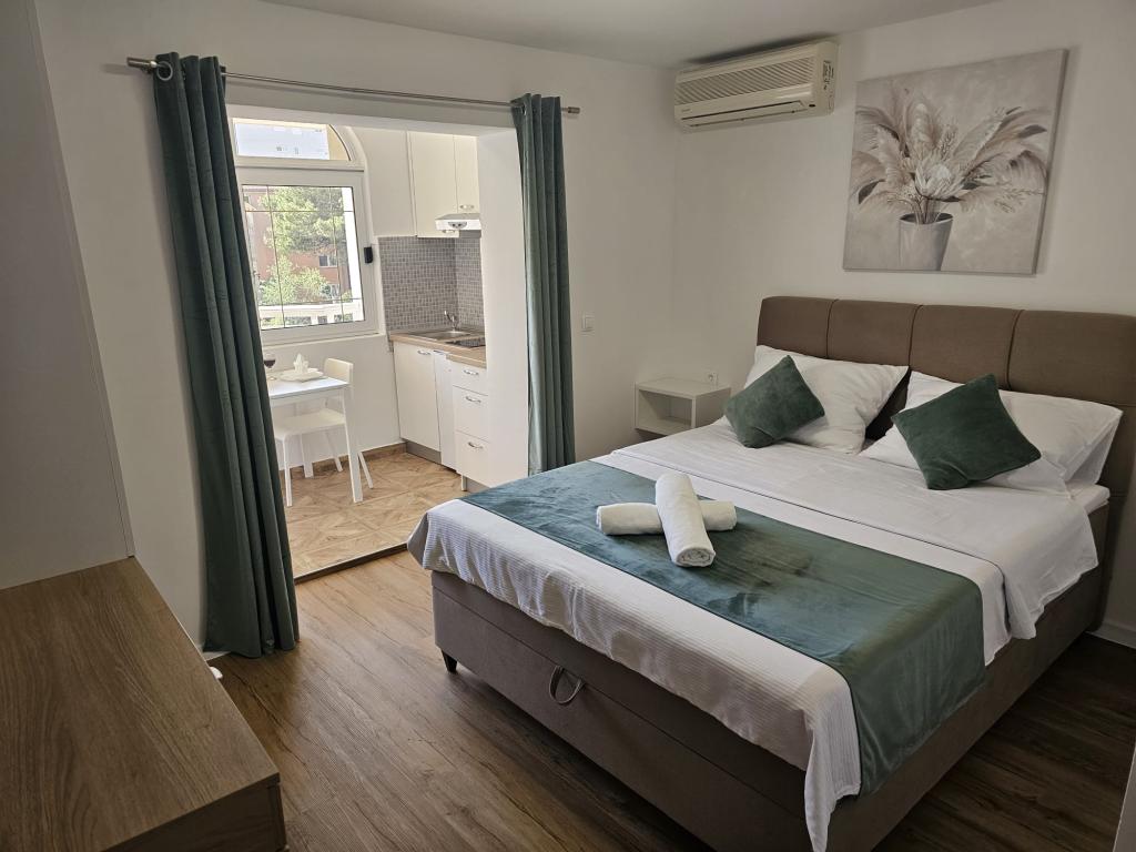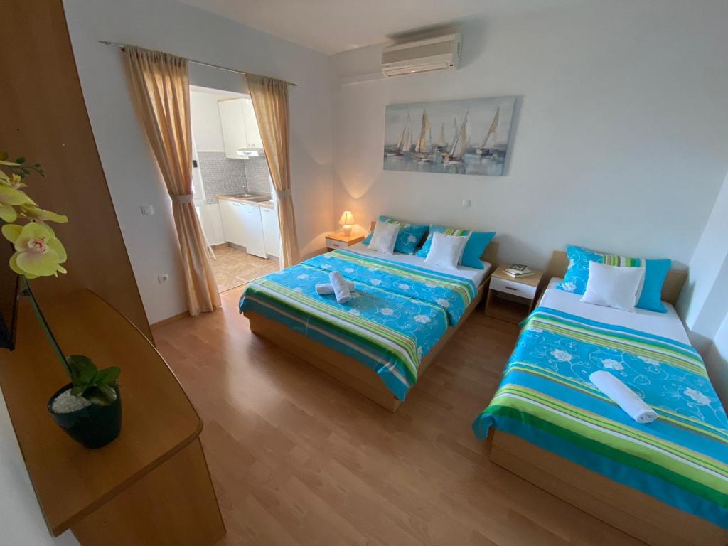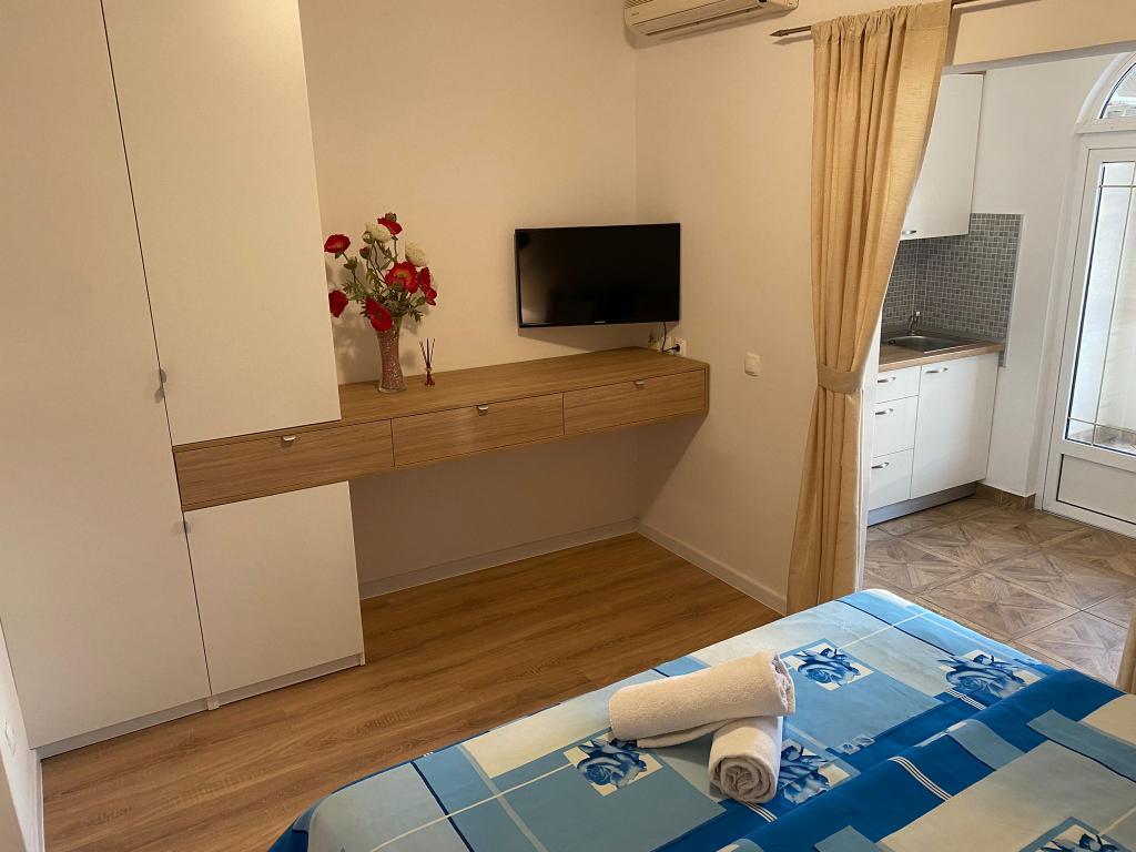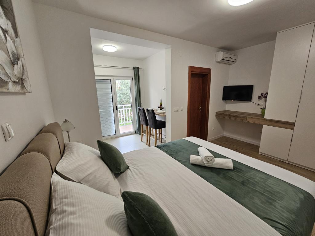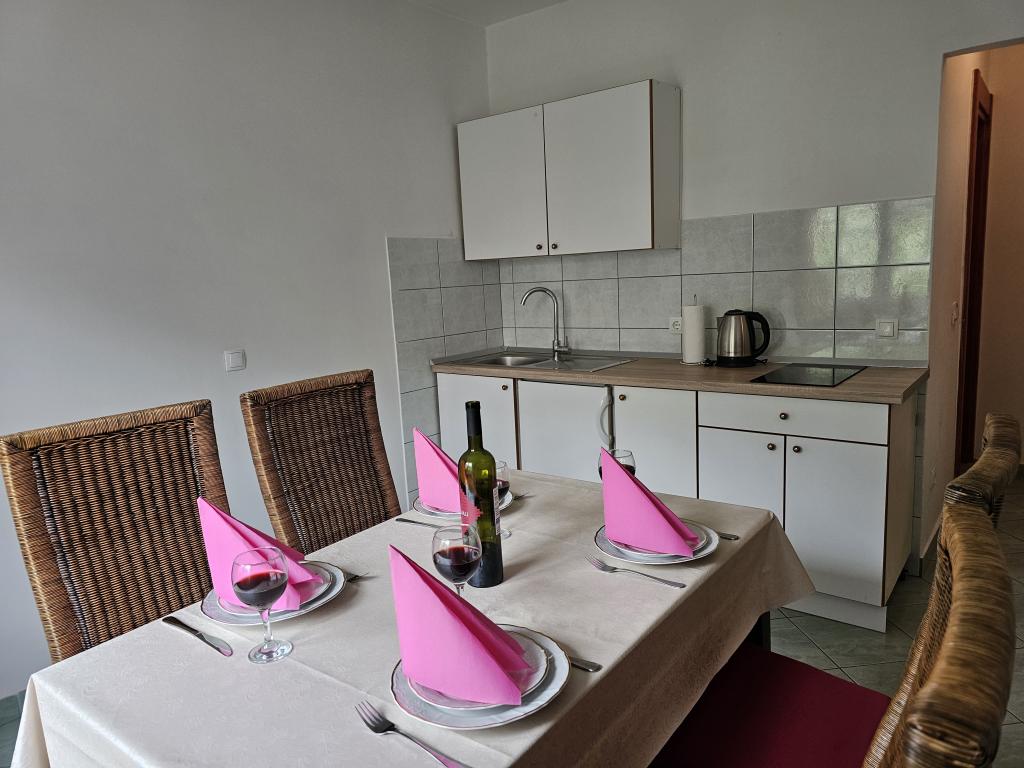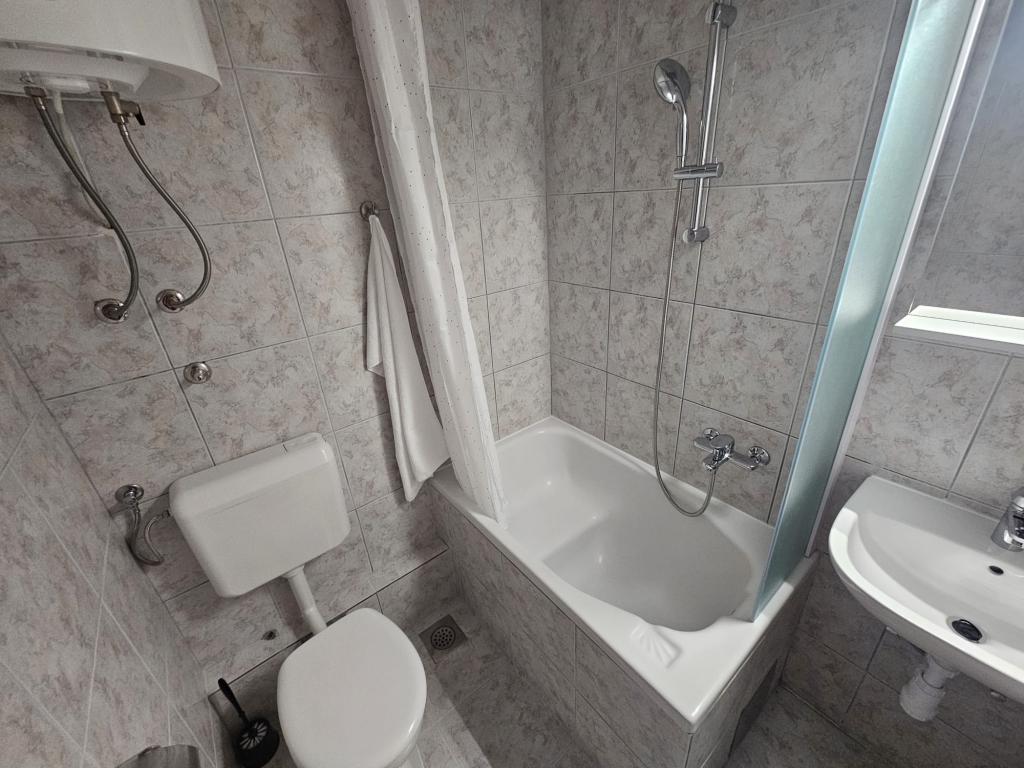 Apartments Kovač er moderne udstyrede lejligheder beliggende i hjertet af byen Makarska. Byens strand ligger 250 meter væk (mindre end 5 minutter til fods), og du kan nå byens centrum på mindre end 15 minutter, gå langs den smukke promenade langs, efter vores mening, den smukkeste strand i verden. Restauranter, et bageri og et apotek er inden for rækkevidde, og den nærmeste butik til daglige indkøb ligger kun 50 meter fra lejligheden. Hver lejlighed har sit eget badeværelse, fuldt udstyret køkken, balkon, aircondition og alle de nødvendige faciliteter for at få vores gæster til at føle sig hjemme. På nordsiden af huset er der et garageanlæg, så hver gæst er sikret en gratis overdækket parkeringsplads, hvorfra de til enhver tid frit kan komme ind og ud. Hele familien har været involveret i turisme og udlejning i mange år, og vi håber at få muligheden for at være vært for jer i vores anlæg, hvor I ankommer som gæster og tager afsted som venner.