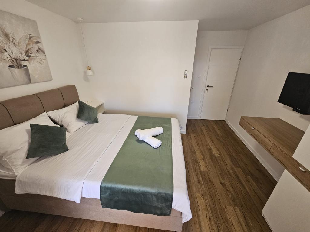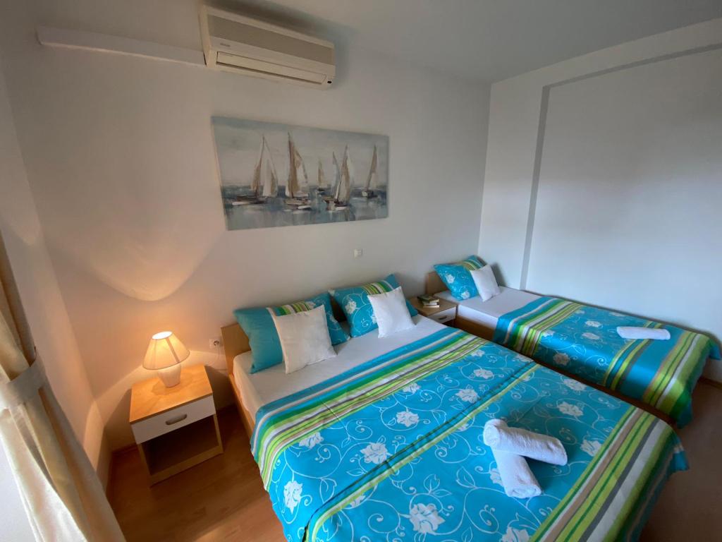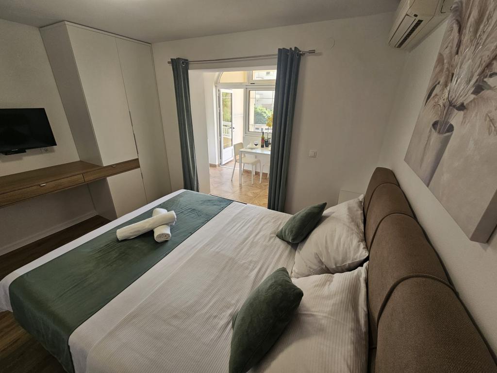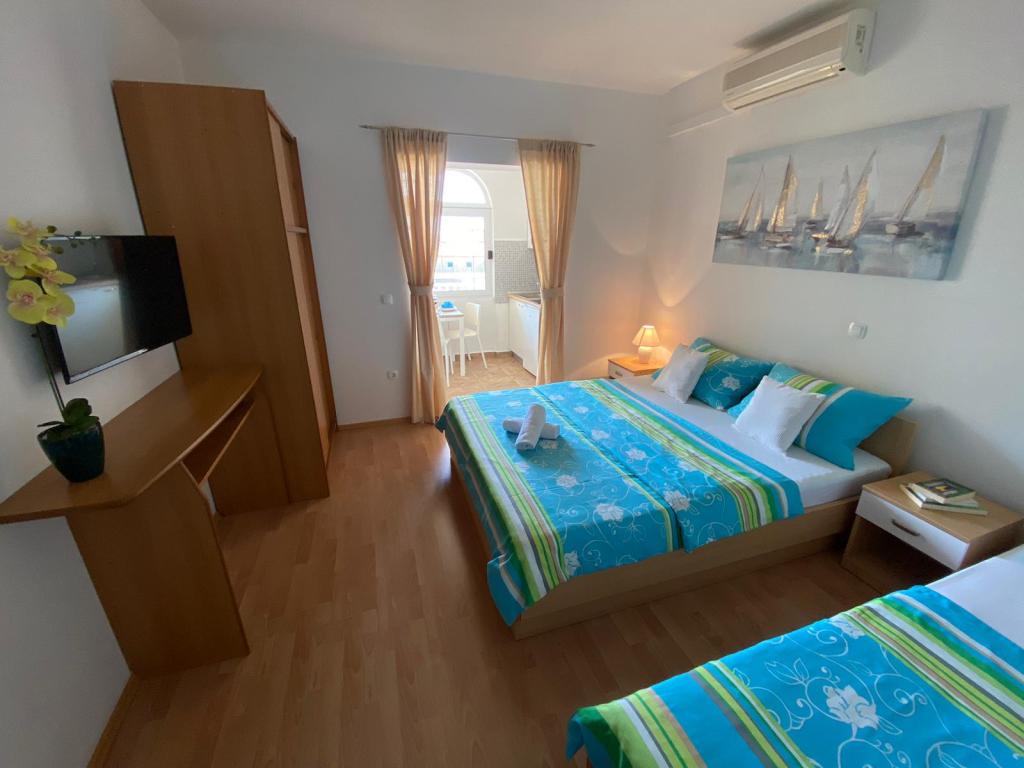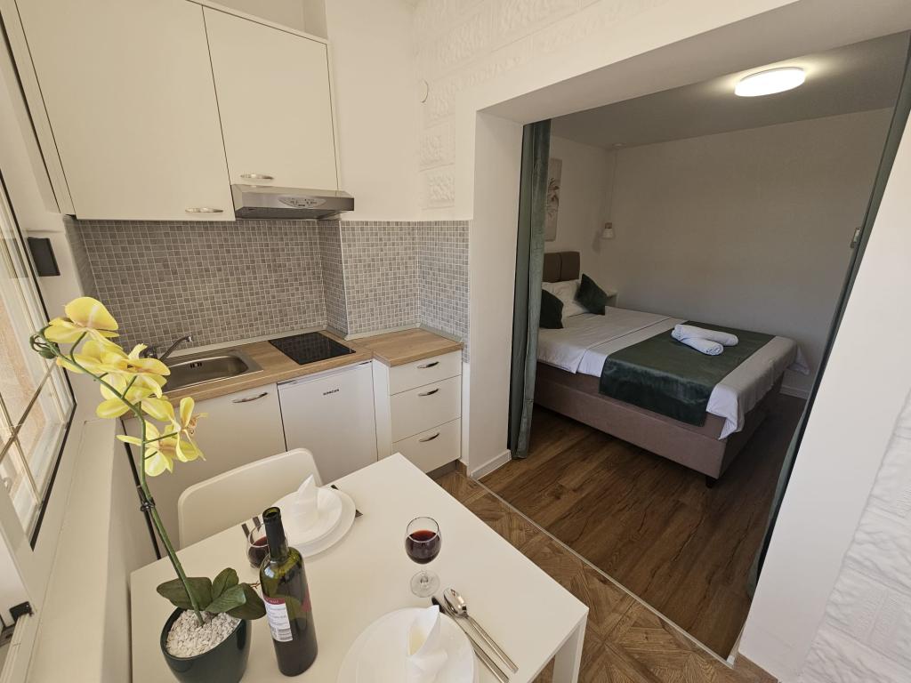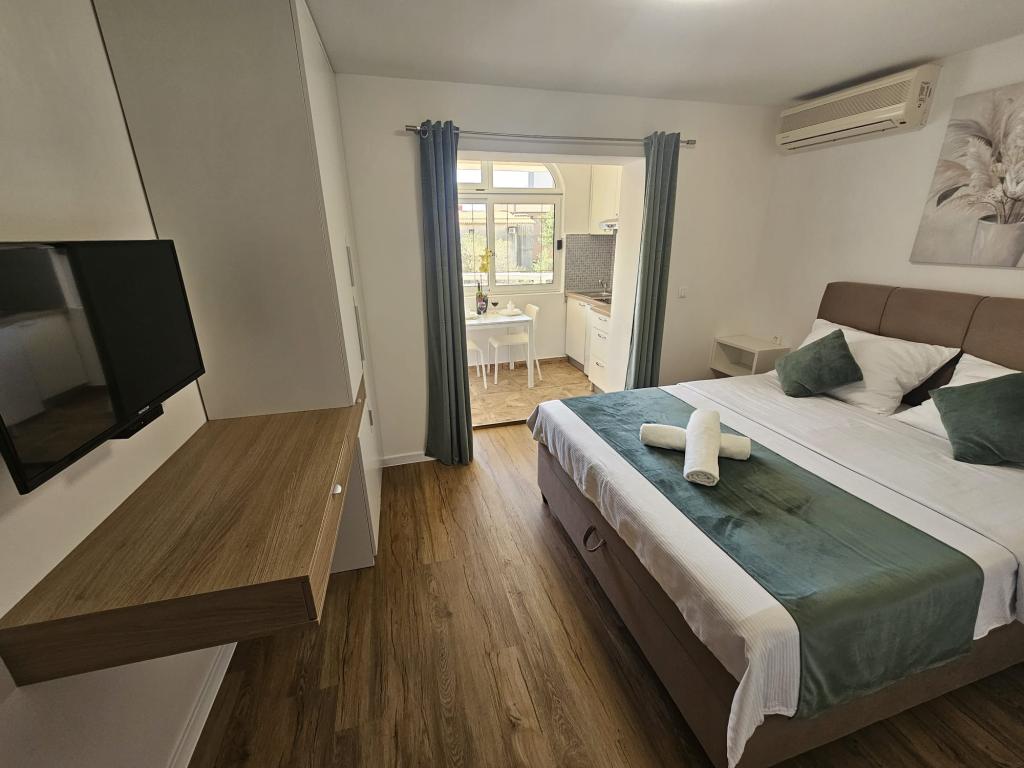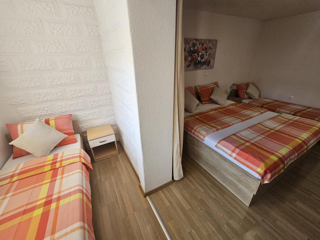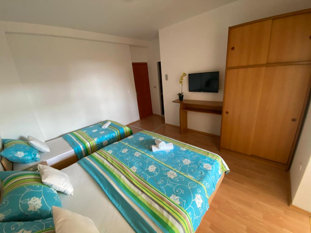 Apartments Kovač er moderne udstyrede lejligheder beliggende i hjertet af byen Makarska. Byens strand ligger 250 meter væk (mindre end 5 minutter til fods), og du kan nå byens centrum på mindre end 15 minutter, gå langs den smukke promenade langs, efter vores mening, den smukkeste strand i verden. Restauranter, et bageri og et apotek er inden for rækkevidde, og den nærmeste butik til daglige indkøb ligger kun 50 meter fra lejligheden. Hver lejlighed har sit eget badeværelse, fuldt udstyret køkken, balkon, aircondition og alle de nødvendige faciliteter for at få vores gæster til at føle sig hjemme. På nordsiden af huset er der et garageanlæg, så hver gæst er sikret en gratis overdækket parkeringsplads, hvorfra de til enhver tid frit kan komme ind og ud. Hele familien har været involveret i turisme og udlejning i mange år, og vi håber at få muligheden for at være vært for jer i vores anlæg, hvor I ankommer som gæster og tager afsted som venner.