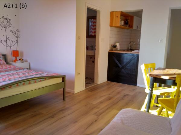 Jeg kan varmt anbefale Kruno Apartments. Vi boede i 7+2-lejligheden, 3 voksne og 4 børn. Lejligheden er rummelig, ren og komfortabel. Den har alt, hvad du behøver til hverdagen, så du føler dig hjemme. Prisen er meget overkommelig. Det er tæt på stranden, bageriet og markedet. Beliggenheden er perfekt; du behøver ikke at gå langt op ad bakken. Jeg kan varmt anbefale det.