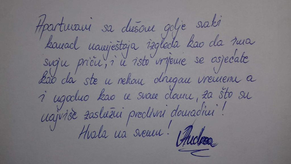 Stilfulde og komfortabelt møblerede lejligheder nær den gamle bydel, centrum, havn, sportscenter og naturlige strand. Det ligger 5 minutters gang fra byens centrum og 5 minutter fra den nærmeste strand i skovparken Osejava. Familietradition med leje af lejligheder siden 1968. Lejlighederne er komfortable og rummelige, moderne og stilfuldt udstyret. De har udsigt over havet, øerne og Biokovo-bjerget. Hver lejlighed har en stor terrasse på 20 m2 med spisebord og elektrisk grill. Der er parkeringspladser til gæsterne i haven. Ideel og velegnet til familier med små børn, fordi vi er beliggende i en rolig del af byen omgivet af grønne områder. I nærheden er en læge, apotek, marked og marked.