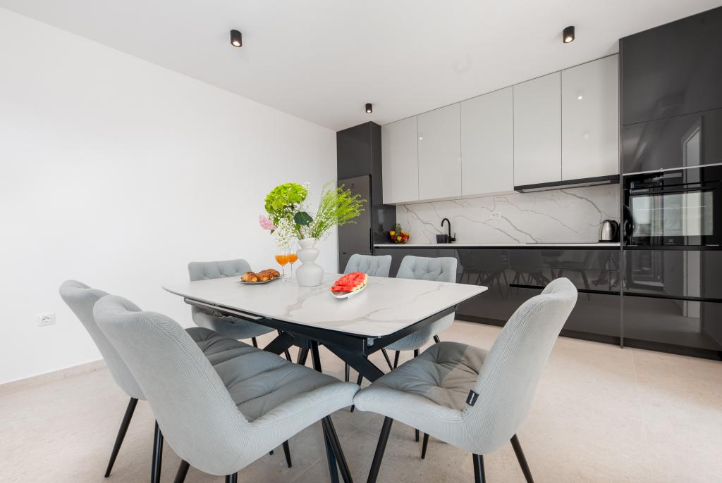 Maslina Apartments tilbyder moderne indrettede og rummelige lejligheder i en rolig del af Makarska, ideelt for par, familier og mindre grupper. Indkvarteringen er beliggende i et roligt område, væk fra byens mylder, men tæt nok på til nemt at udforske alt, hvad Makarska har at byde på. Alle lejligheder er fuldt udstyrede – køkken, aircondition, gratis Wi-Fi – og privat parkering er også tilgængelig. Vi tilbyder flere enheder, så vi nemt kan tilpasse os dine behov. Hvis du leder efter en komfortabel ferie med gode forbindelser til stranden og centrum, men uden støj og folkemængder – er Maslina Apartments det rigtige valg for dig!